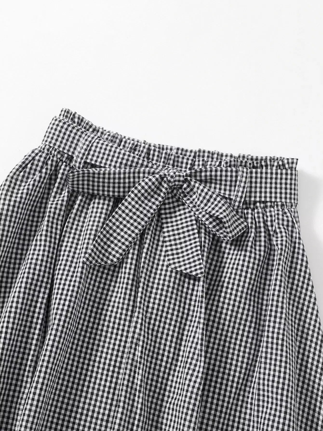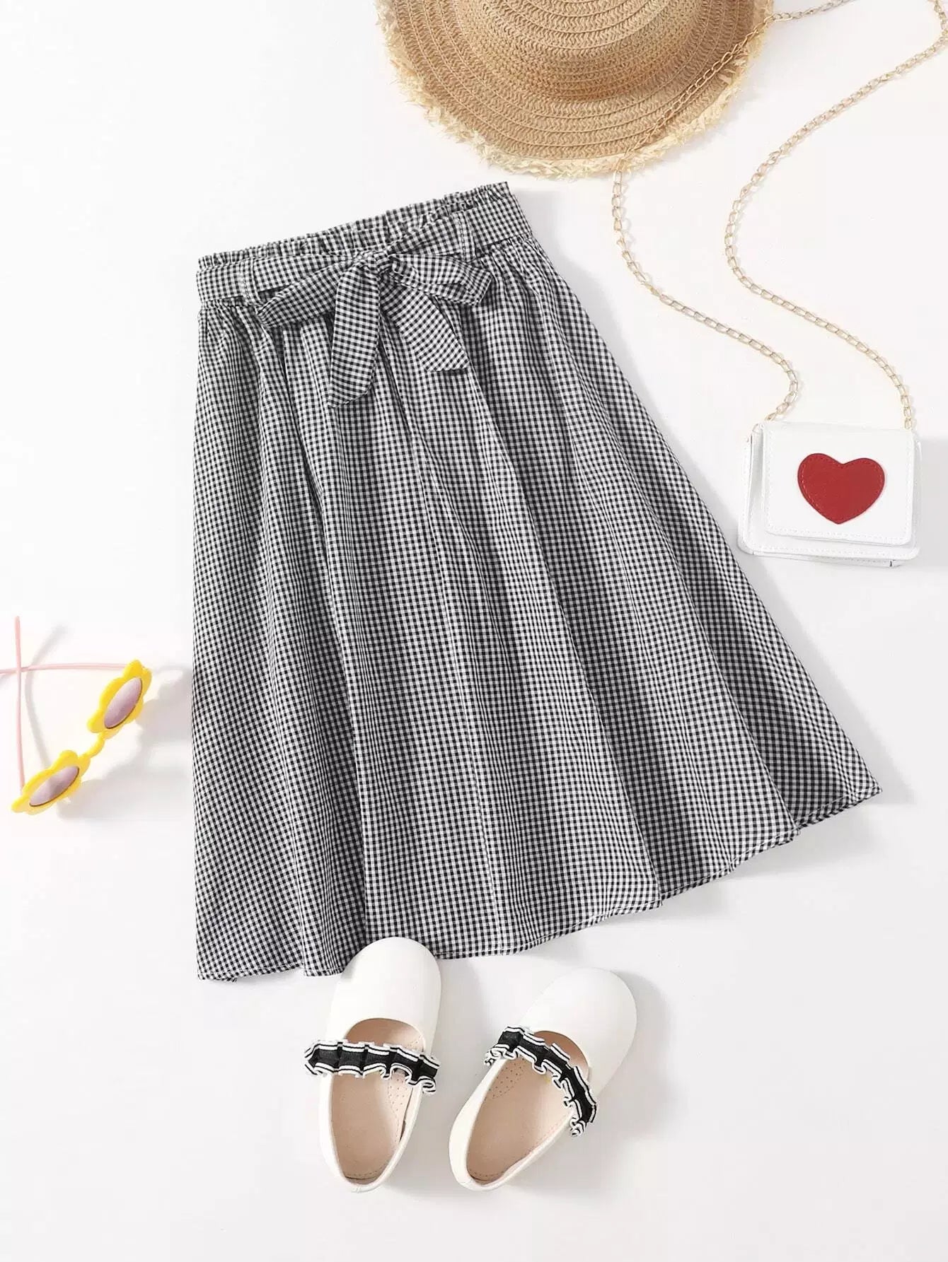 تنورة بناتي بطبعة جينغهام بدون حزام