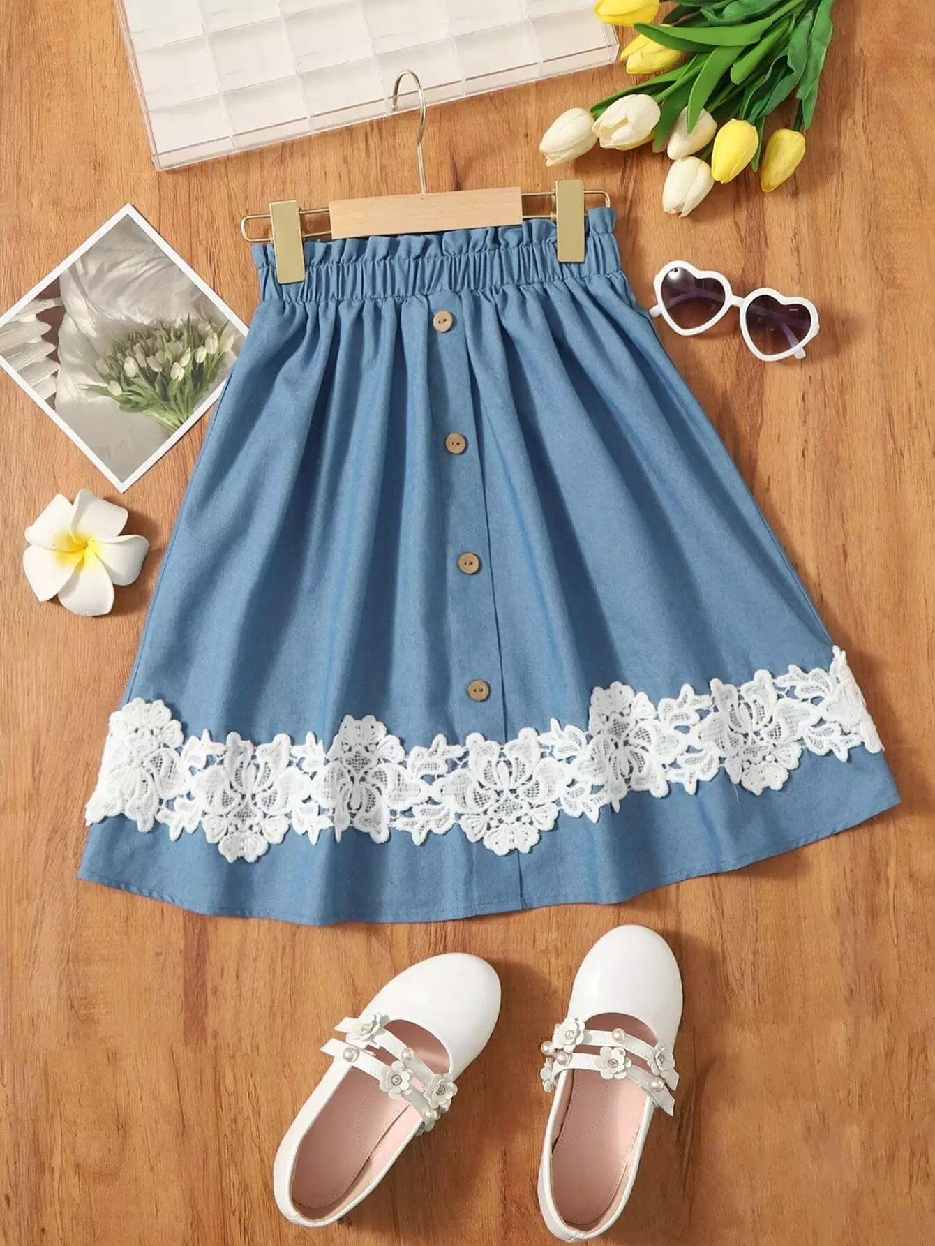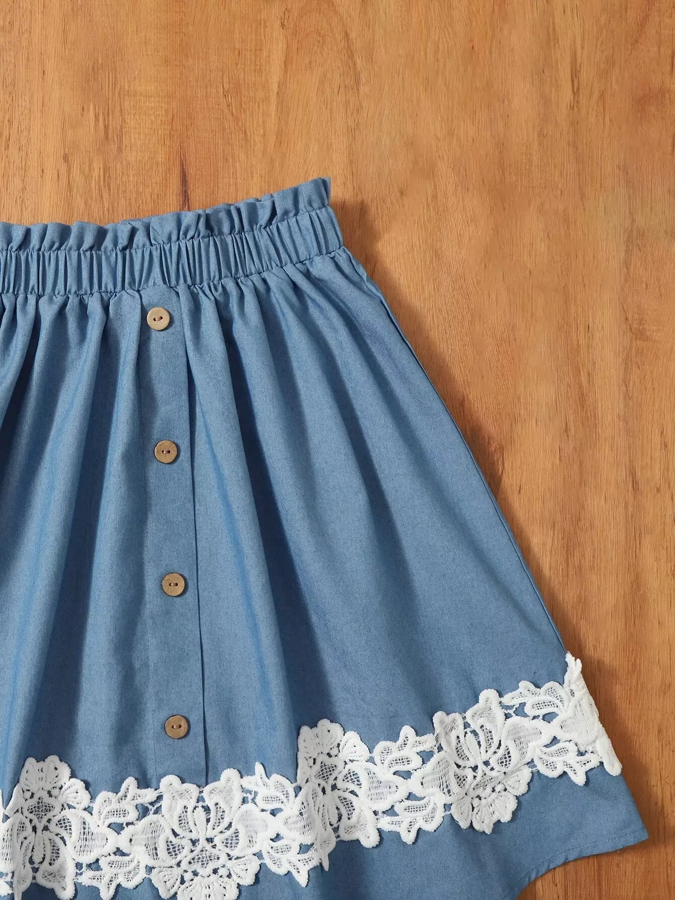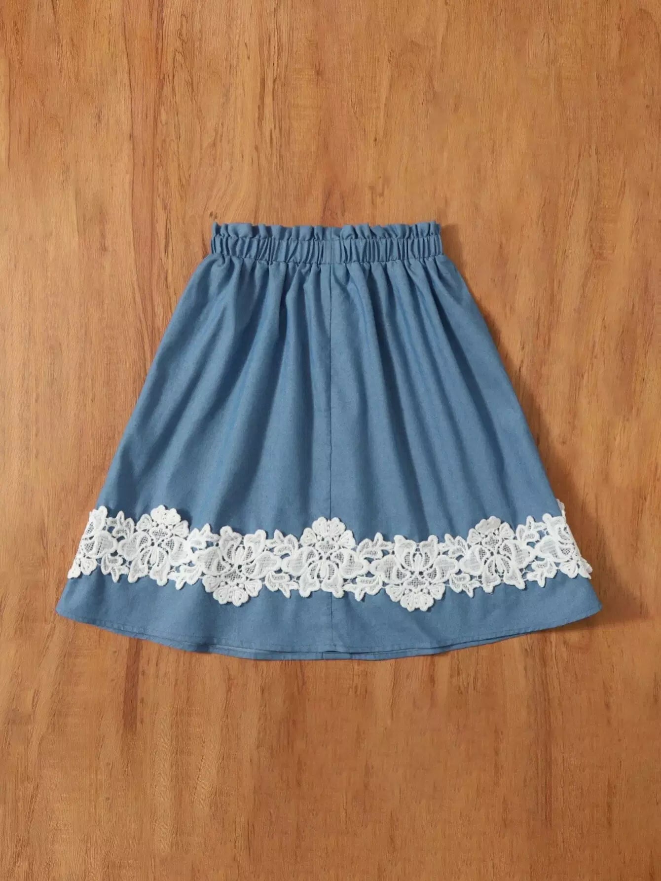 تنورة خصر من الدانتيل المخرم المخرم للبنات بتطريزات من الدانتيل المخرم