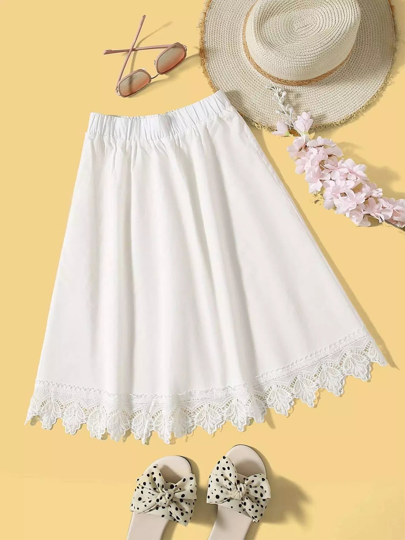 تنورة واسعة من الدانتيل المخرم المخرم للبنات
