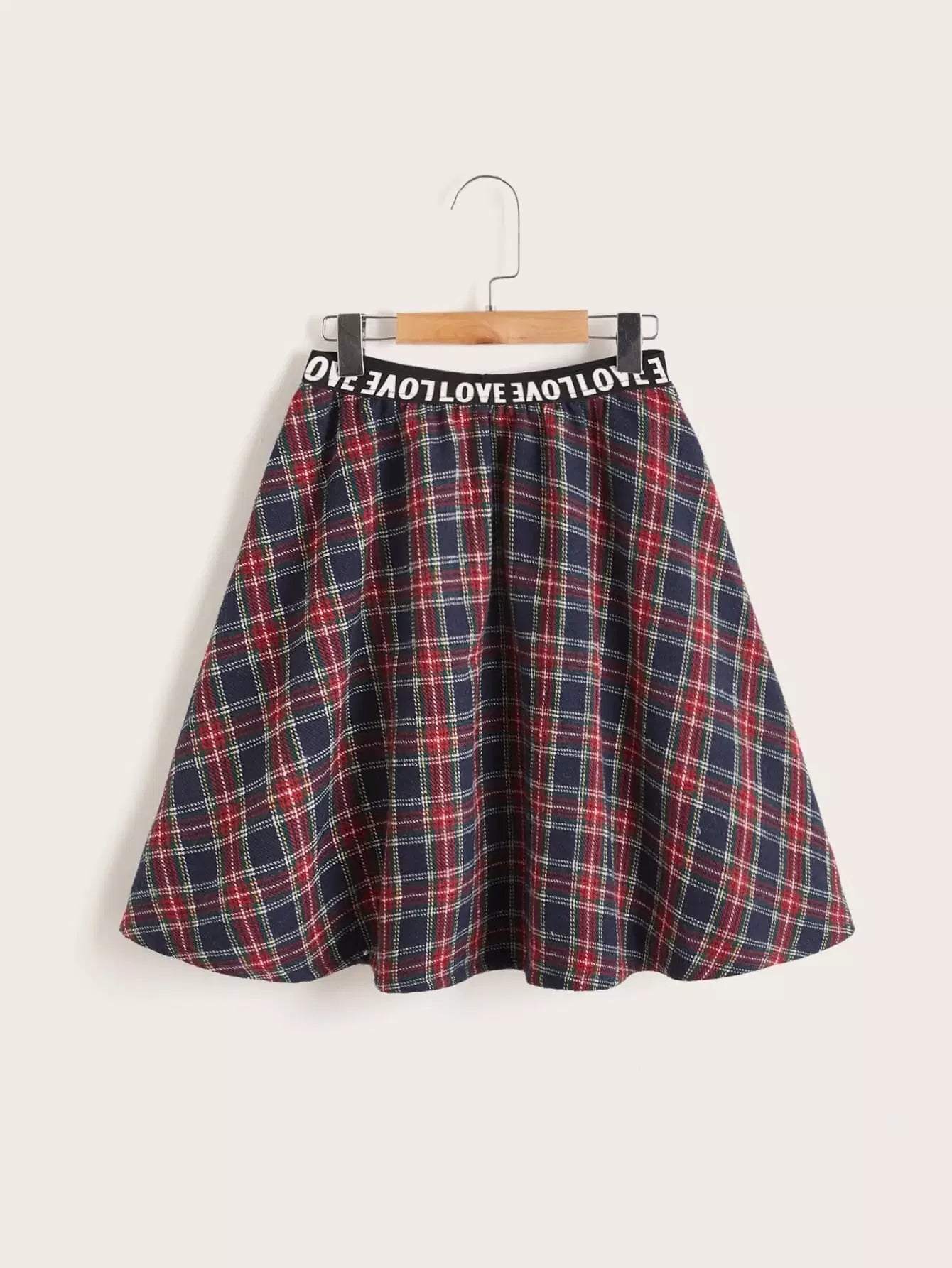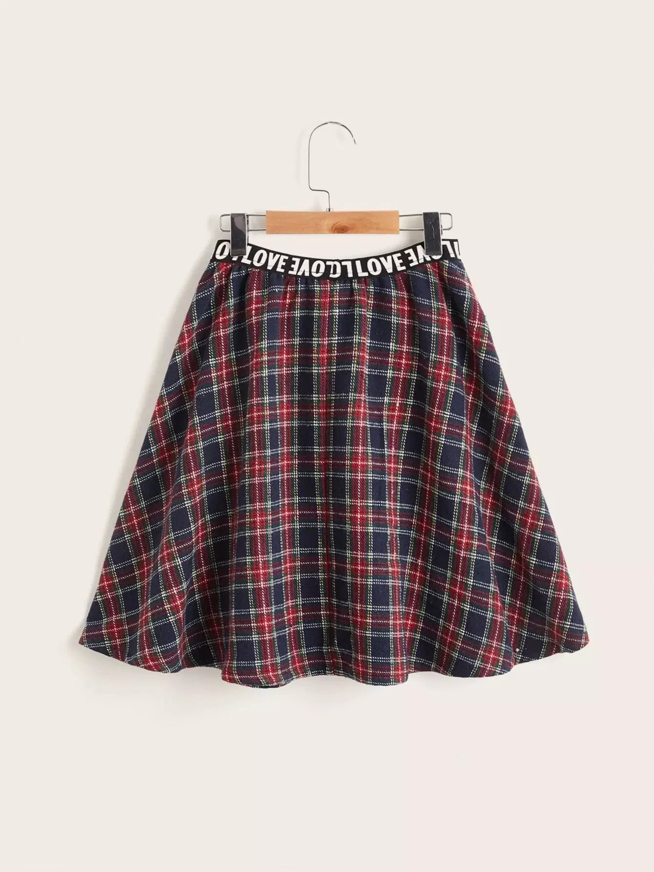 تنورة من قماش الترتان بشرائط حروف متباينة الألوان للبنات