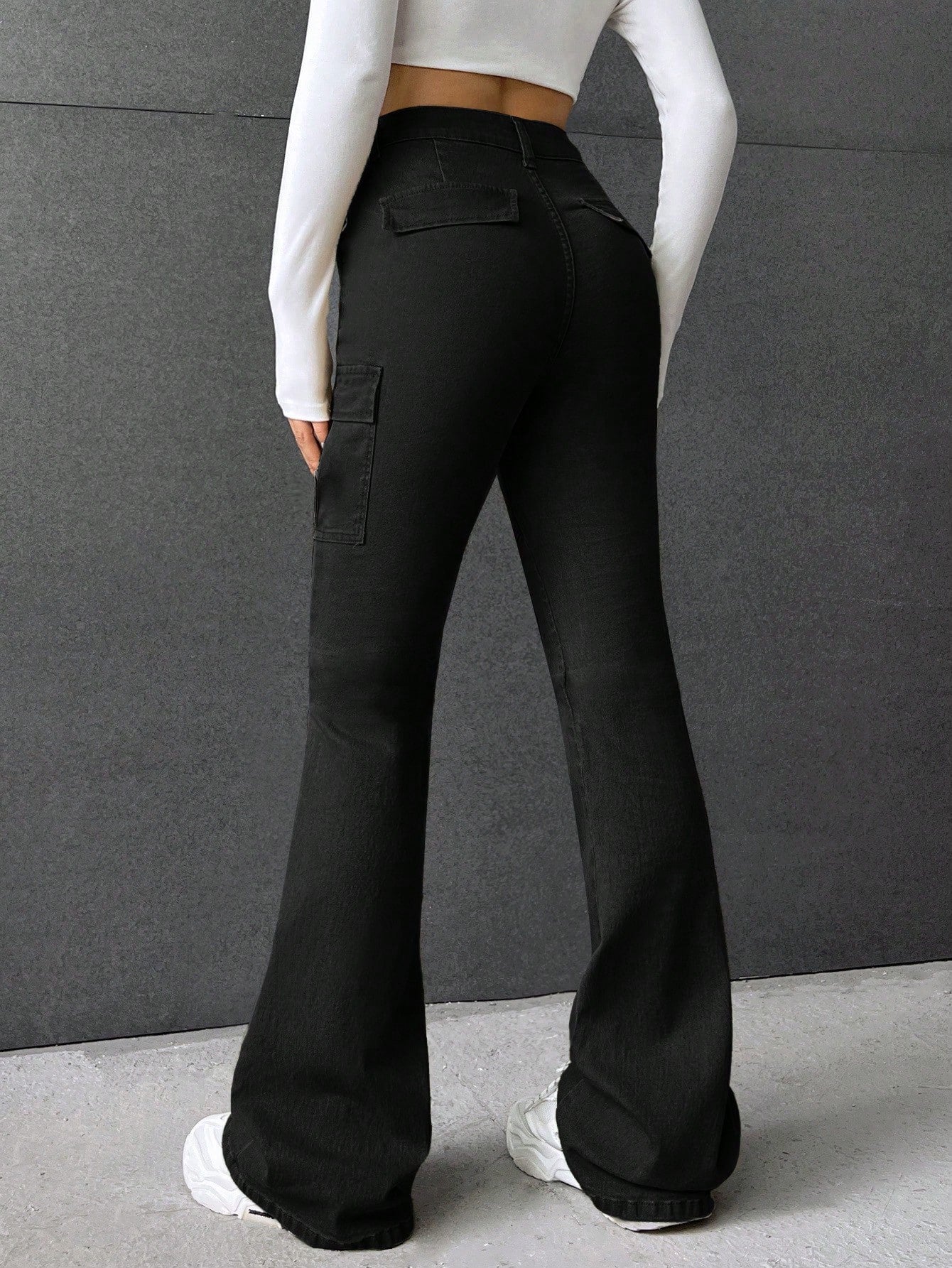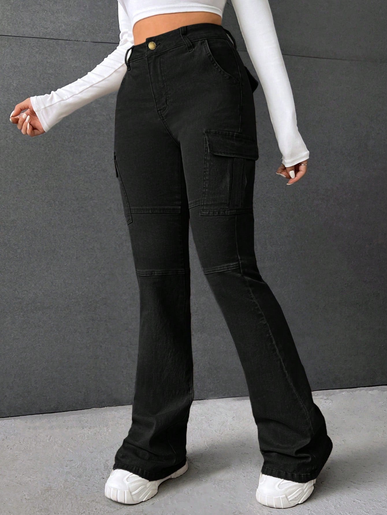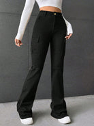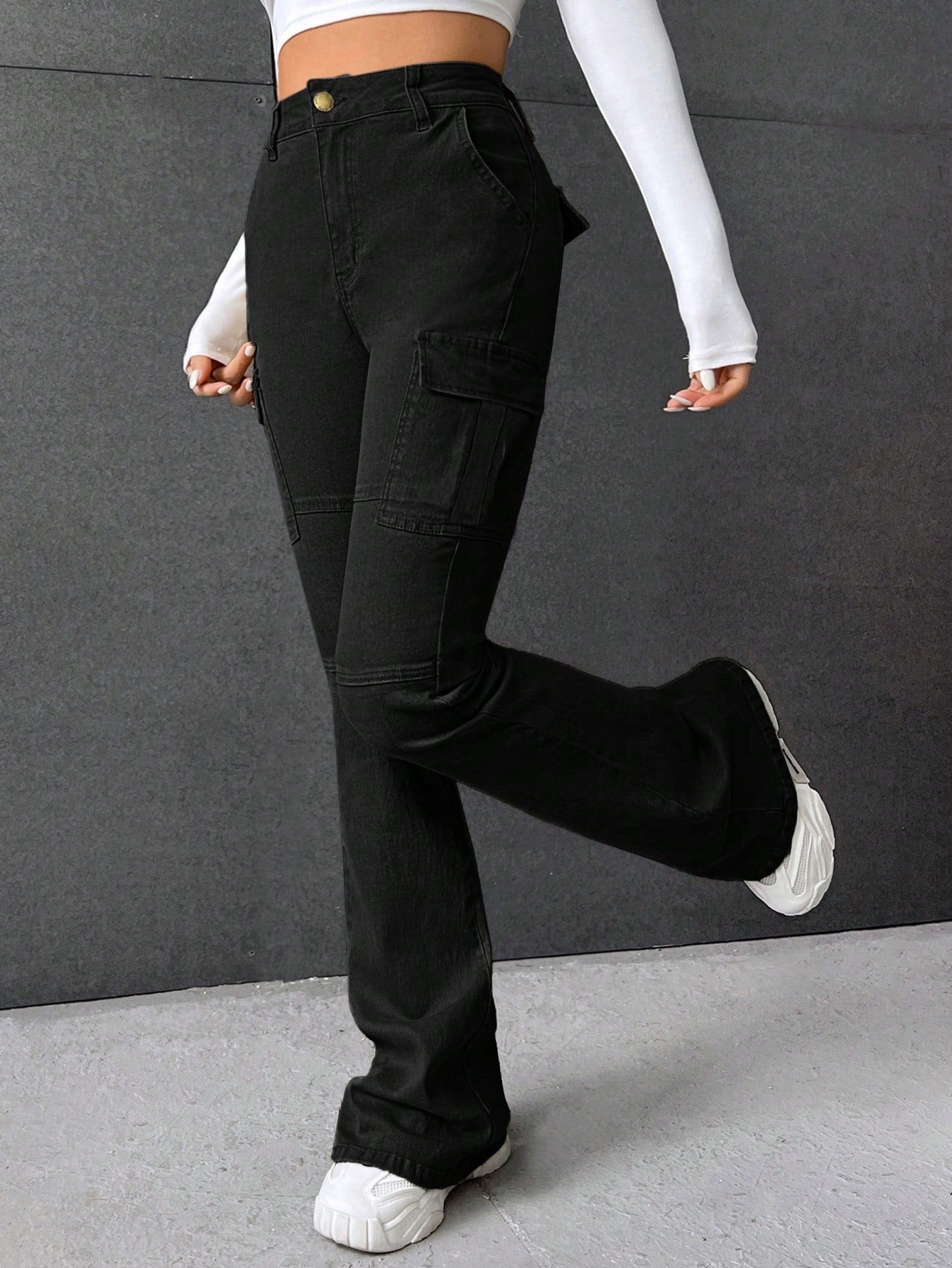 بنطلون جينز كارجو بخصر عالٍ وجيب جانبي واسع الساقين بتصميم مستوحى من موضة الألفية الجديدة