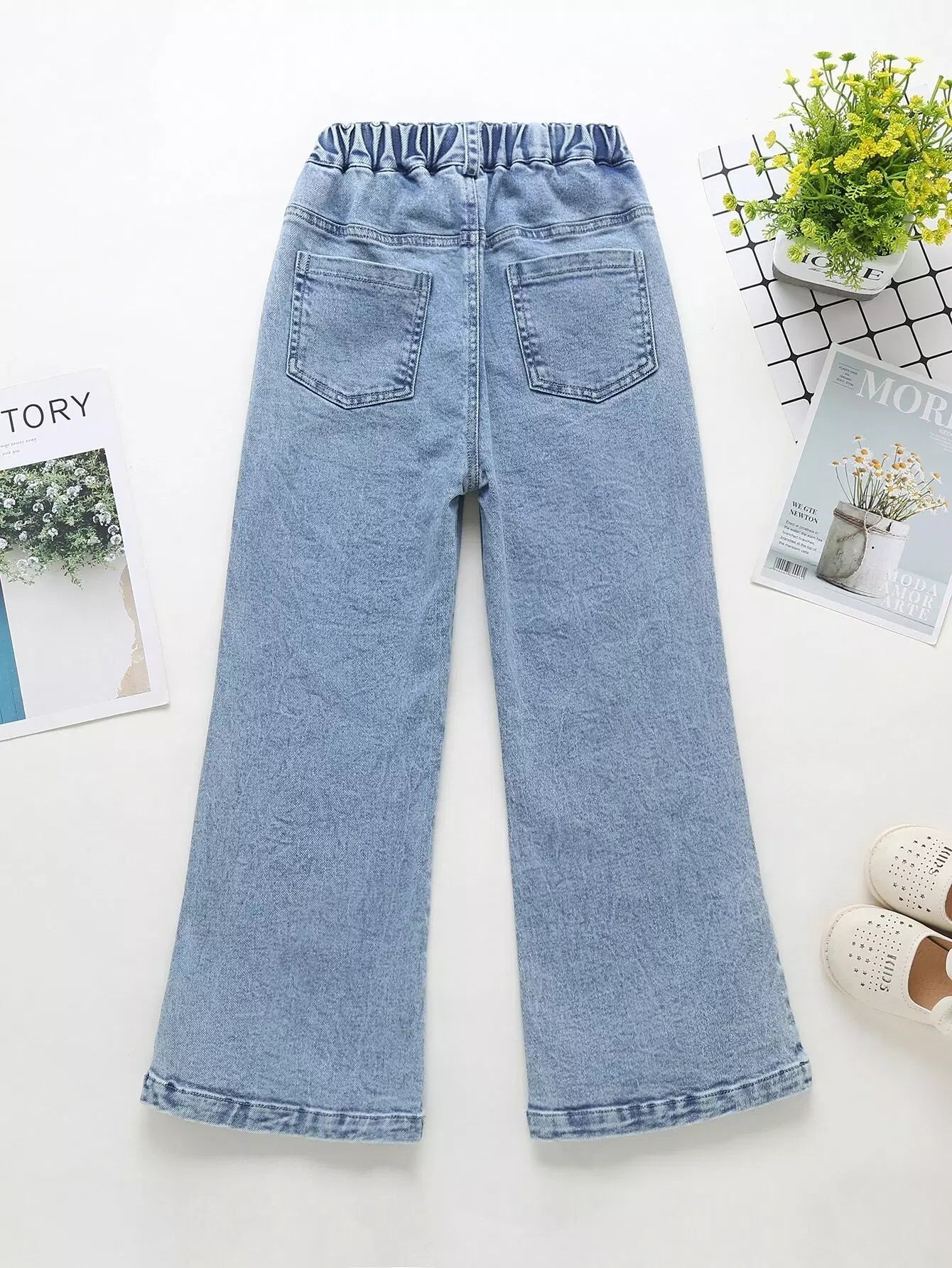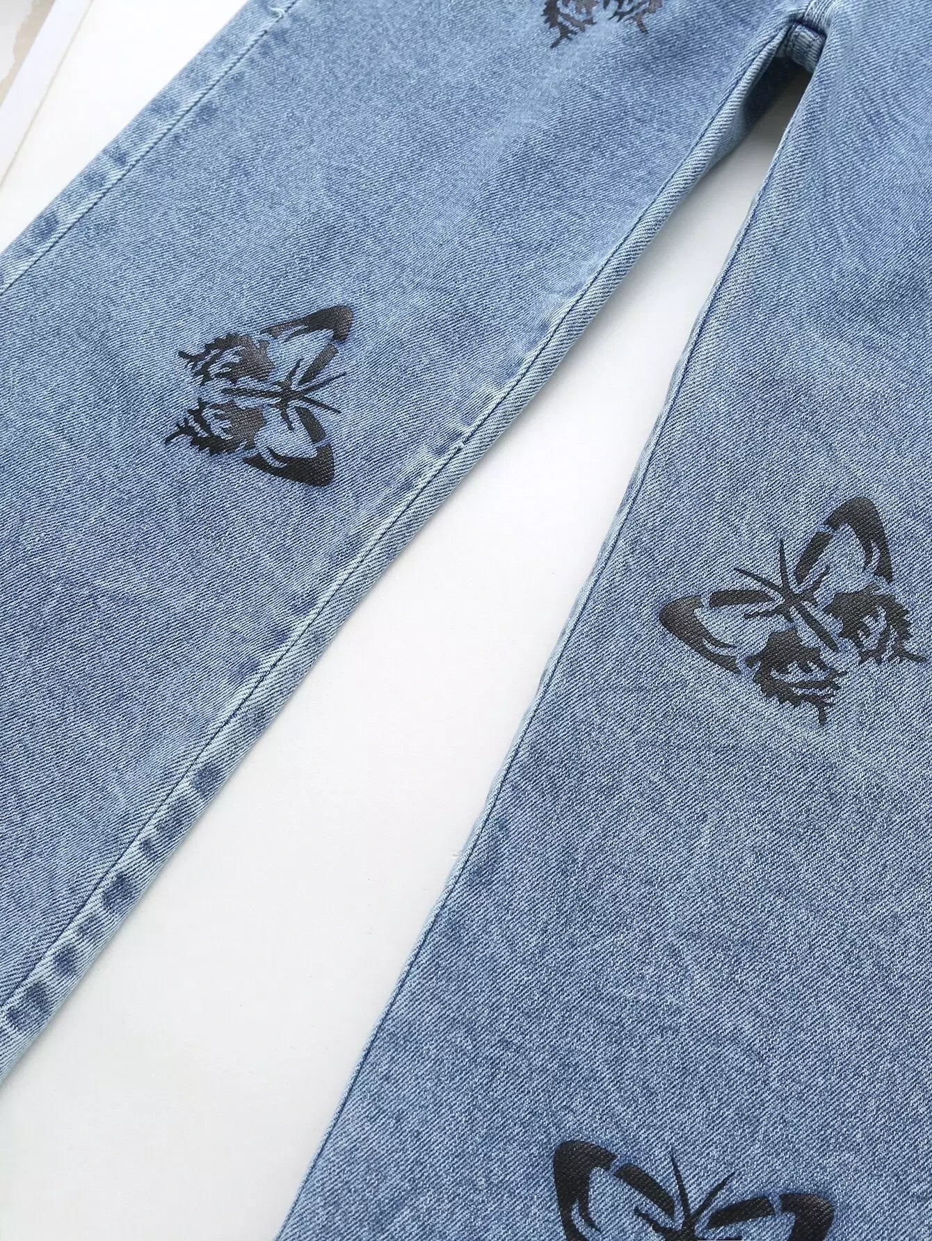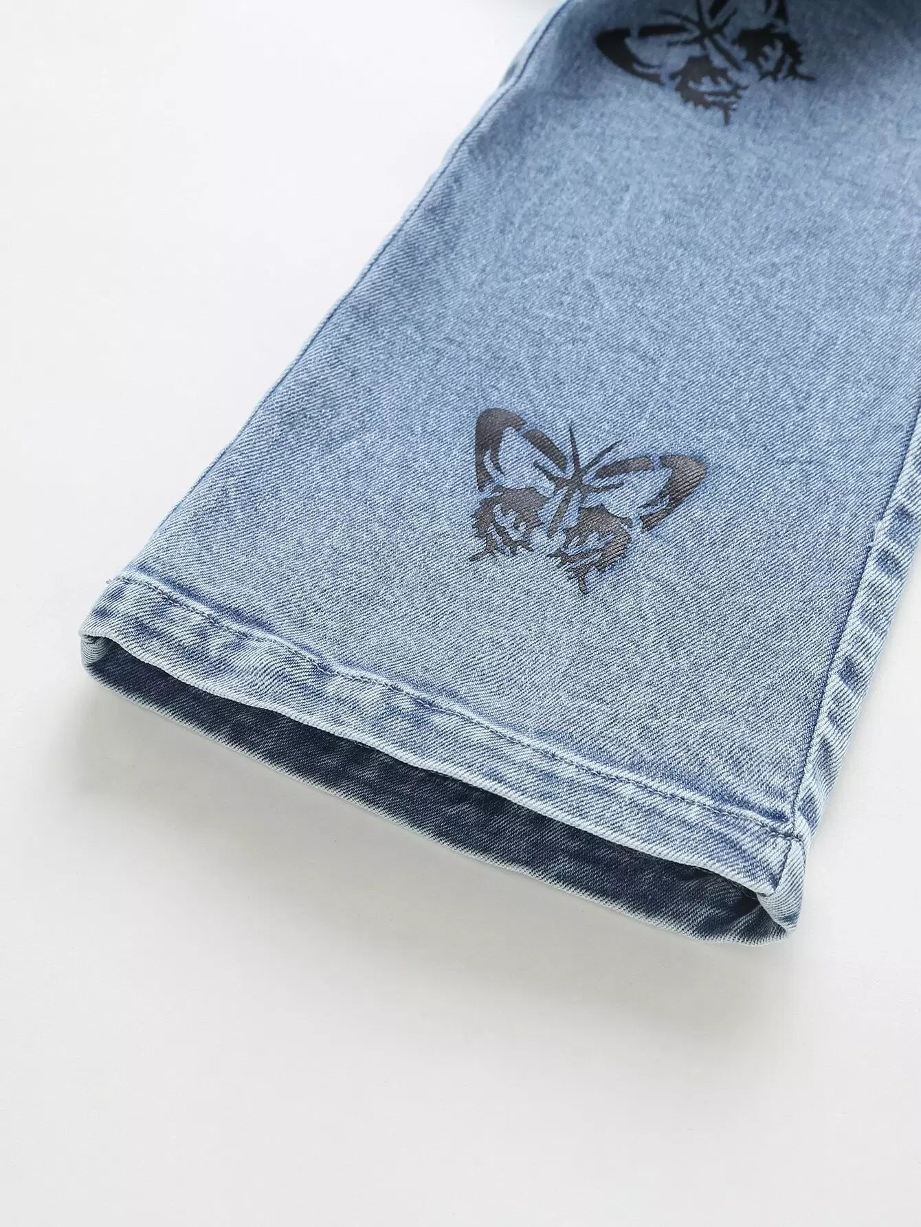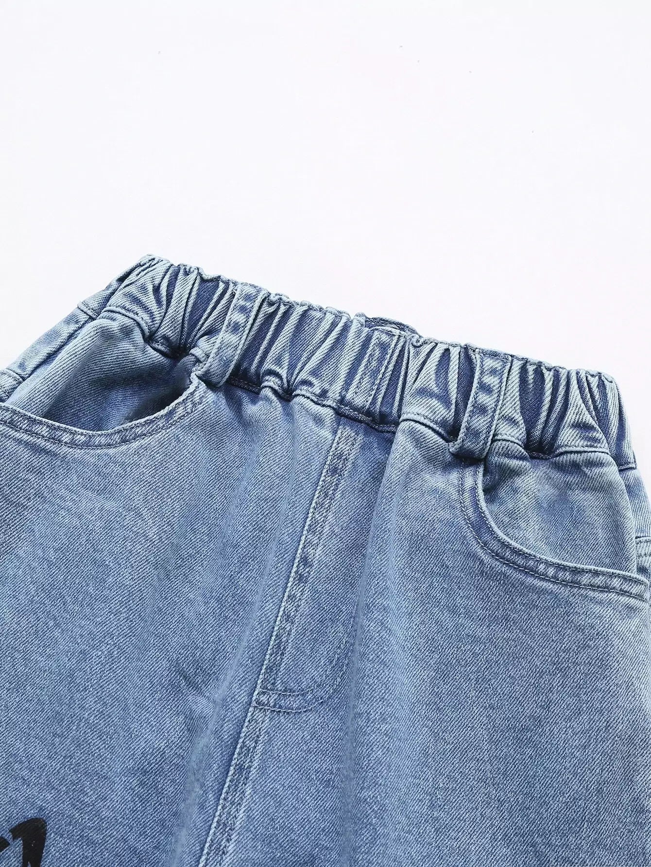 بنطلون جينز بطبعة فراشات بخصر مطاطي للبنات