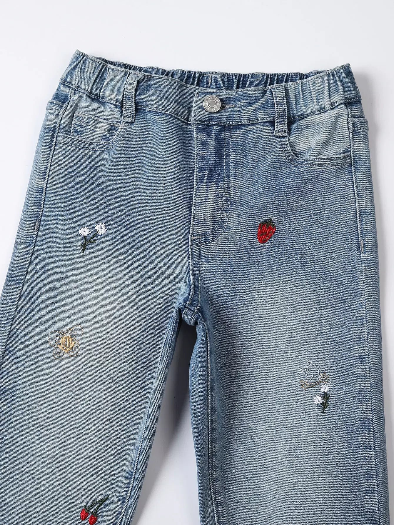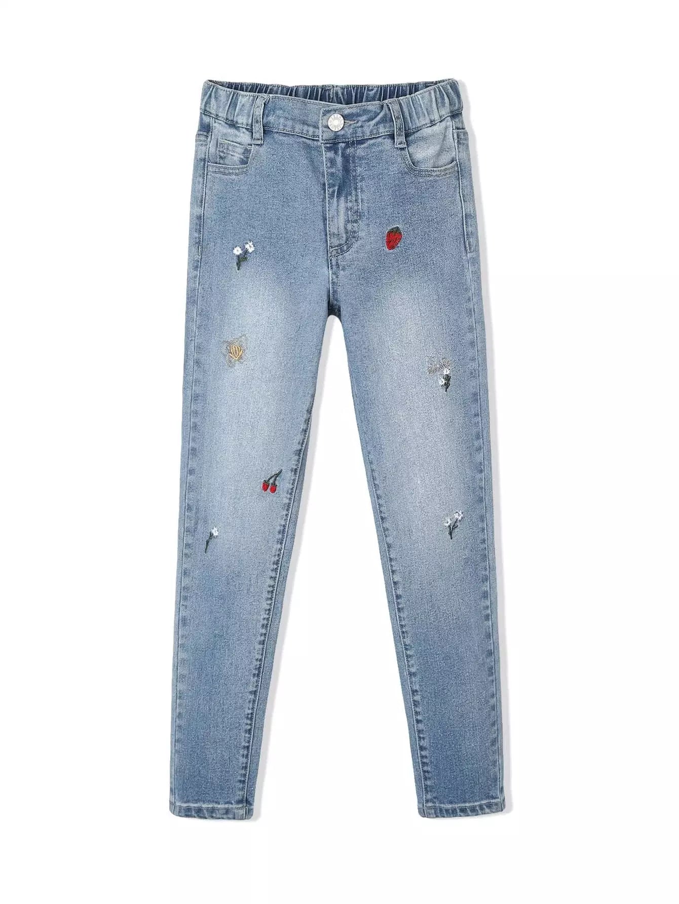 بنطلون جينز بتطريز فواكه وزهور للبنات