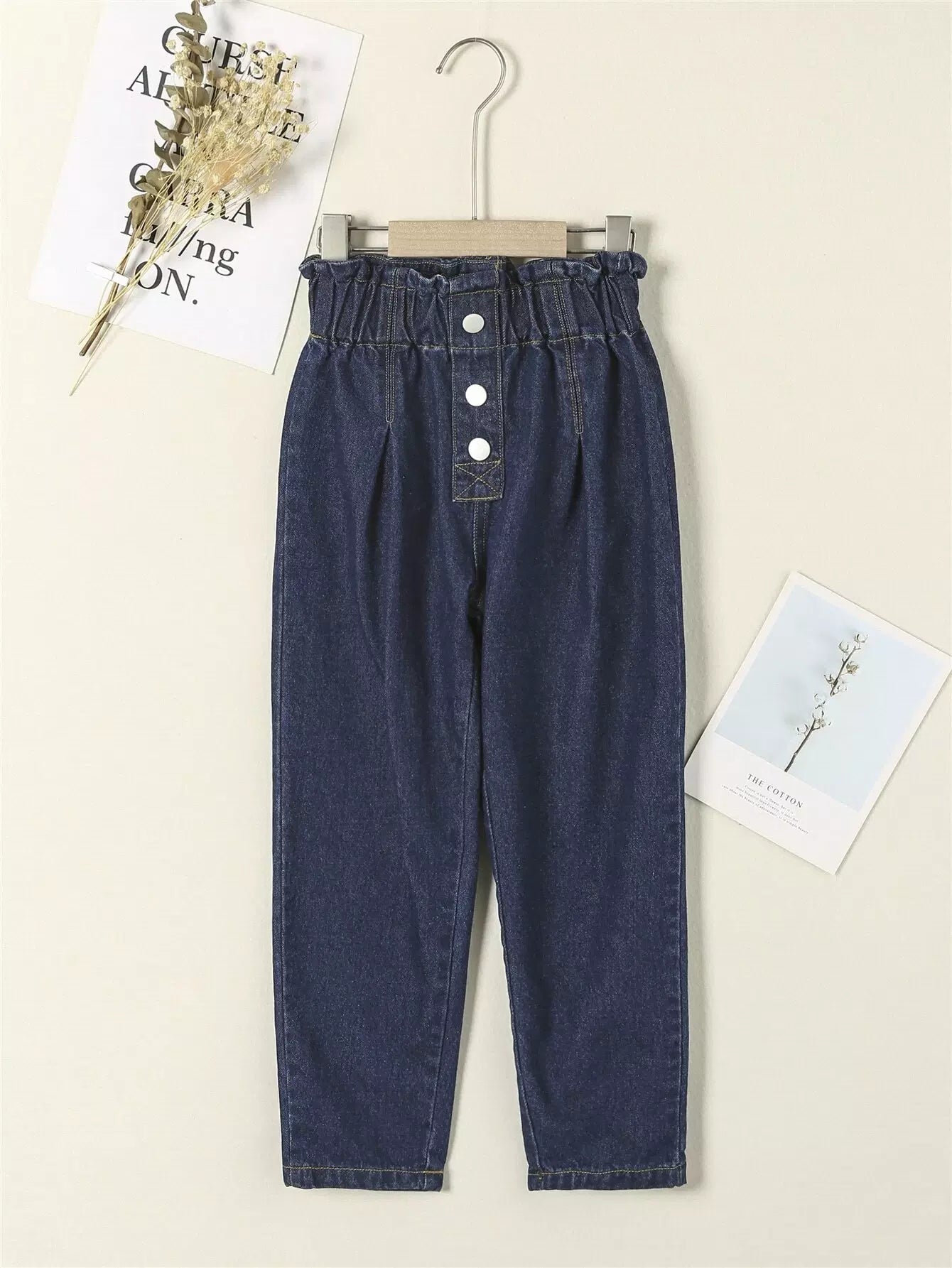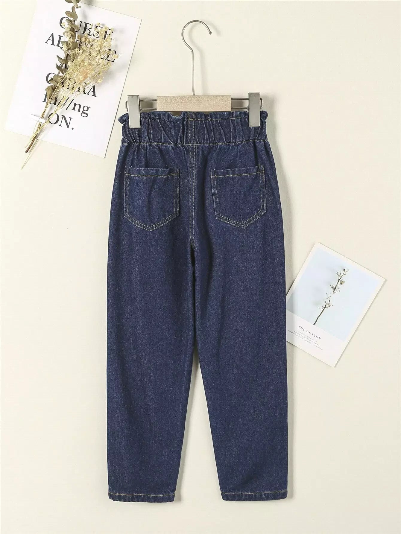 الأطفال - بنطال جينز مدبب بجيب ورقي على الخصر للفتيات
