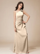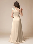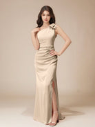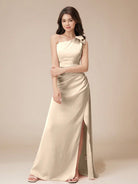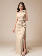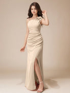 فستان وصيفة العروس عالي الجودة للفتيات المراهقات بكتف واحد مطوي ومقسم، مناسب لحفلات الزفاف،