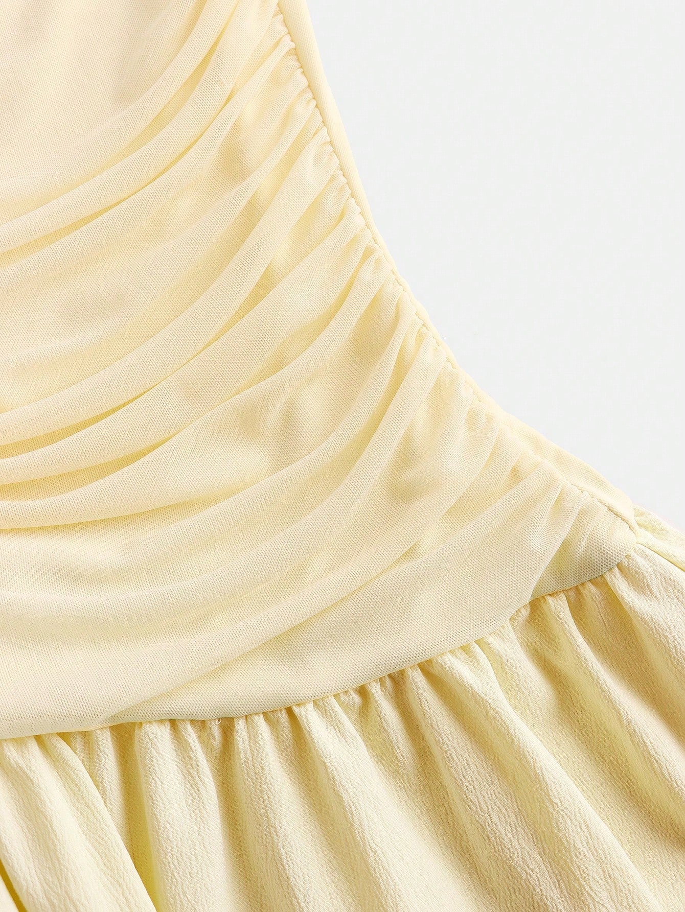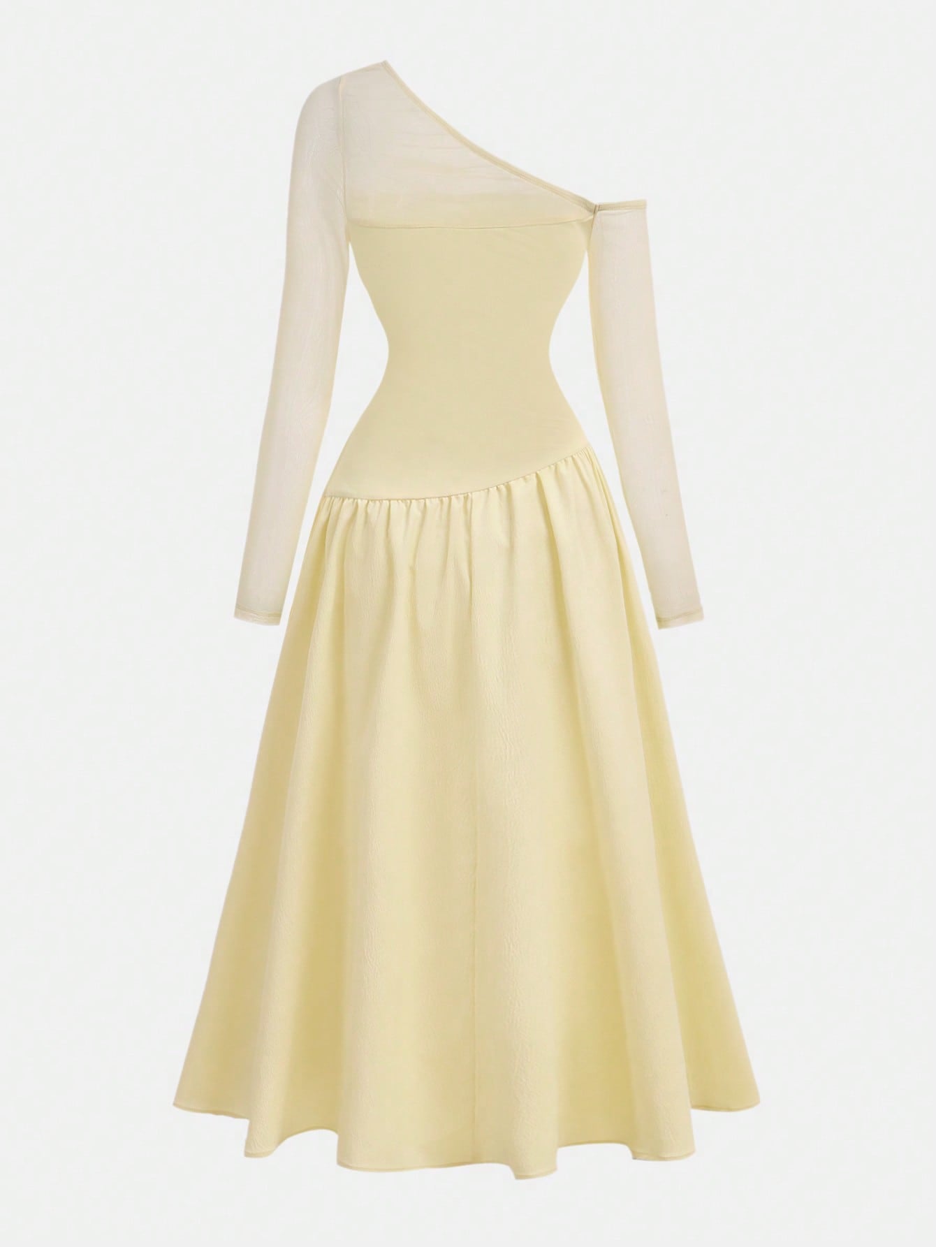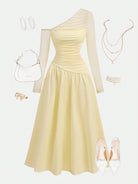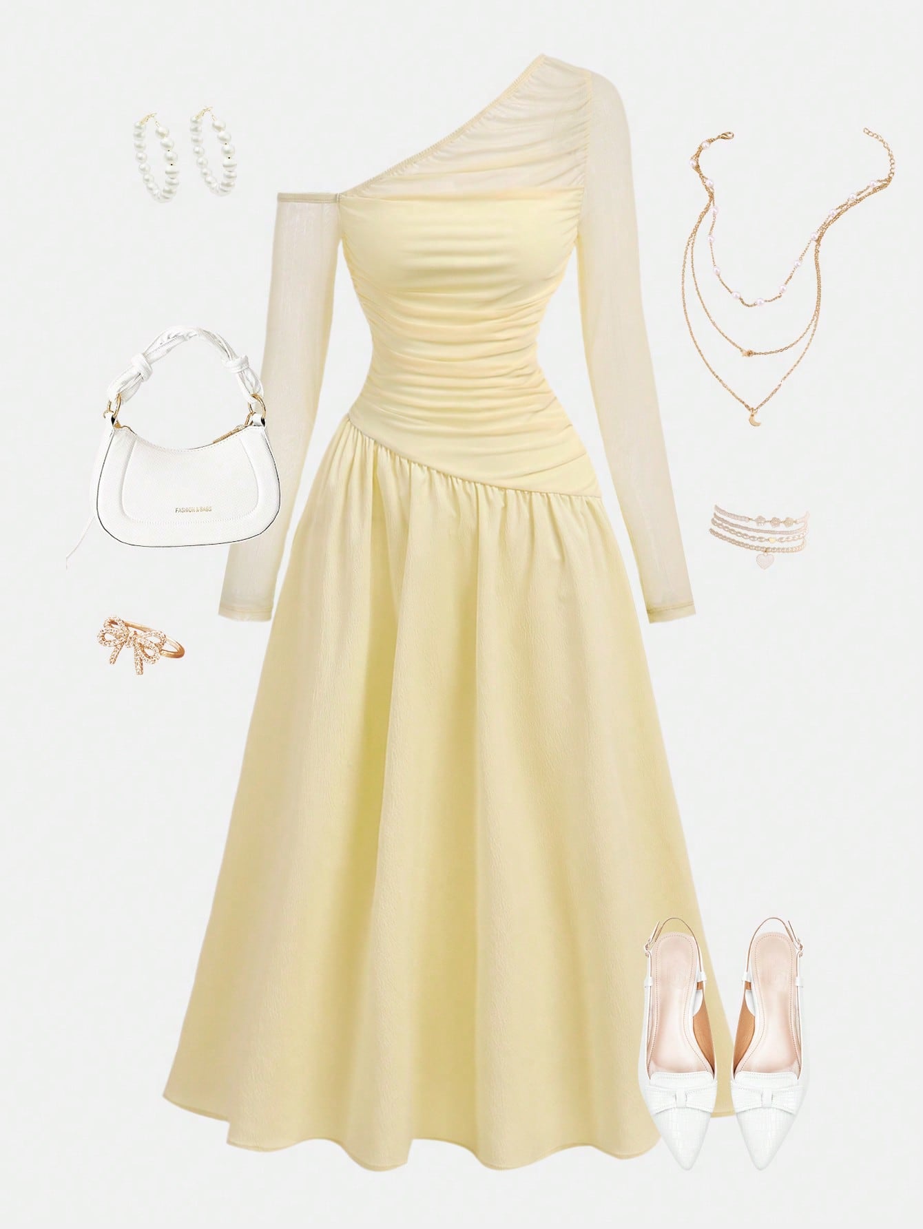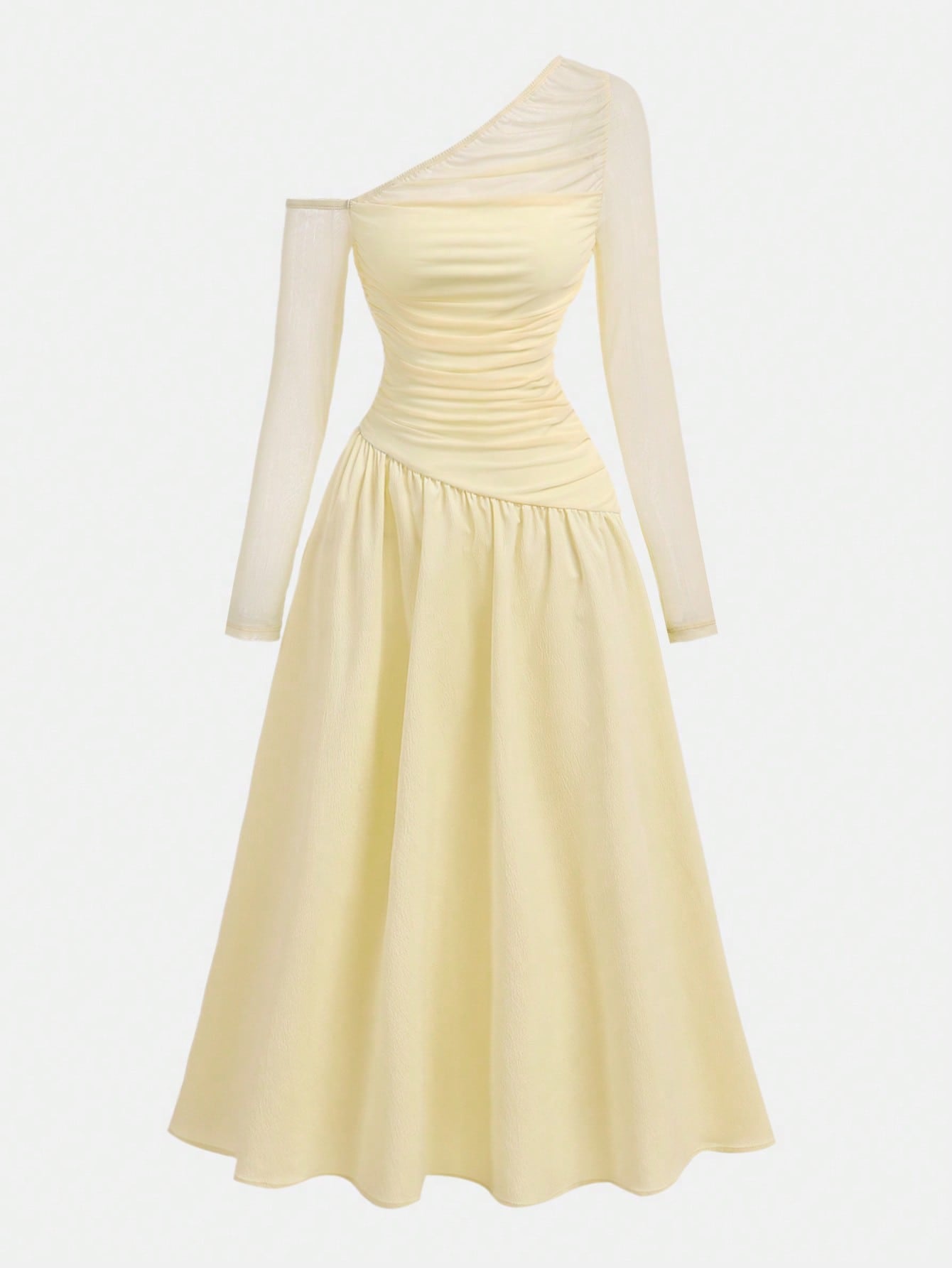 فستان جيرليزم للفتيات المراهقات بأكمام طويلة ومطوي غير متماثل، فستان رائع باللون الأحمر