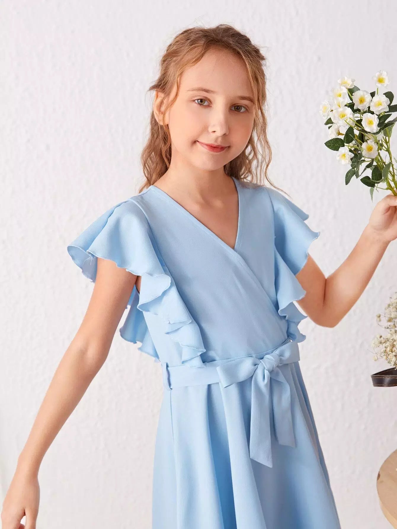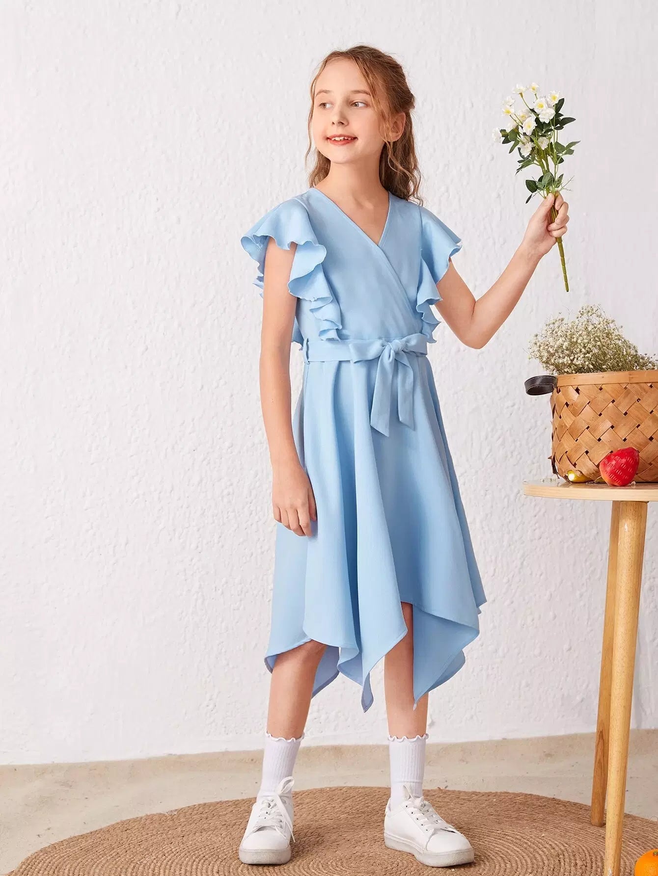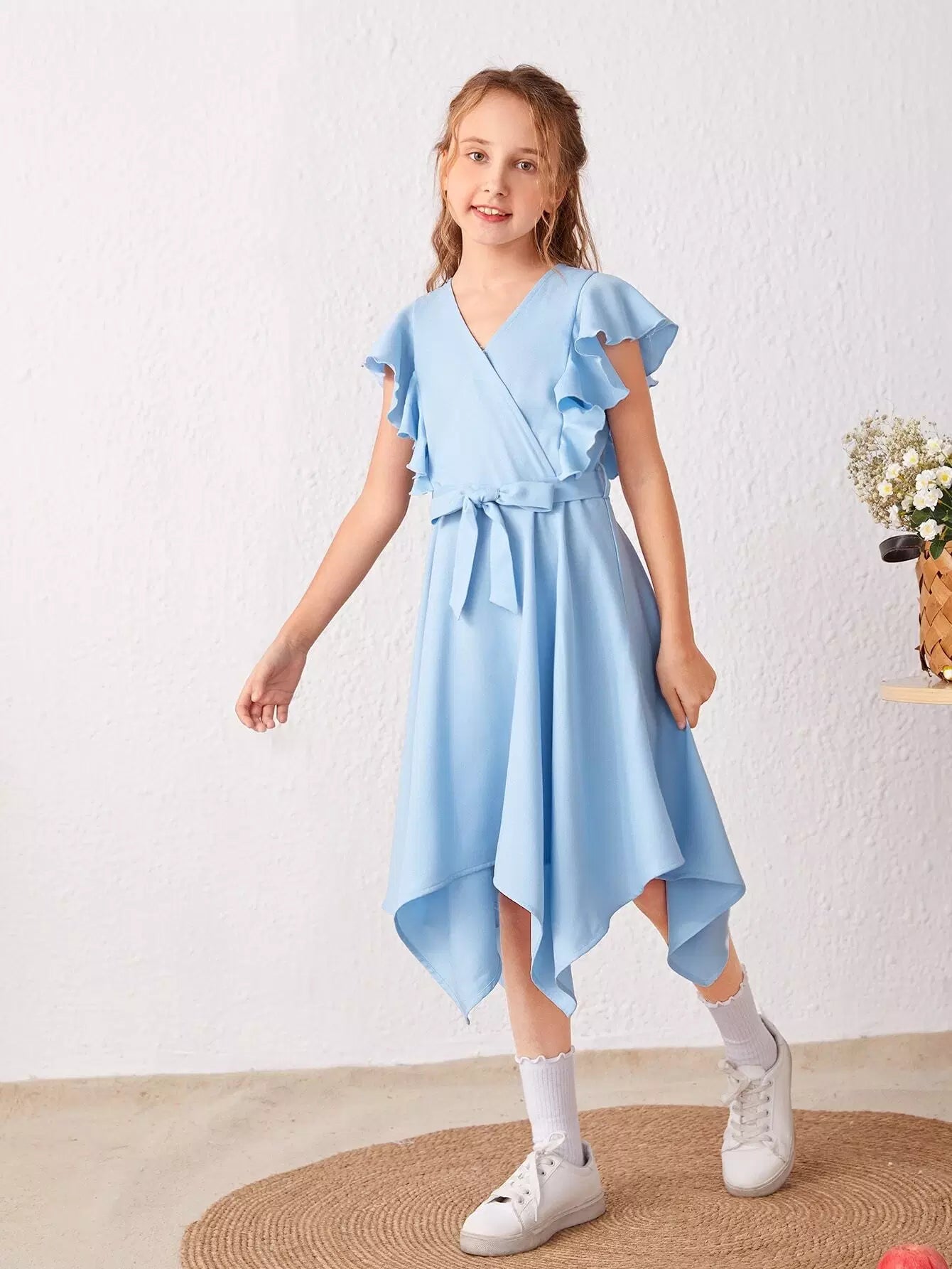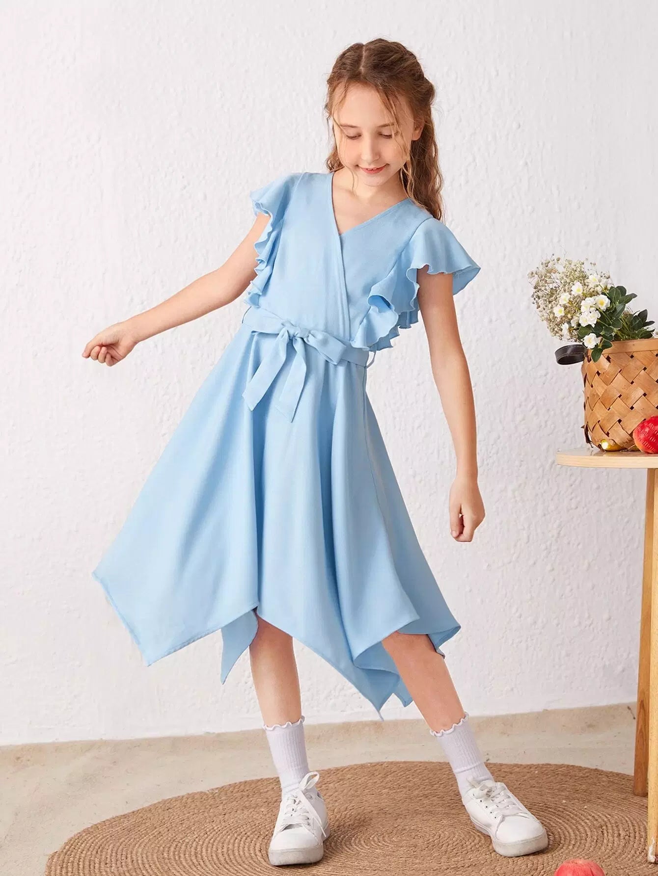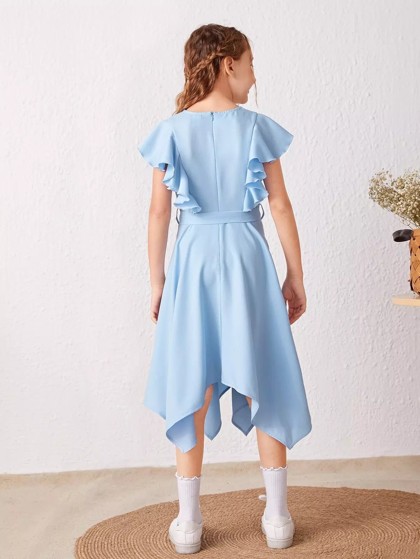 فستان بنات بحافة غير متماثلة بأكمام منفوشة