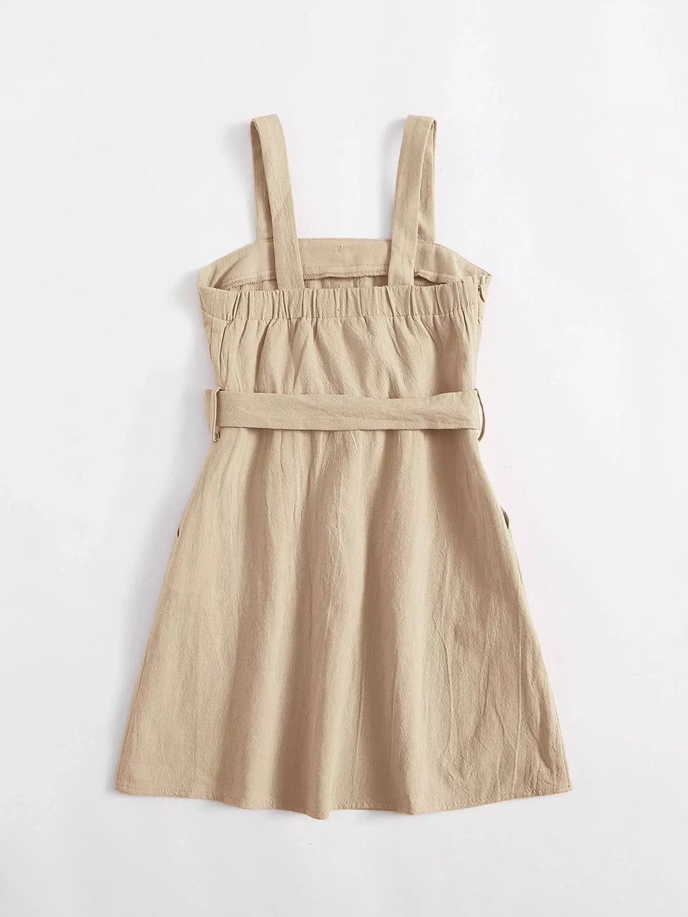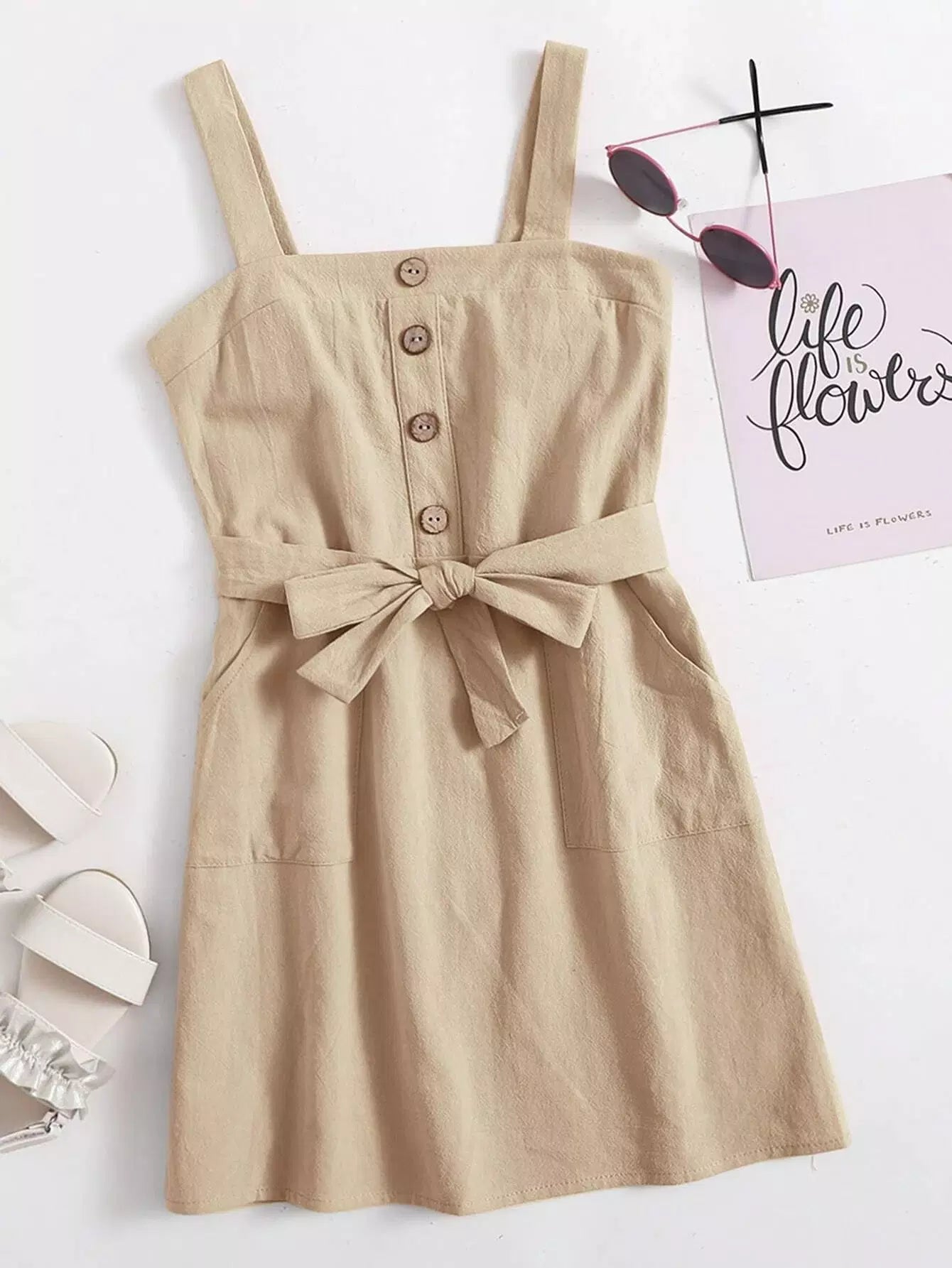 فستان كامي ذاتي بأزرار أمامية للفتيات بدون حزام