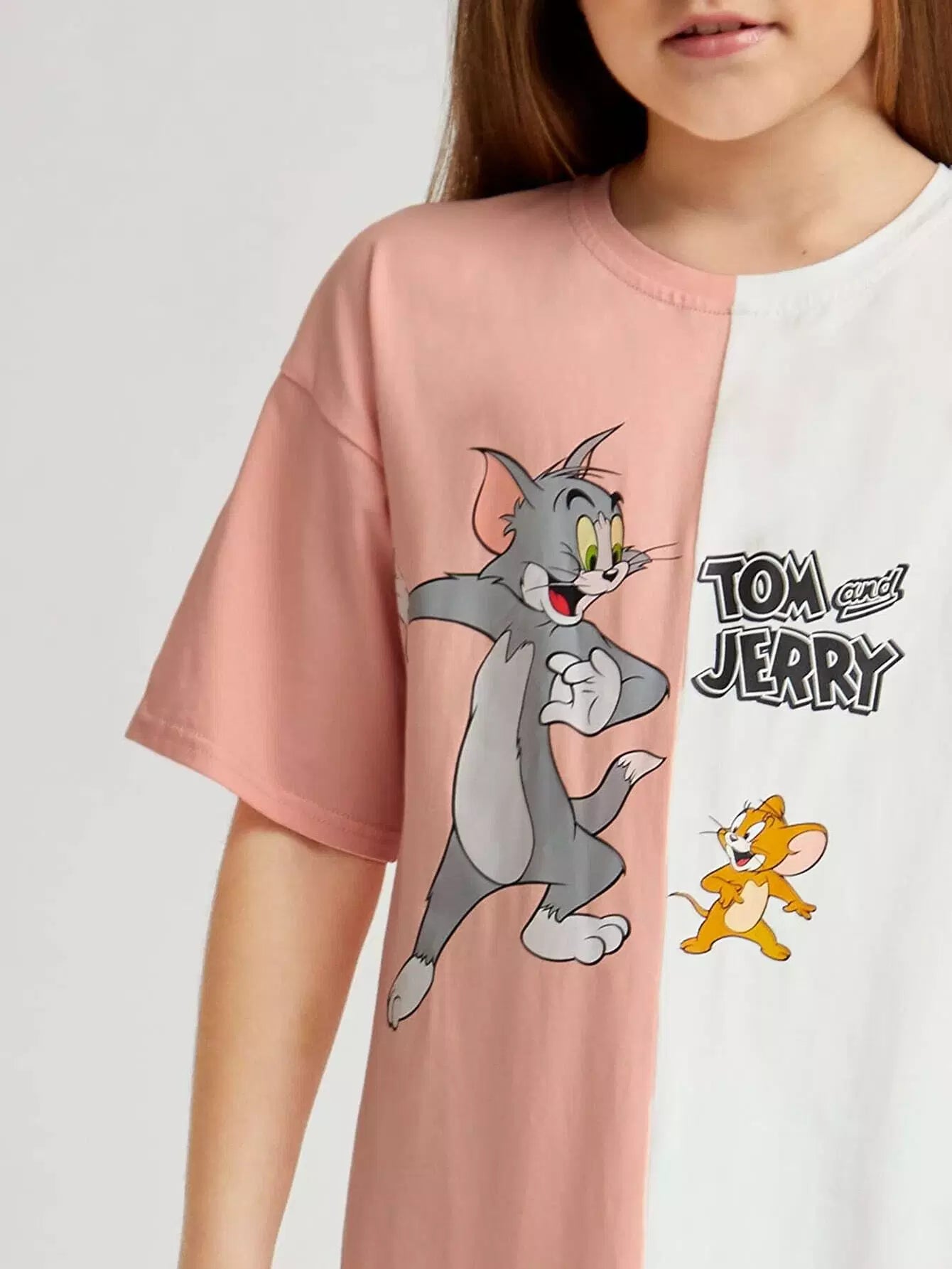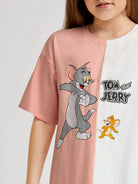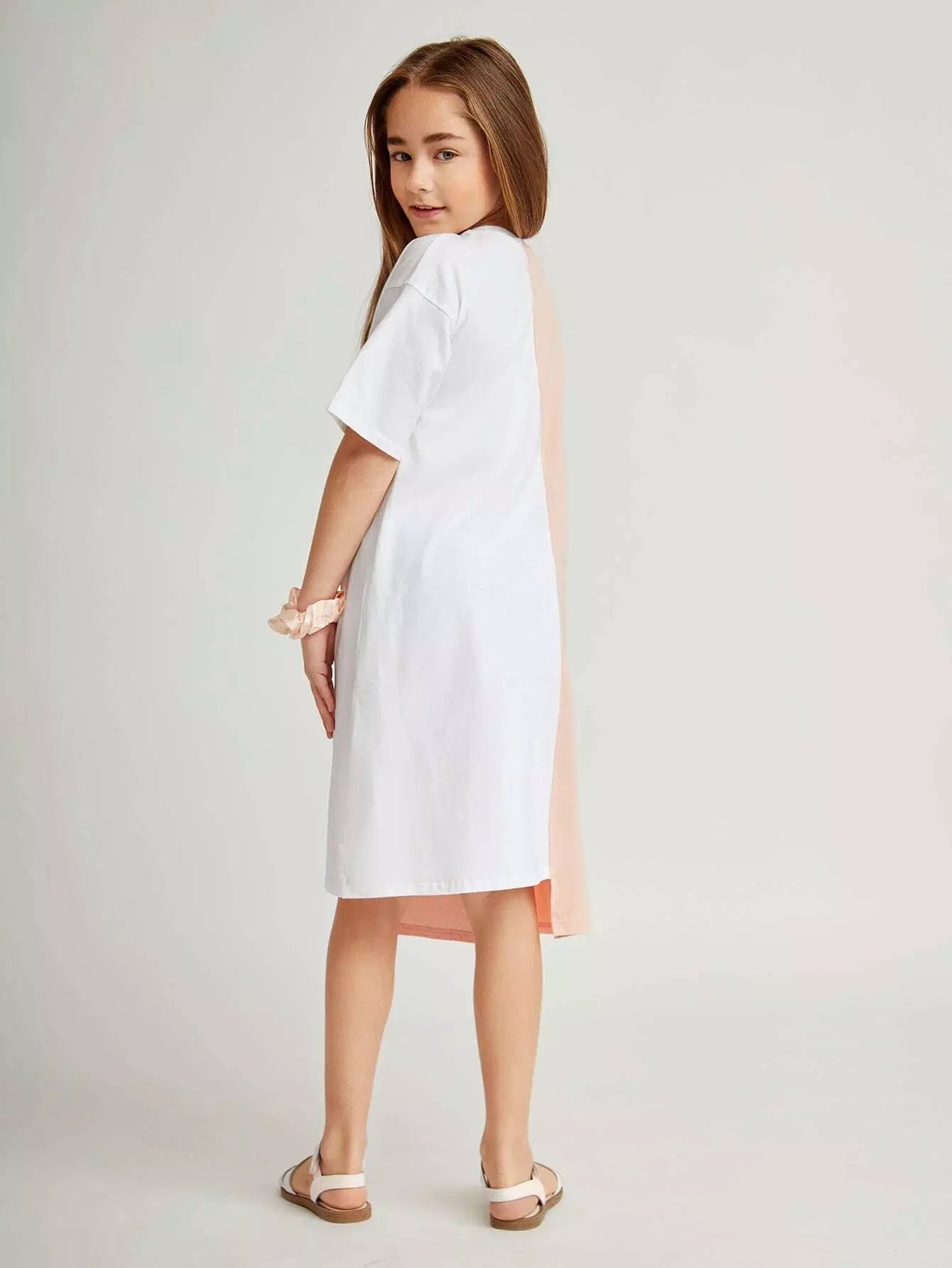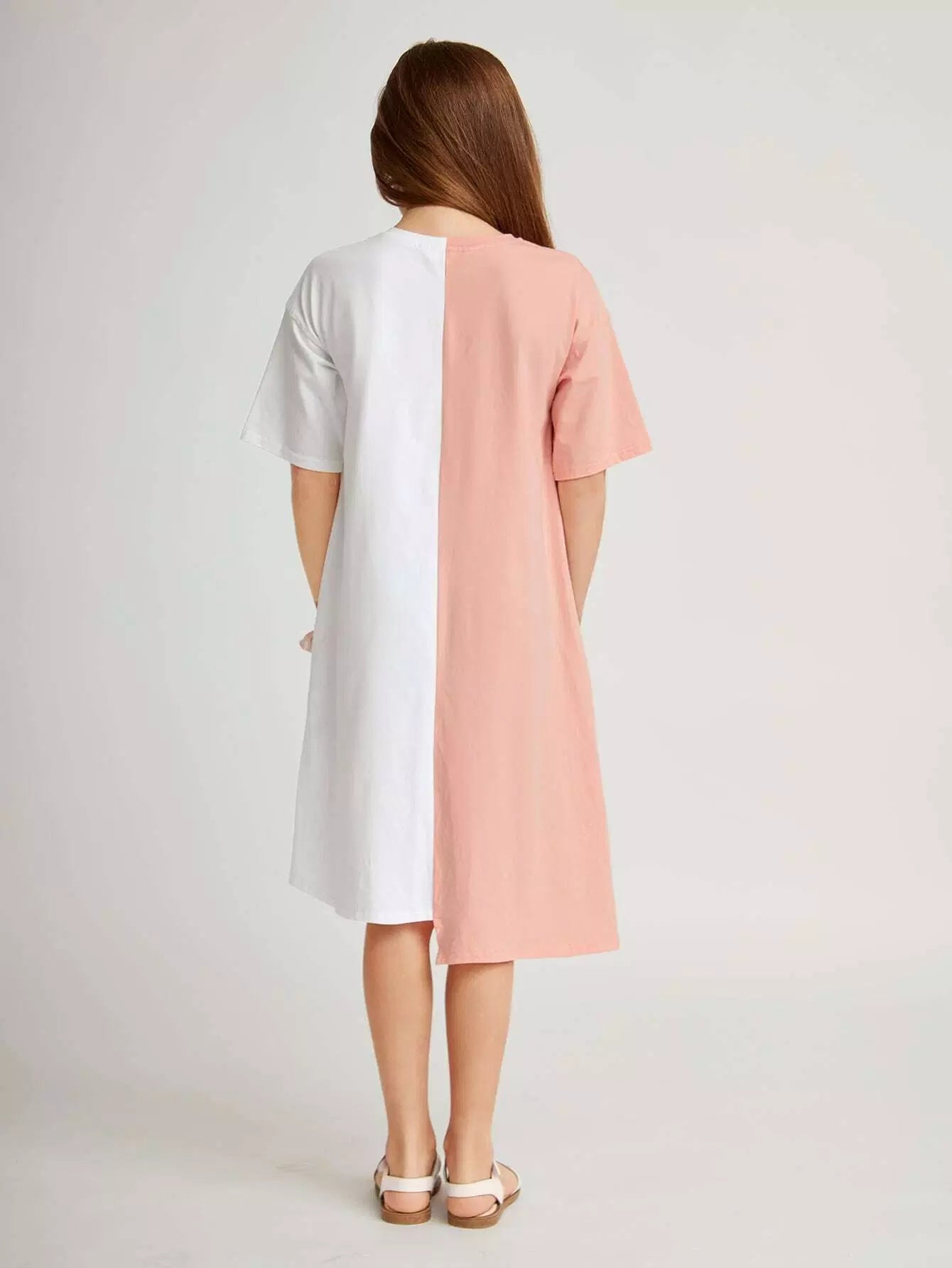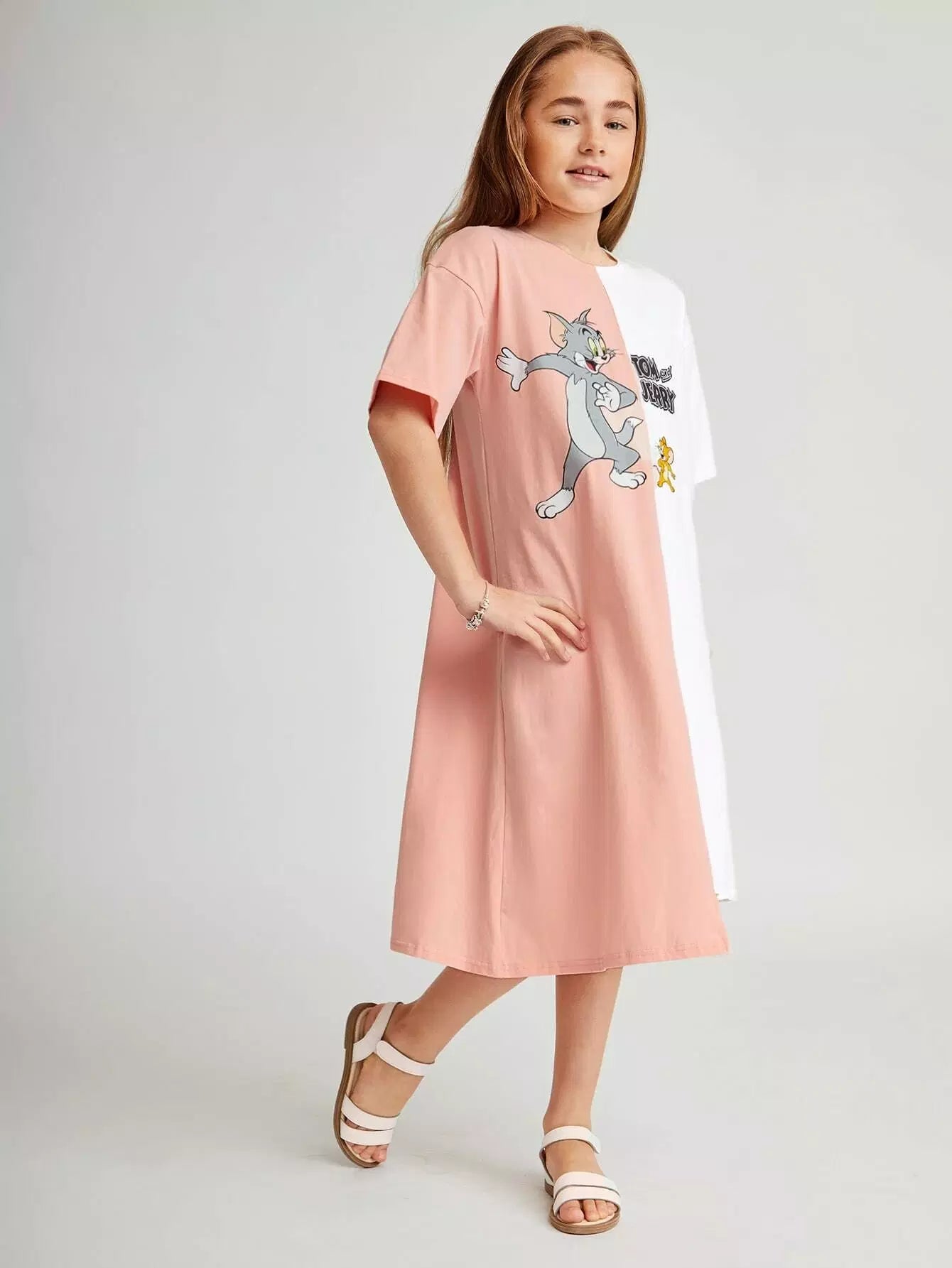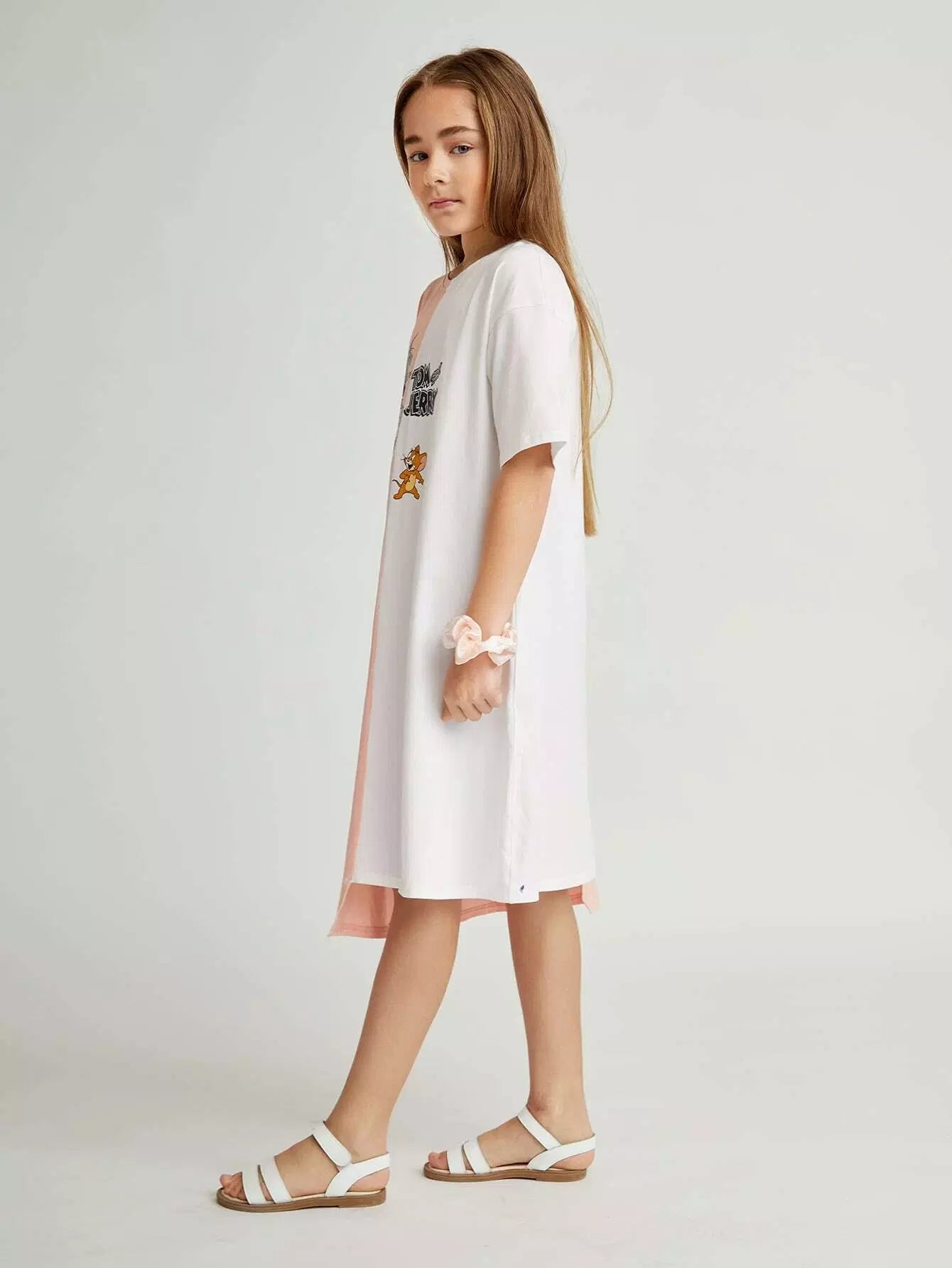 فستان بناتي برسومات كرتونية وحافة غير متماثلة بلونين