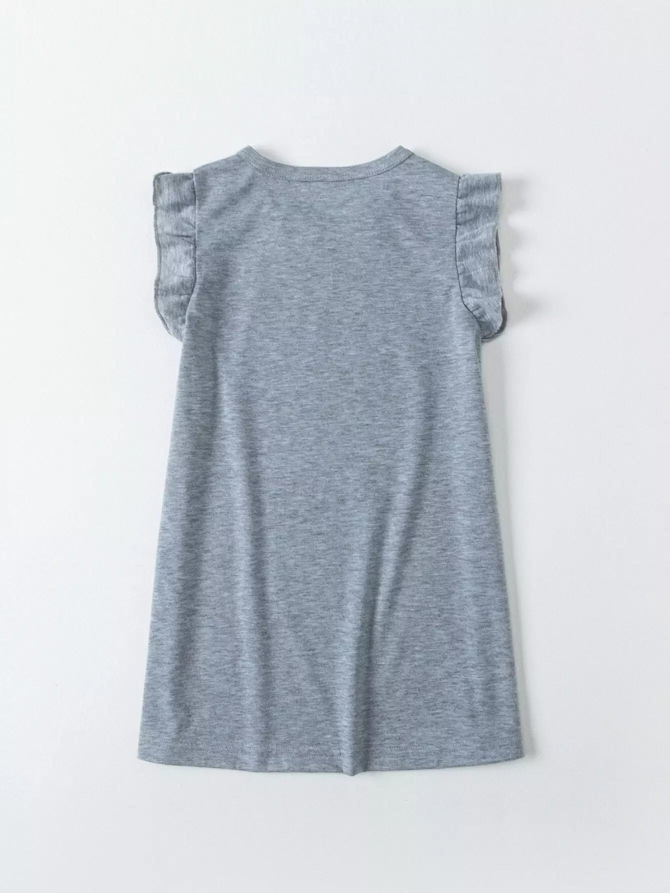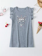 فستان بنات بطبعة قطة مطبوع عليه كشكش بأكمام كشكش