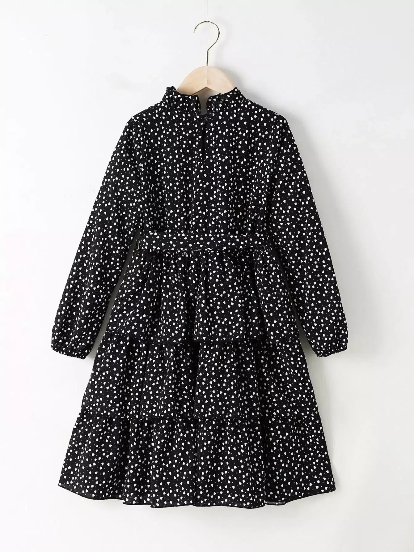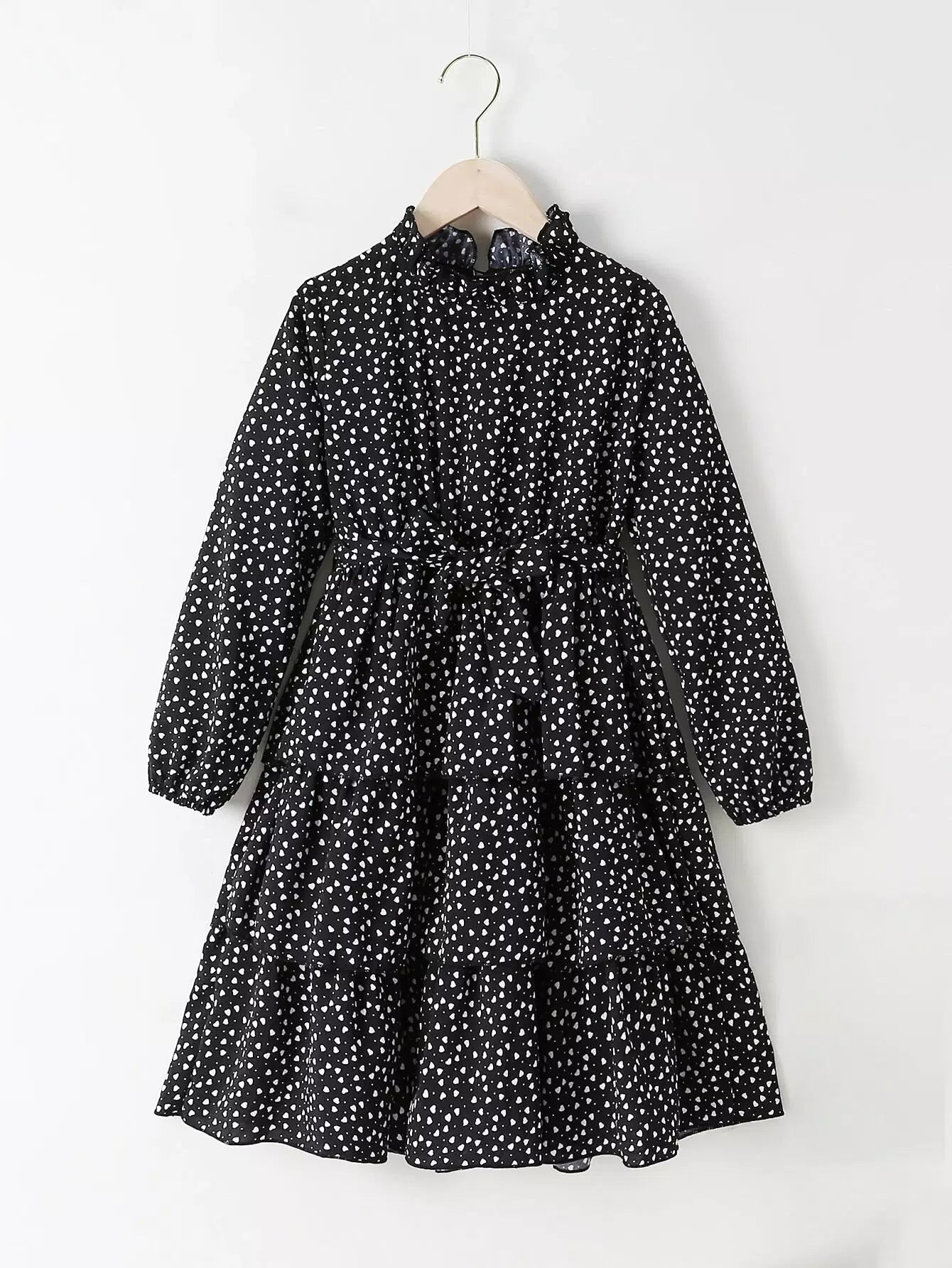 فستان بناتي بطبعة قلب وطبقات بدون حزام