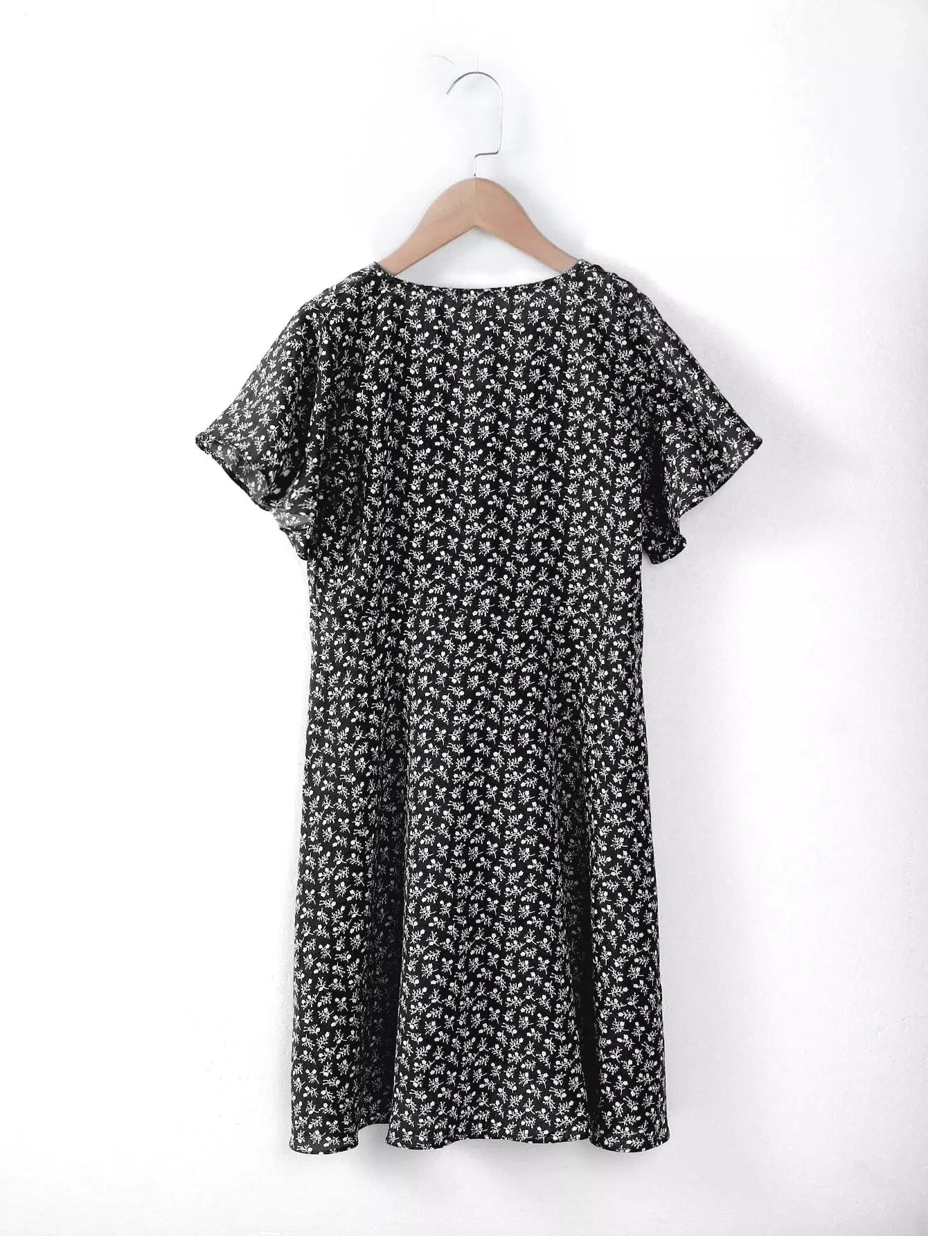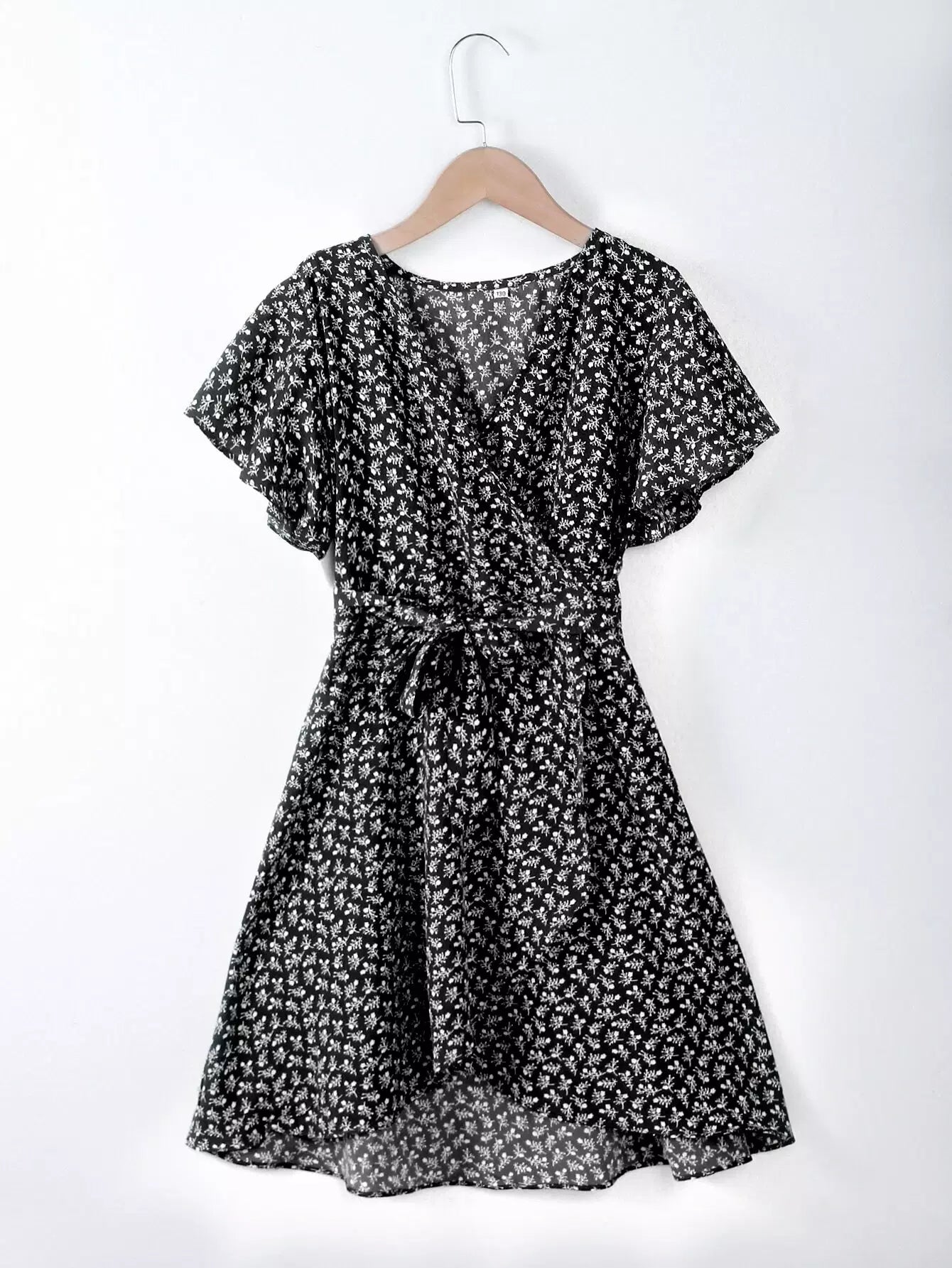 فستان بناتي Ditsy مُزين بنقشة الزهور وأكمام على شكل فراشة بدون حزام