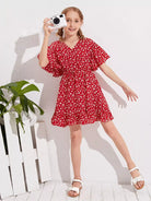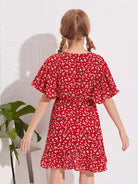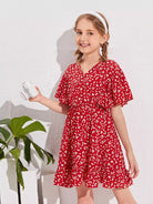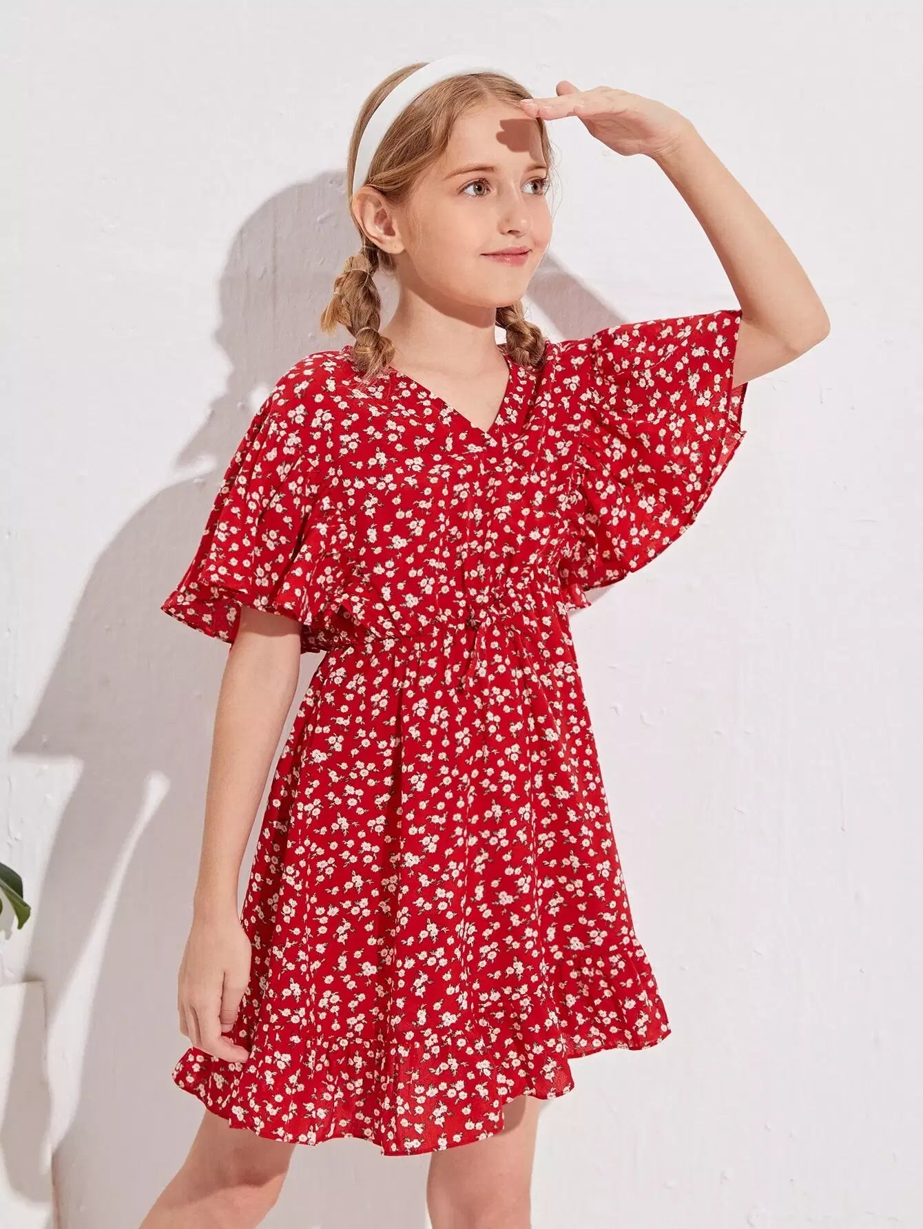 فستان بناتي مزين بالزهور الصغيرة مع رقبة مزينة بكشكشة