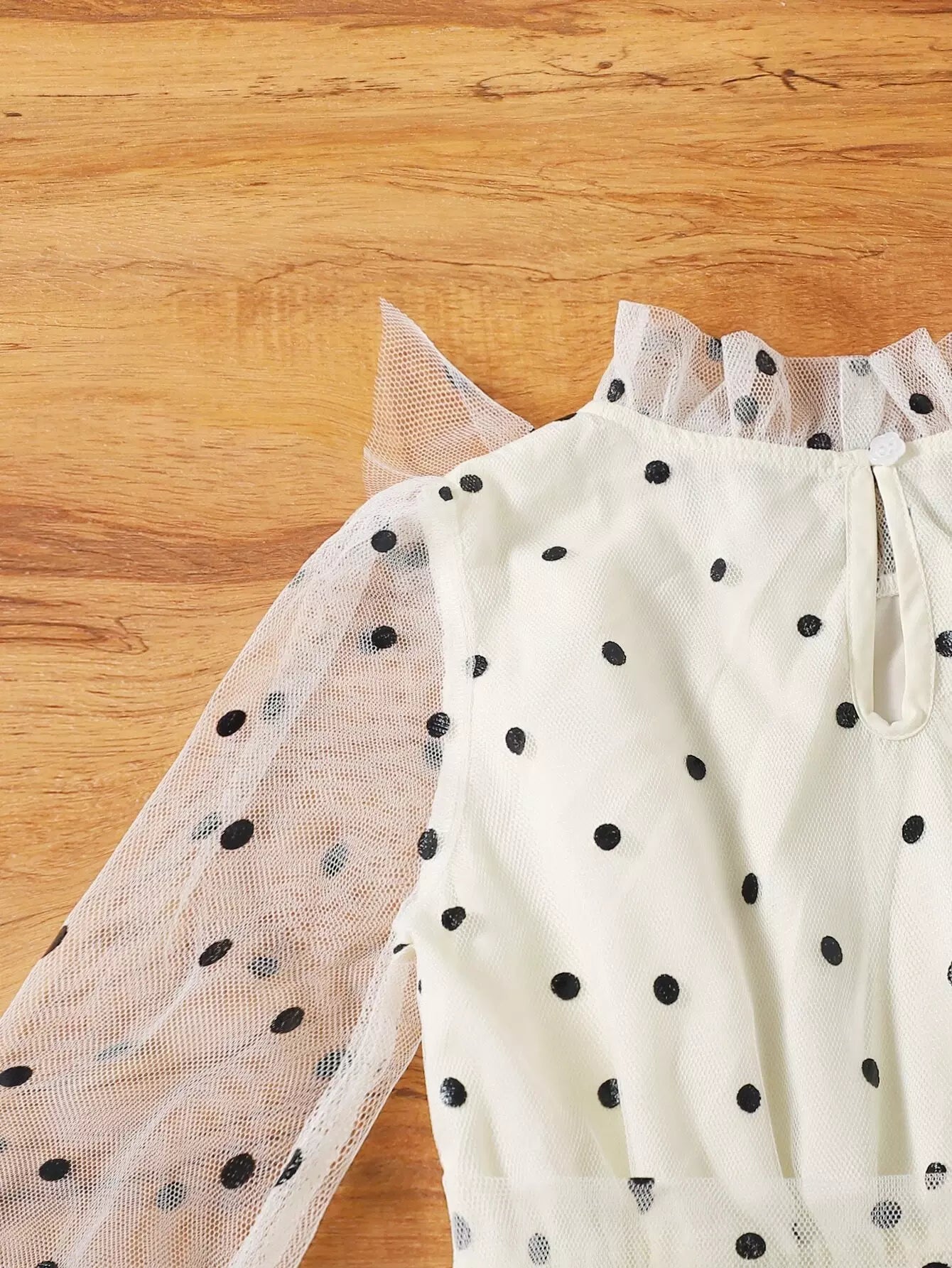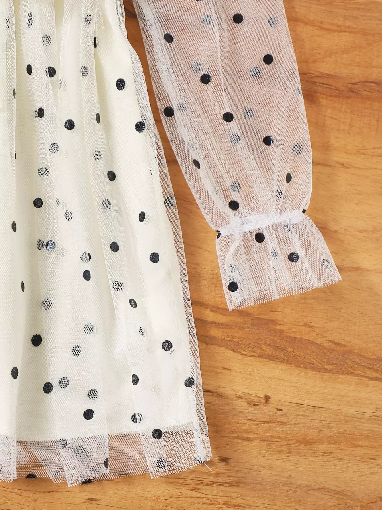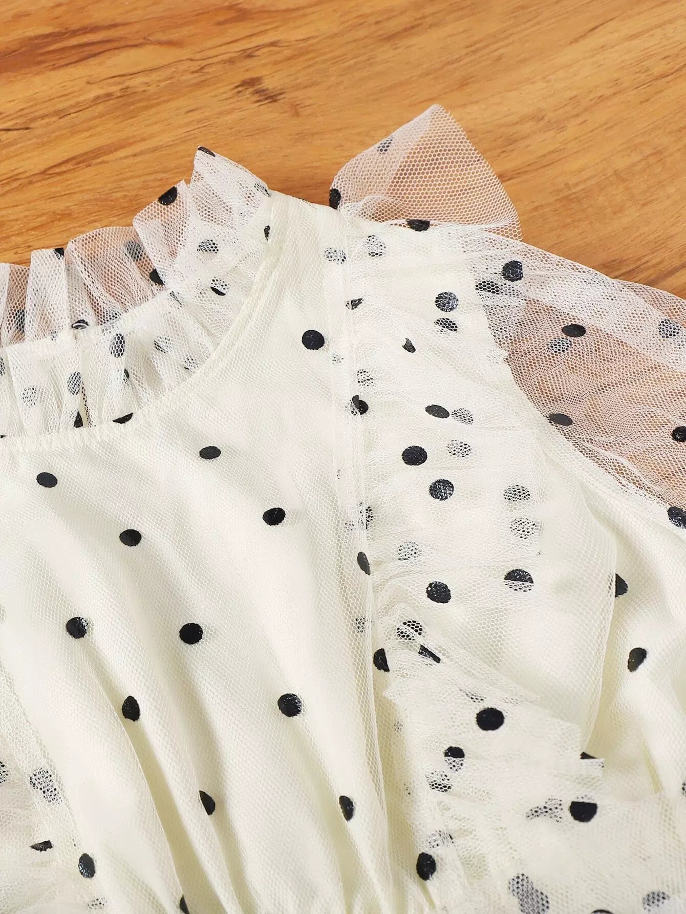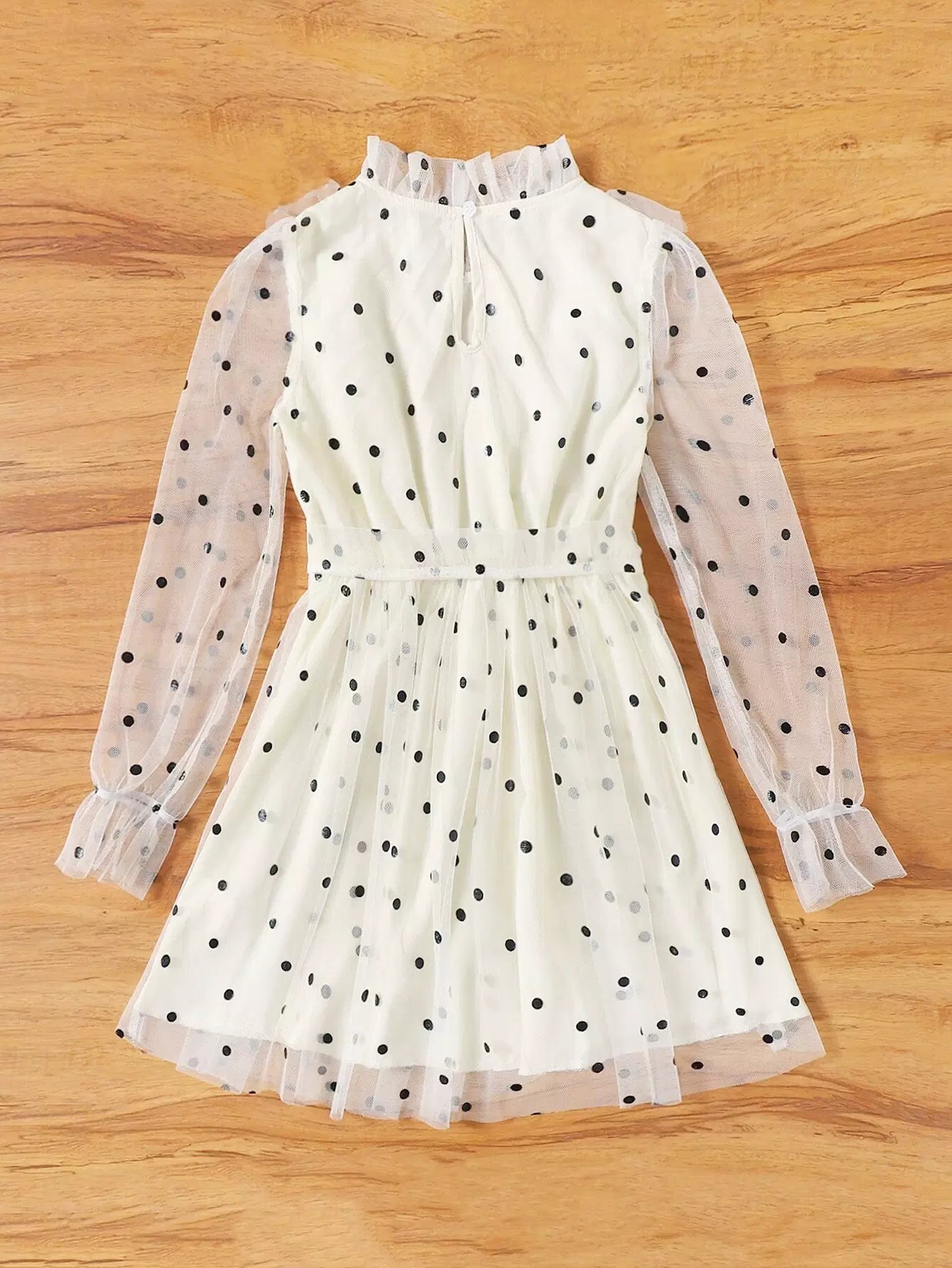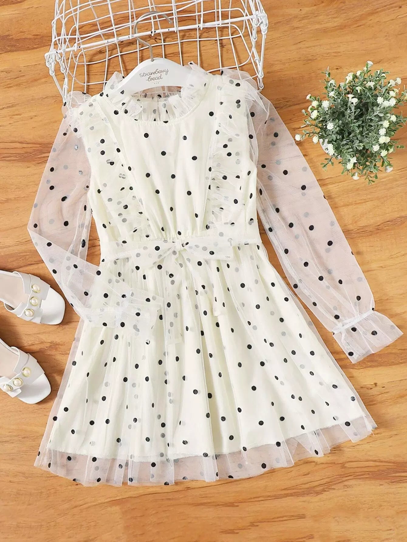 فستان بناتي دوبي شبكي مكشكش بدون حزام