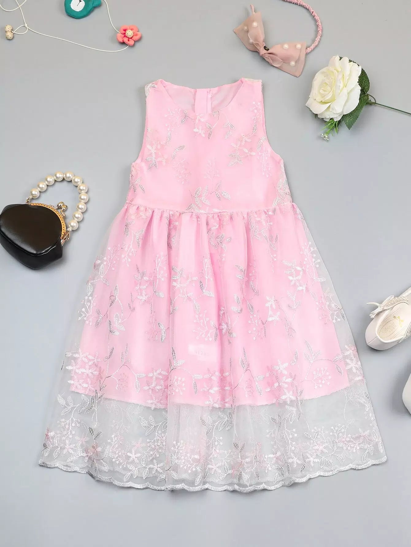فستان مطرز بتطريز شبكي متراكب للبنات