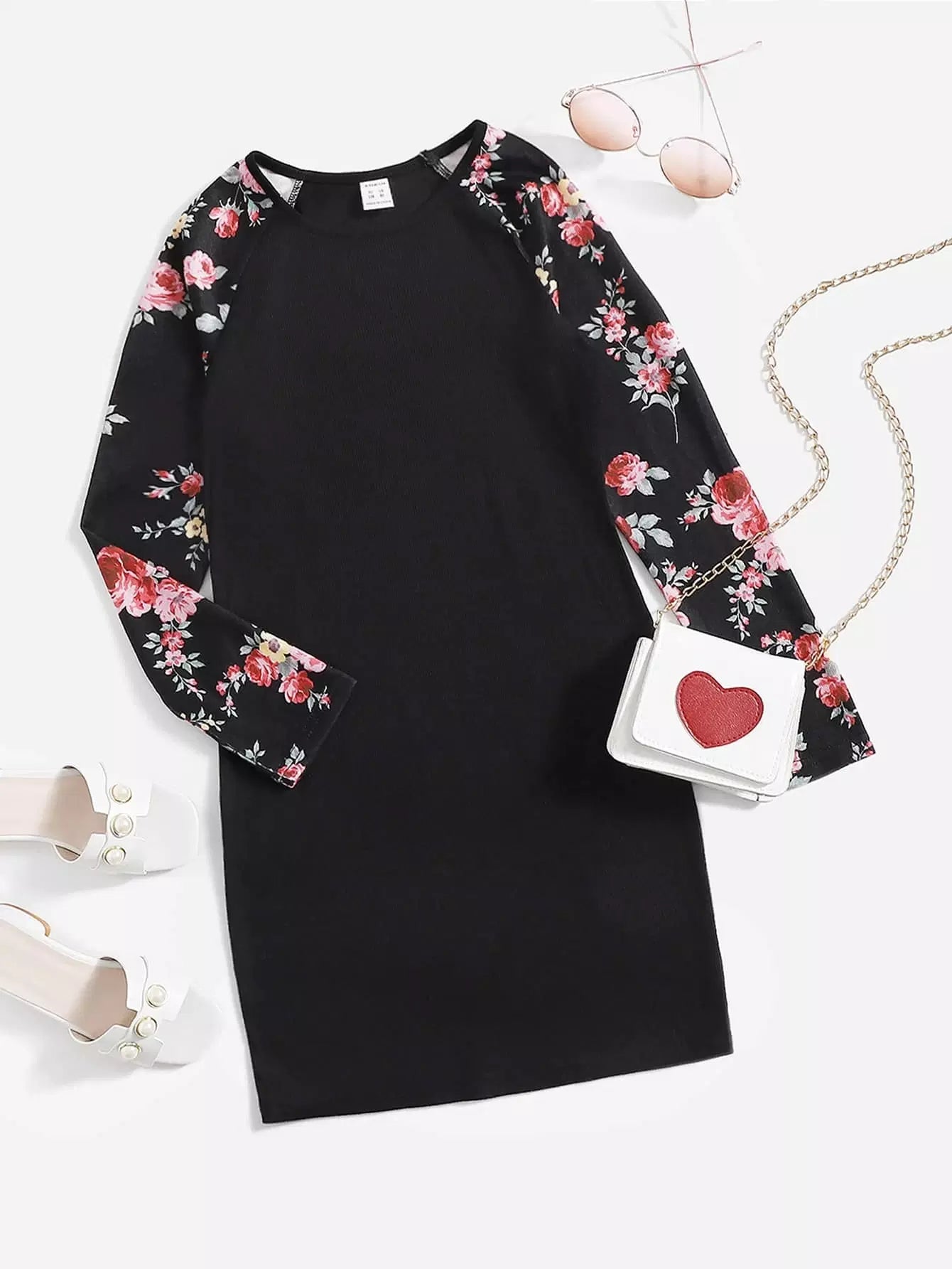 فستان بأكمام راجلان بطبعة زهور للبنات