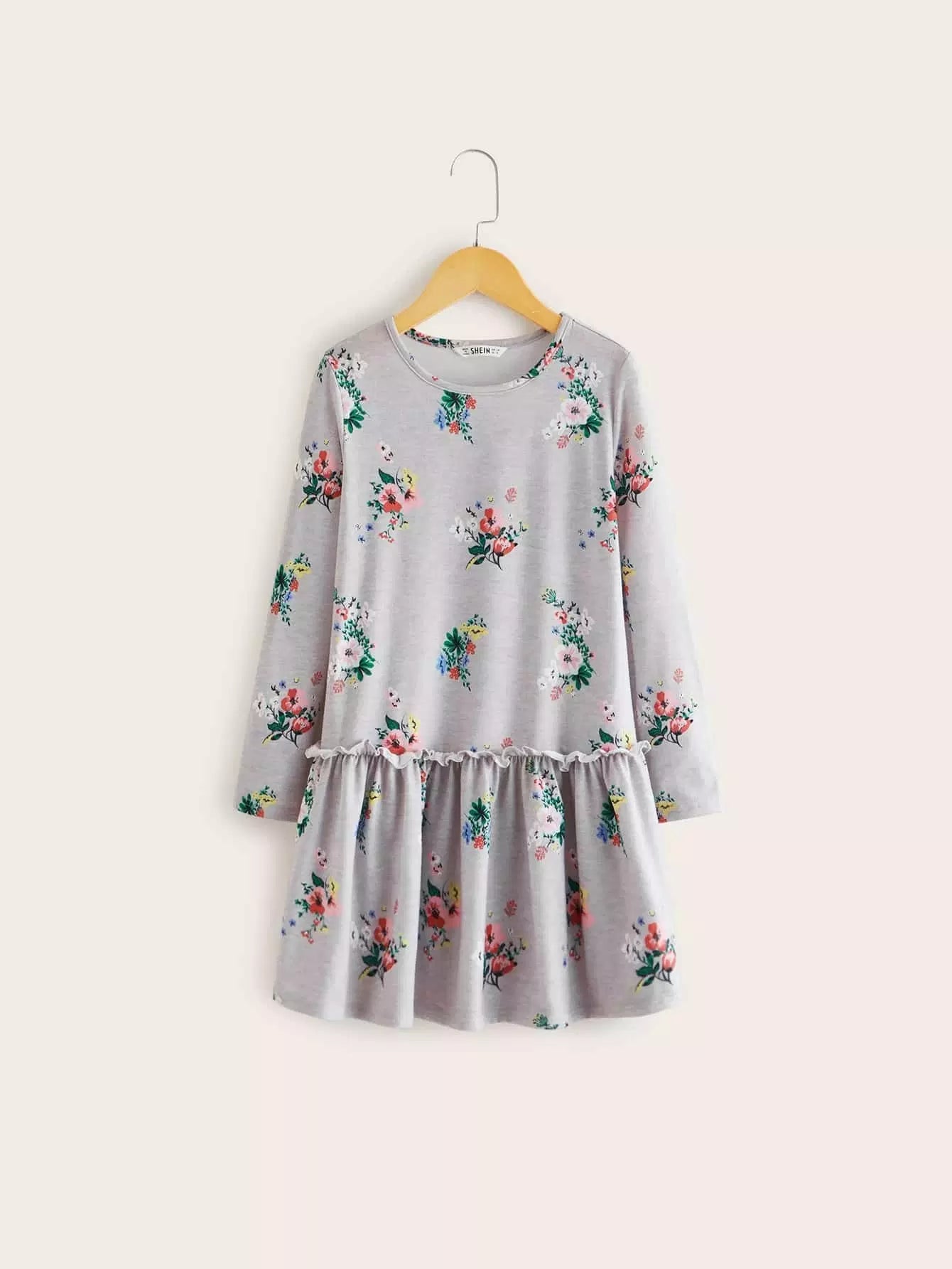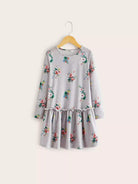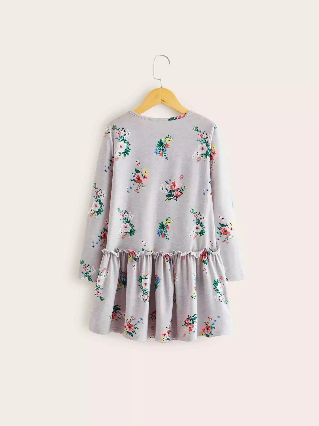 فستان بناتي بطبعة زهور بطبعة كشكش للبنات