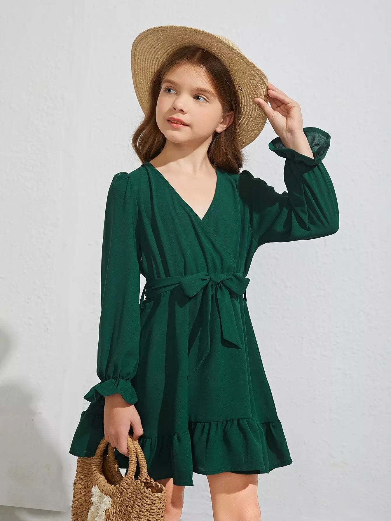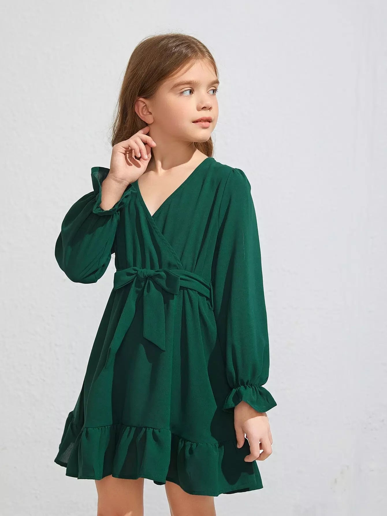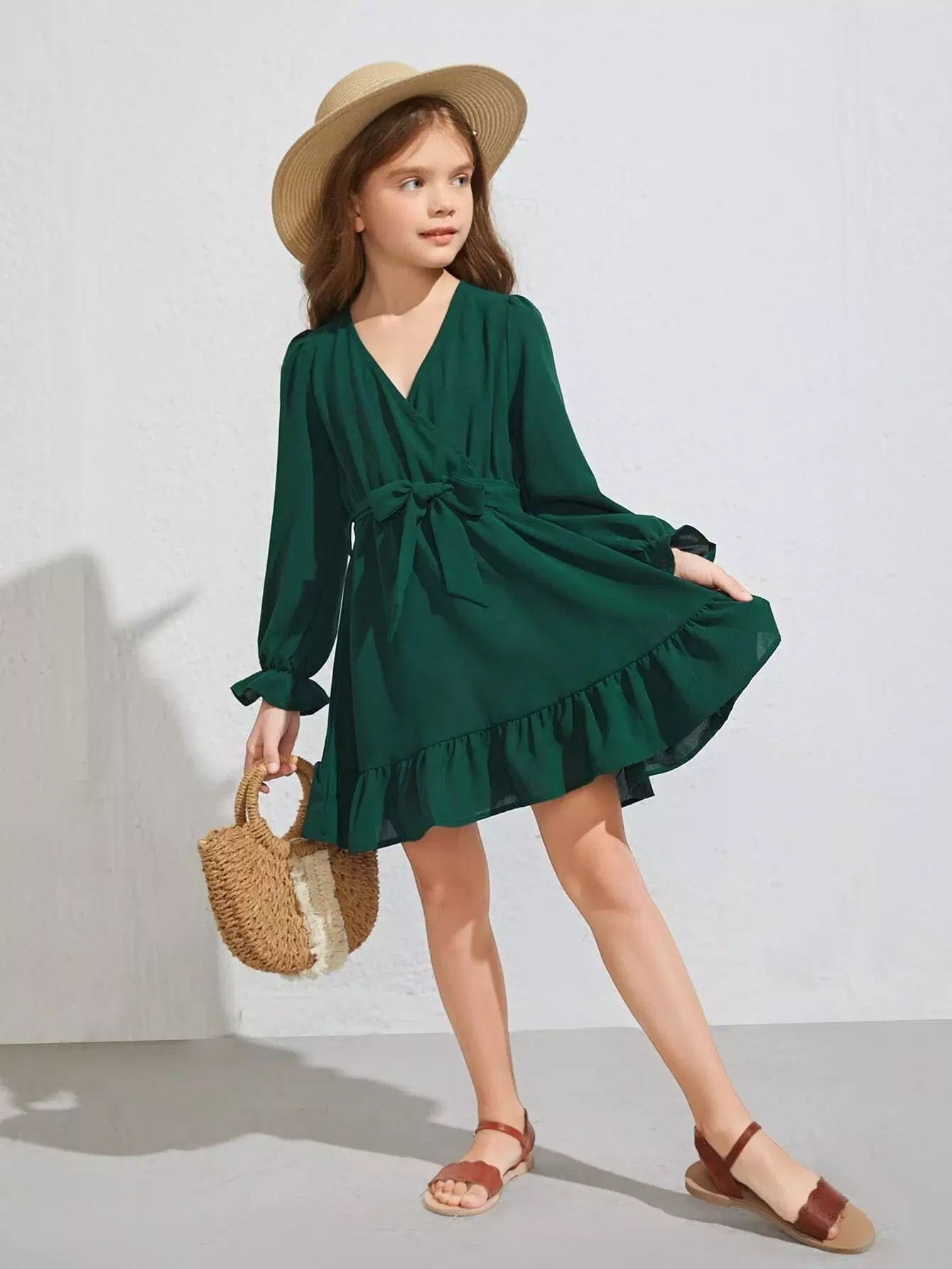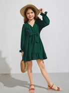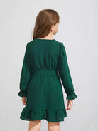 فستان بناتي بأكمام واسعة وحاشية مكشكشة بدون حزام