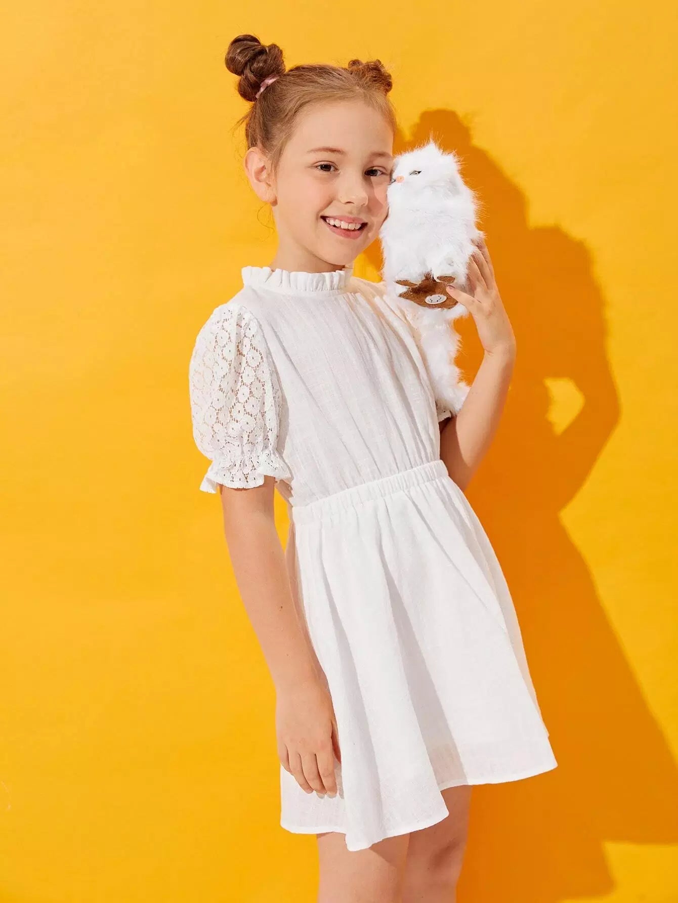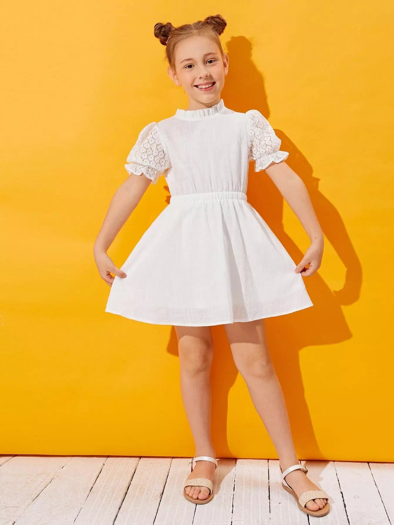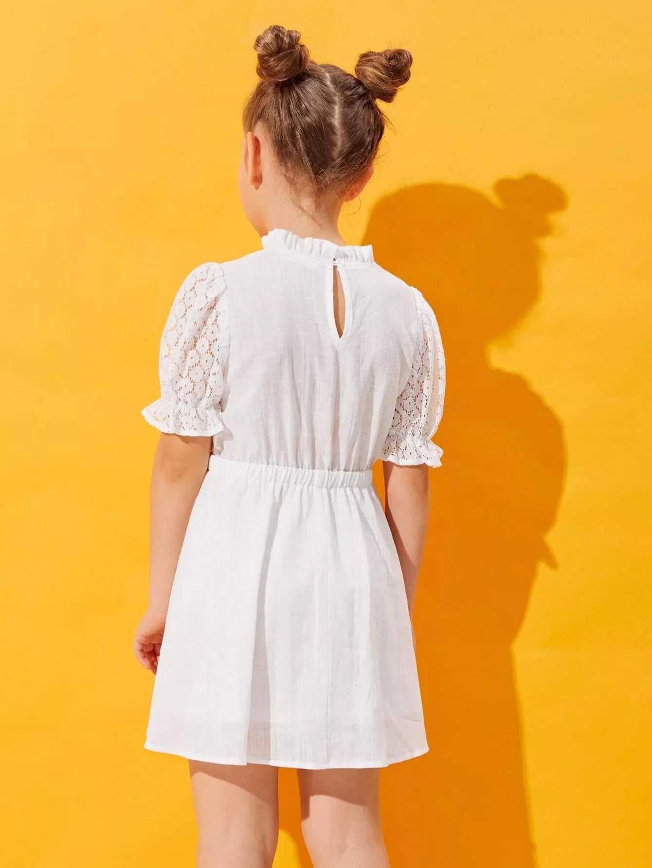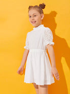 فستان دانتيل بأكمام دانتيل منفوشة برقبة مكشكشة للبنات
