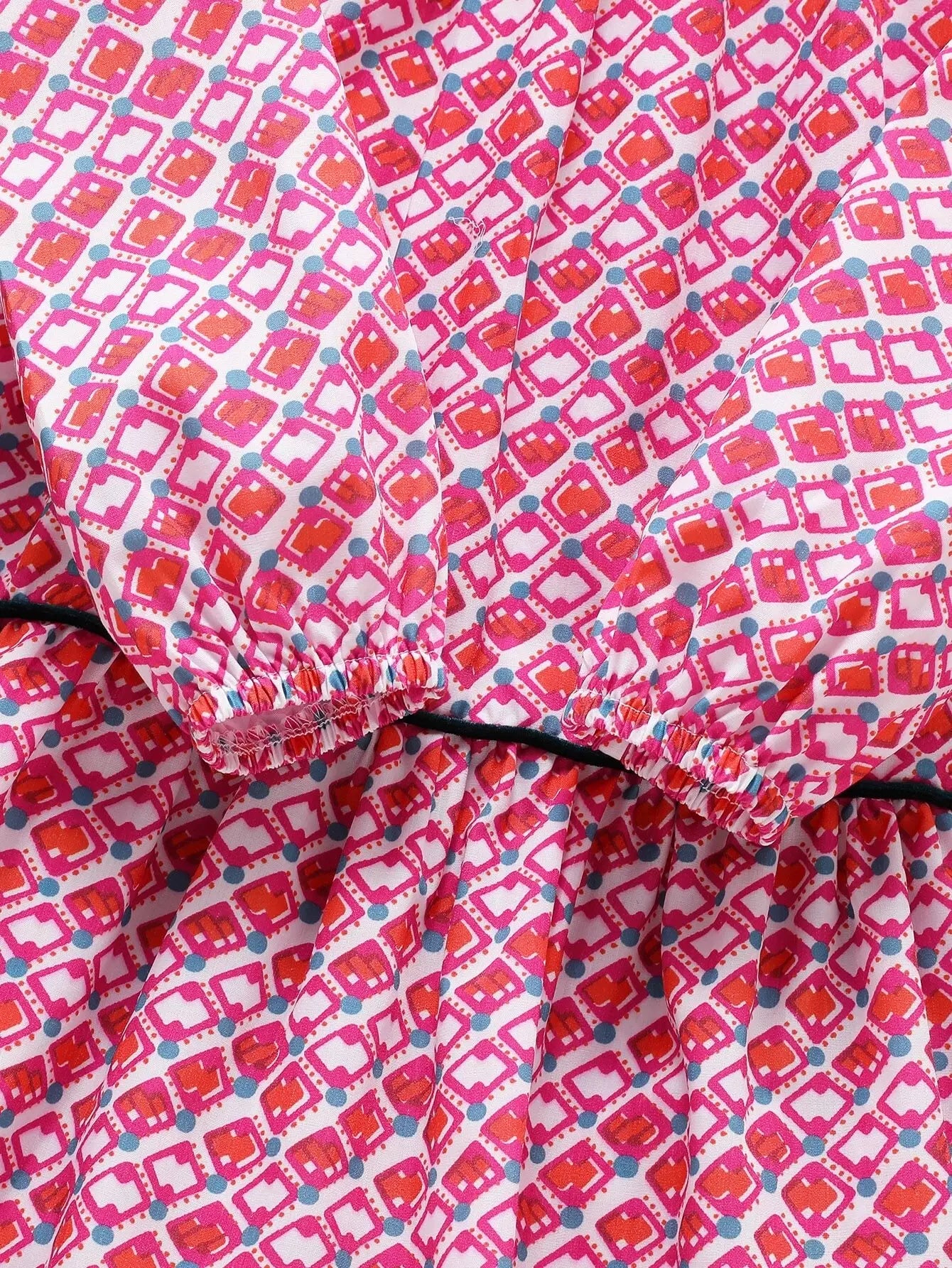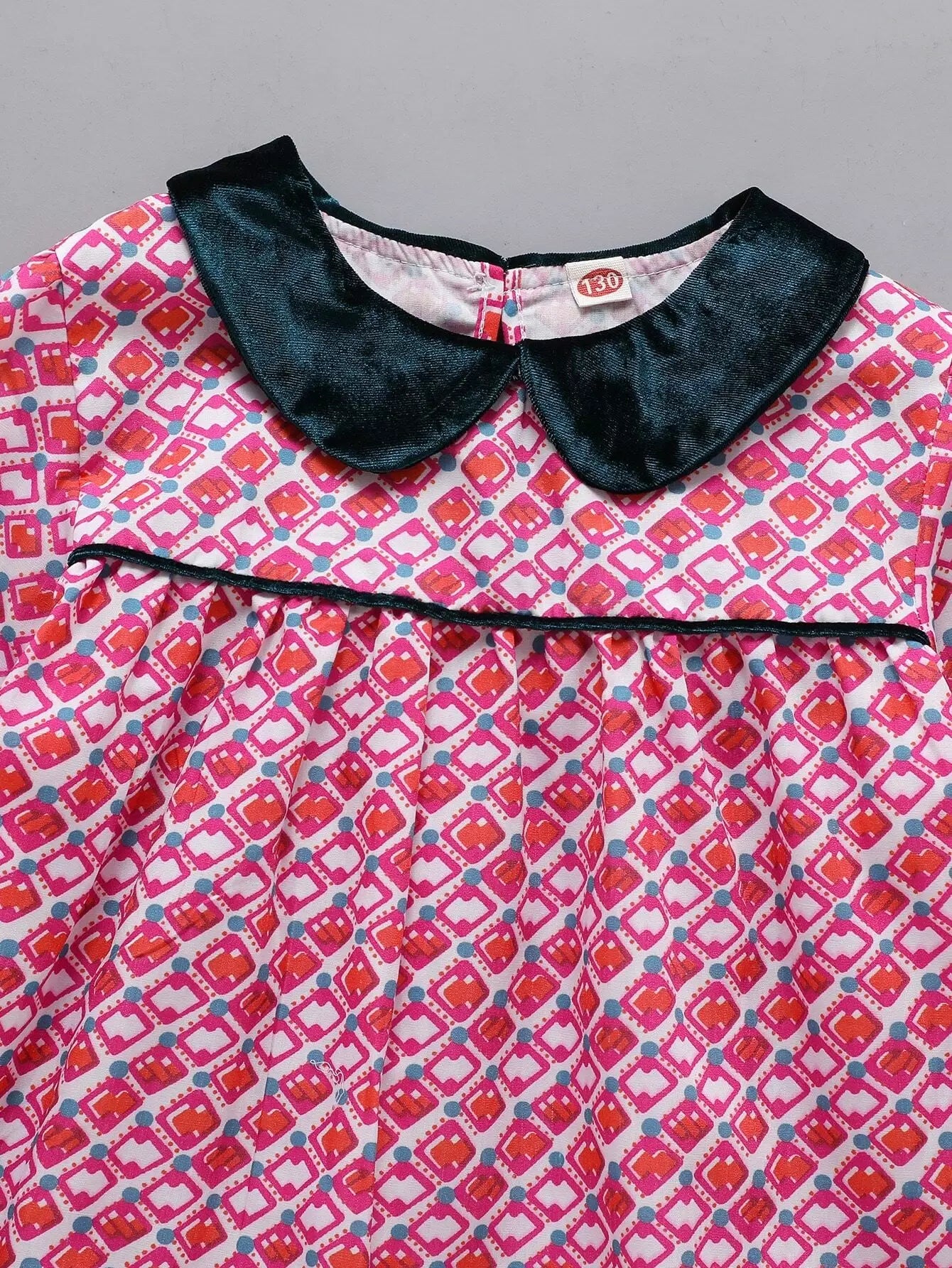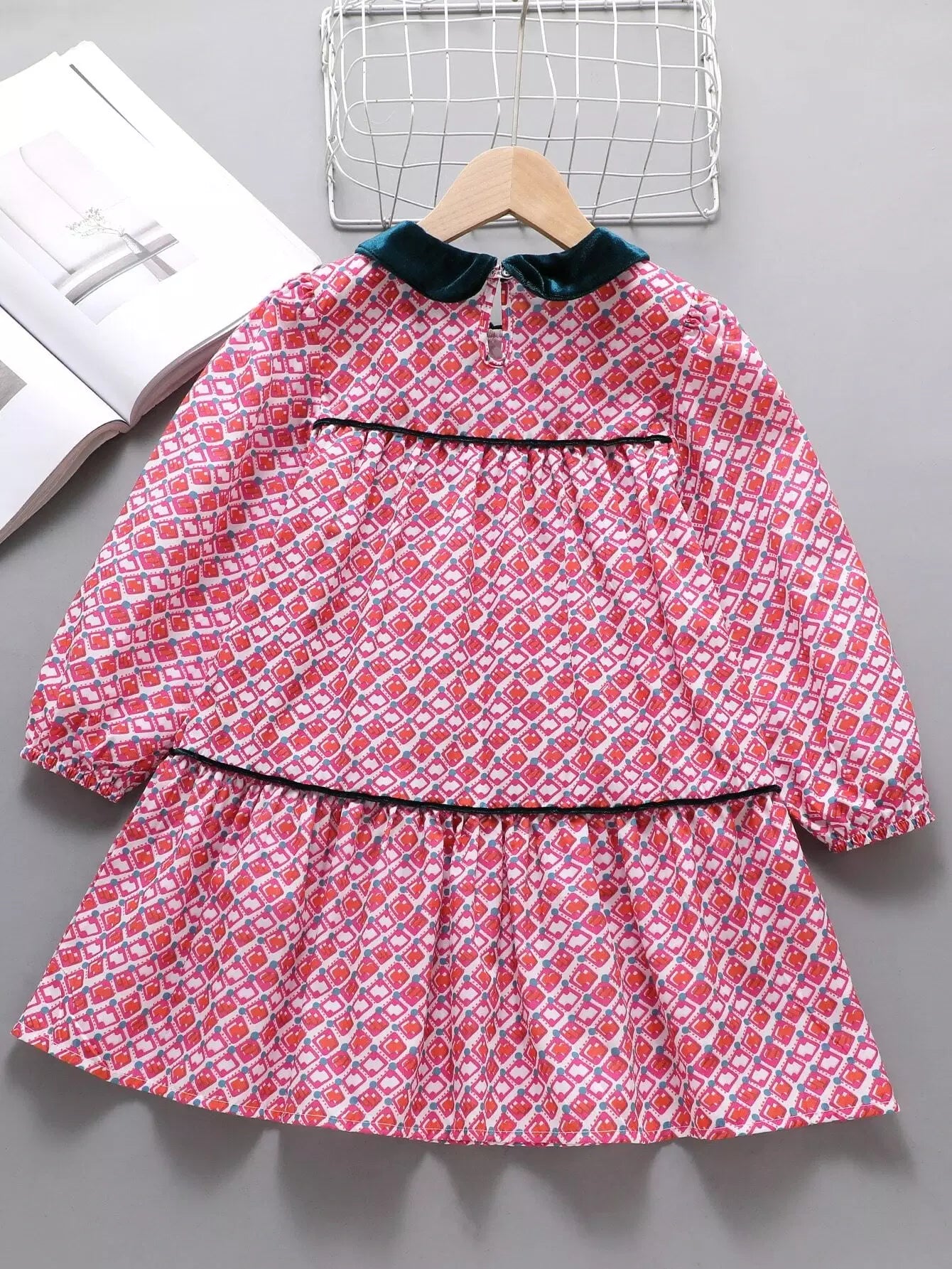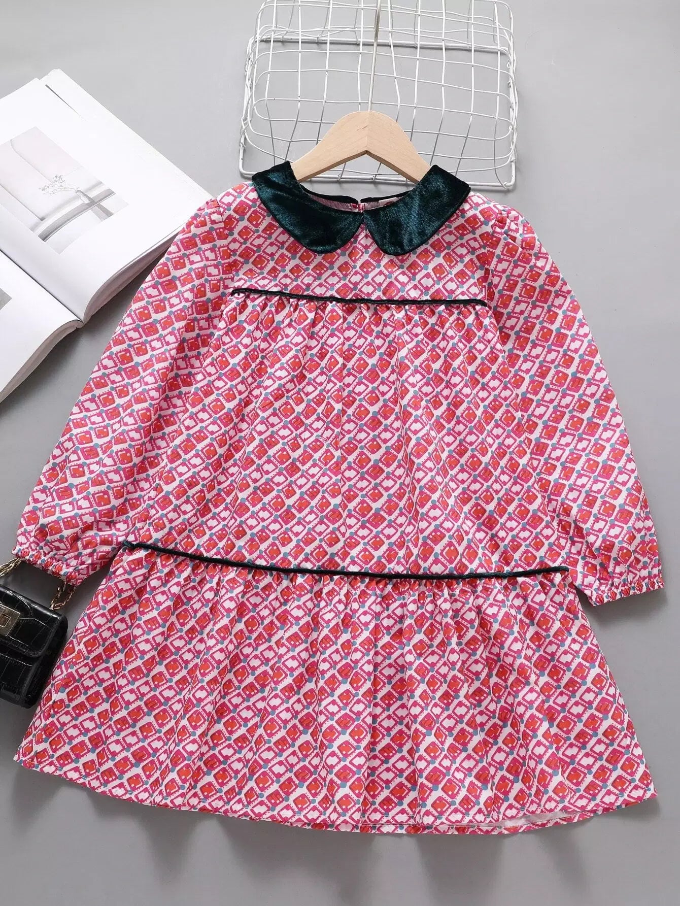 فستان بنات بطبعة جيو بياقة بيتر بان بياقة كشكش للبنات