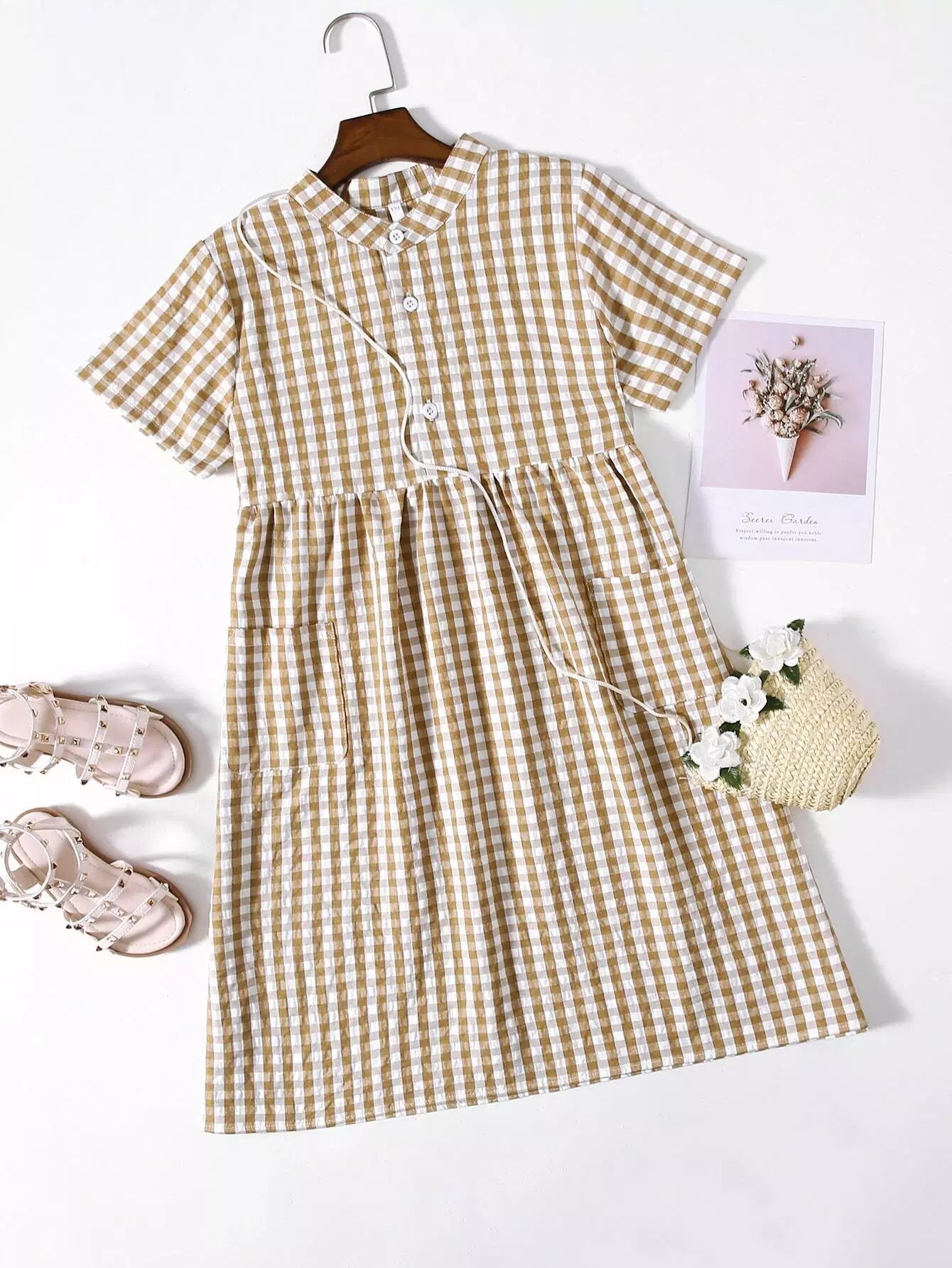 فستان قطني بناتي بنصف زر بدون حقيبة