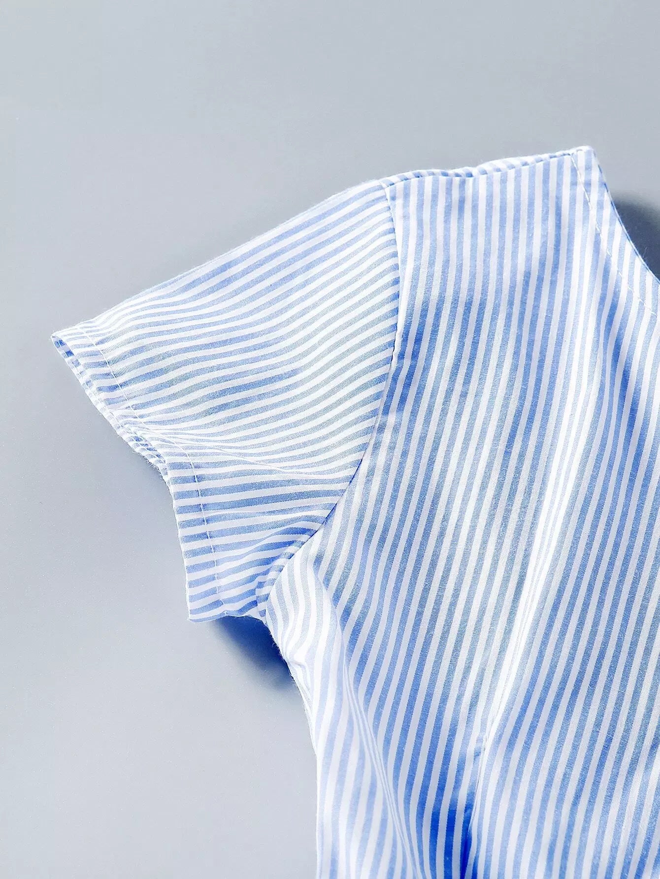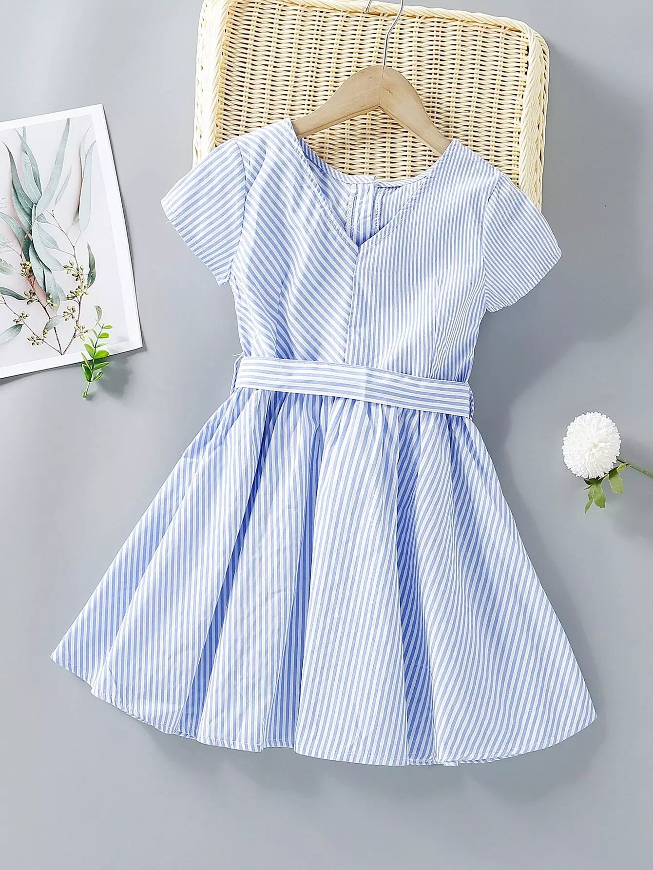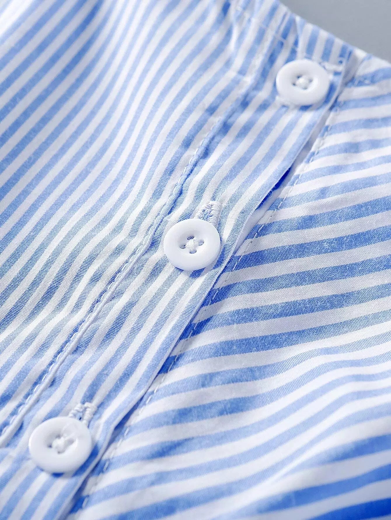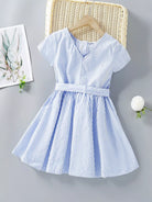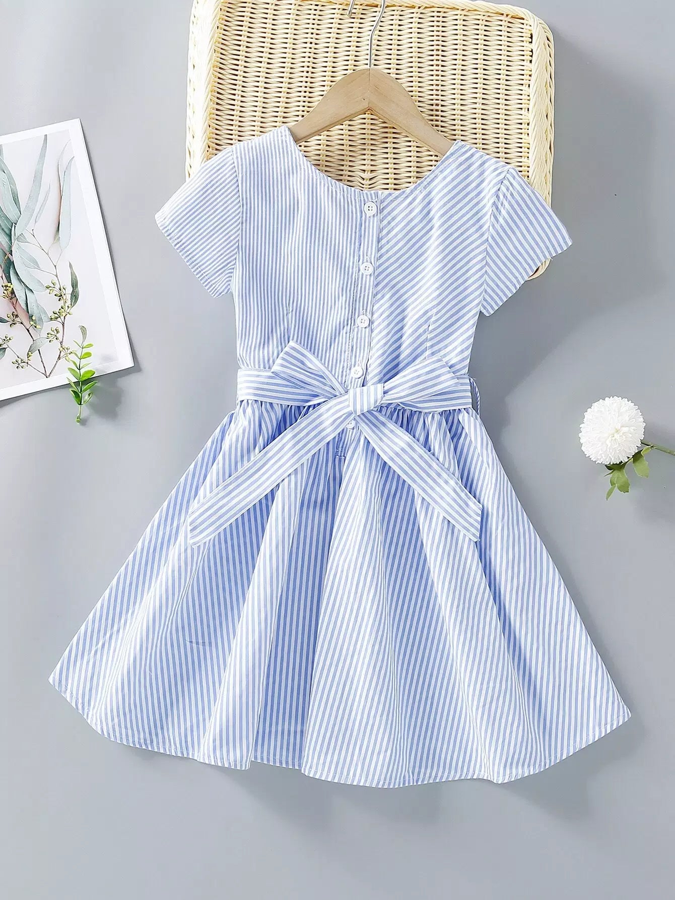فستان بناتي مخطط بنصف أزرار بدون حزام