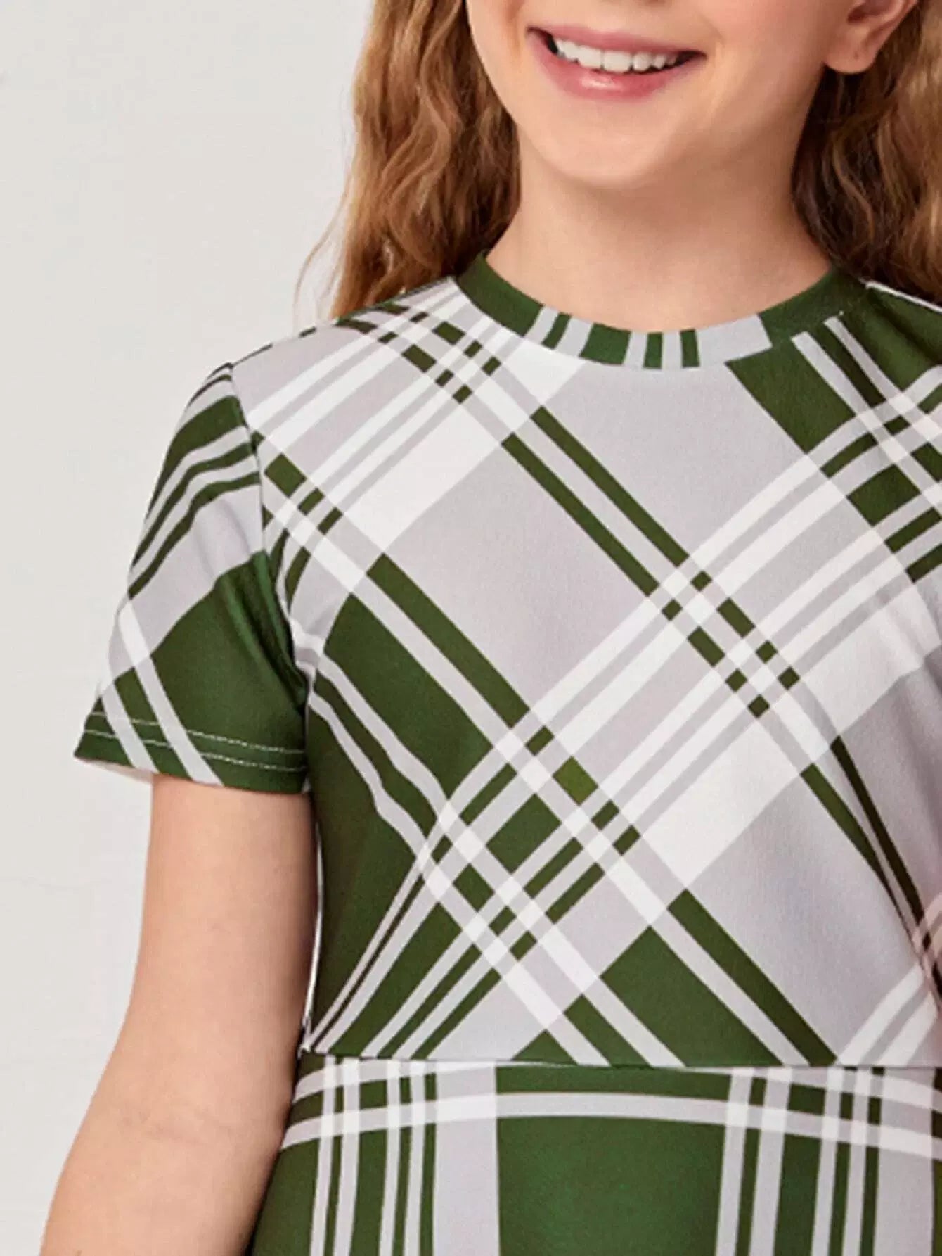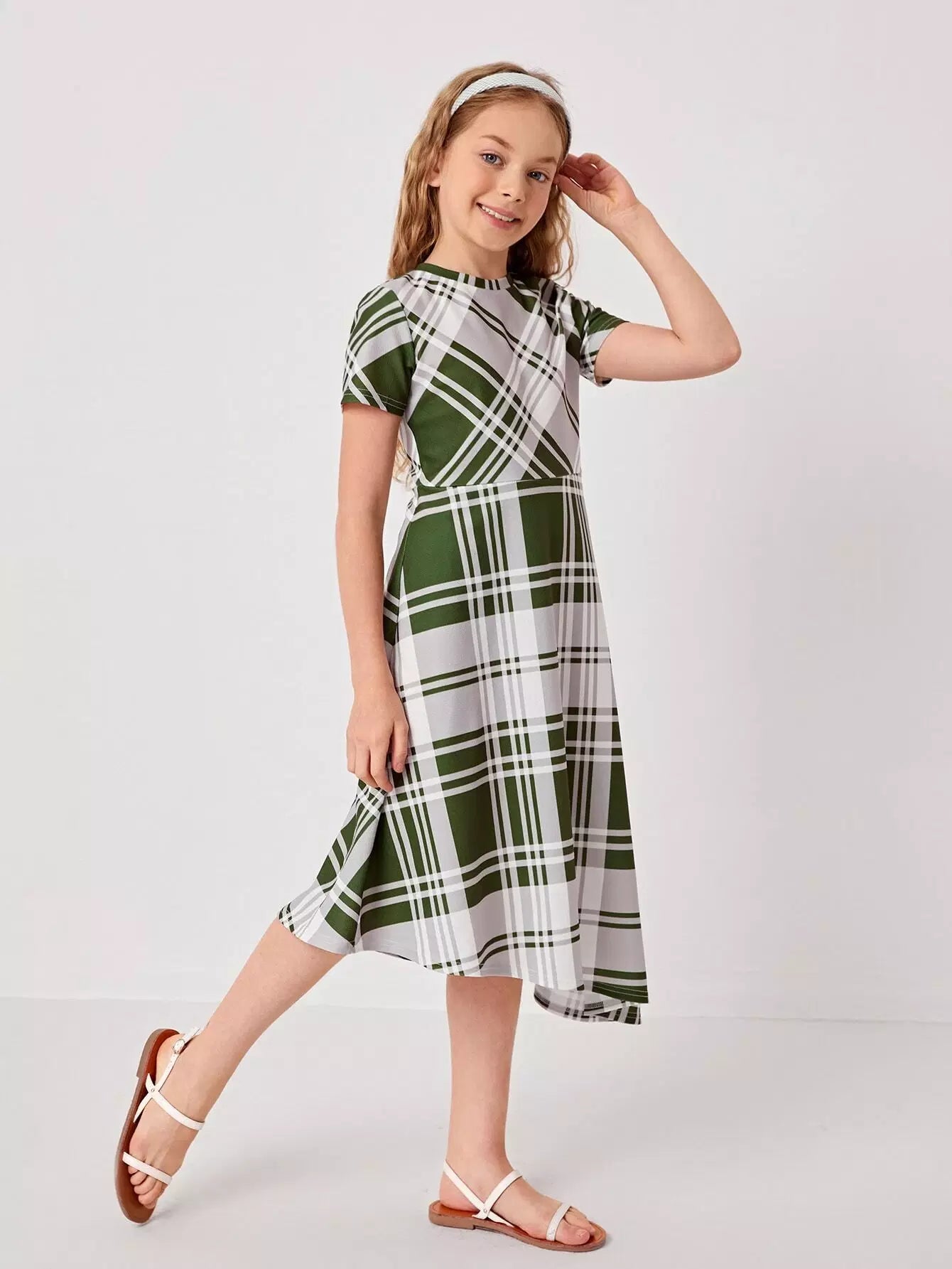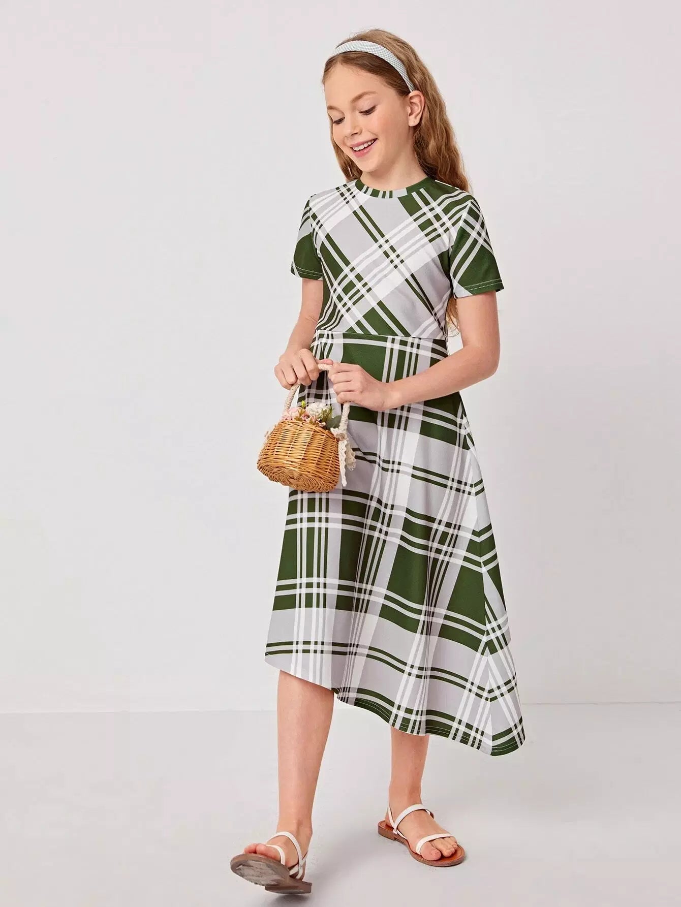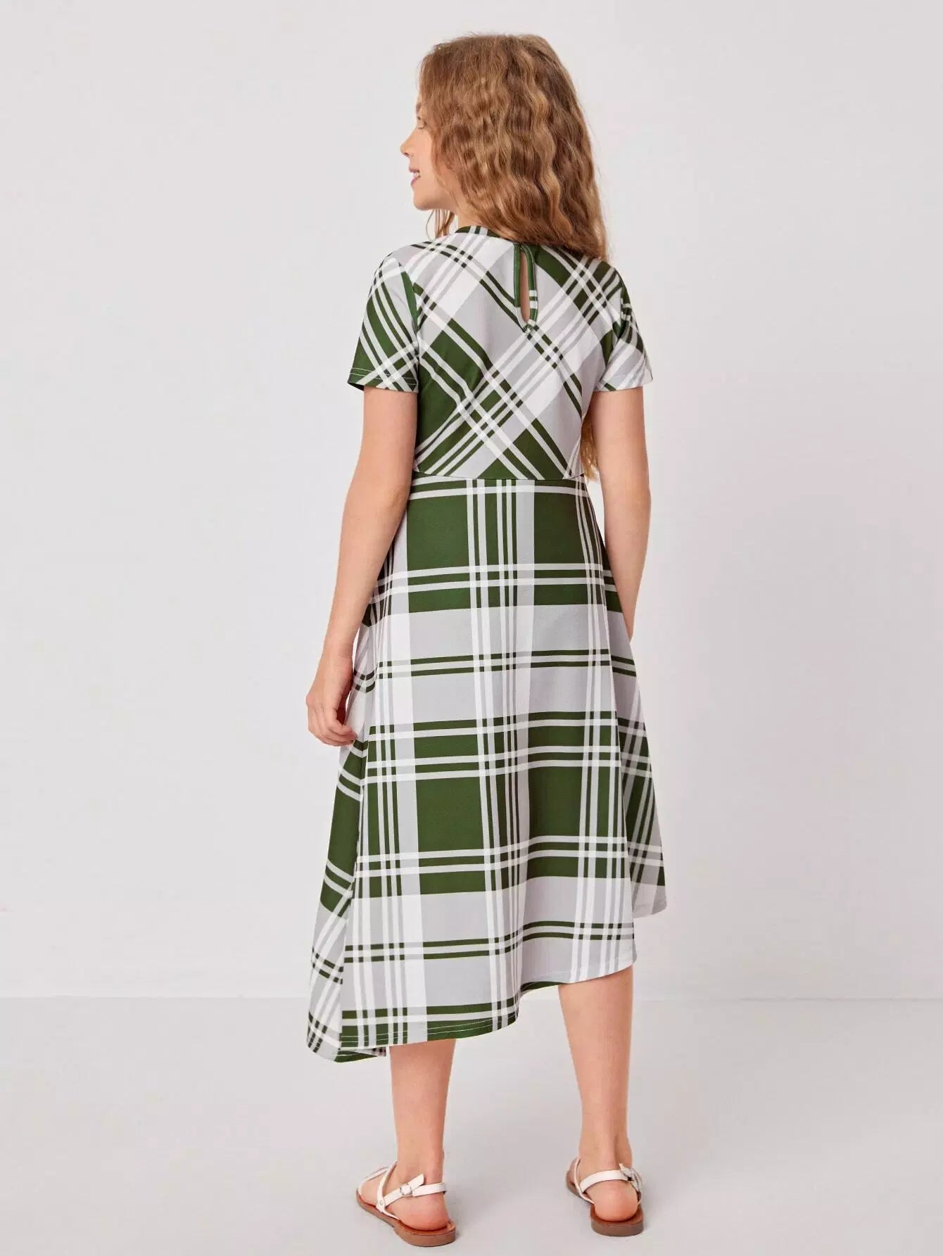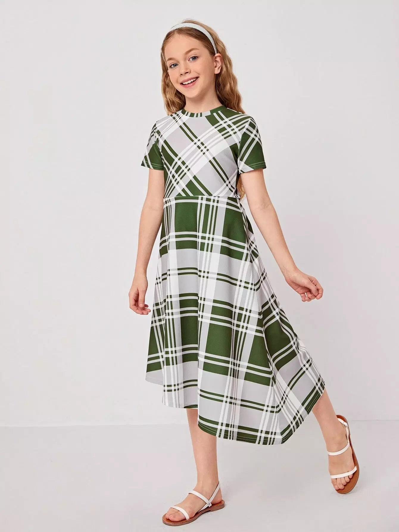 فستان بناتي منقوش بفتحة خلفية وحاشية غير متماثلة