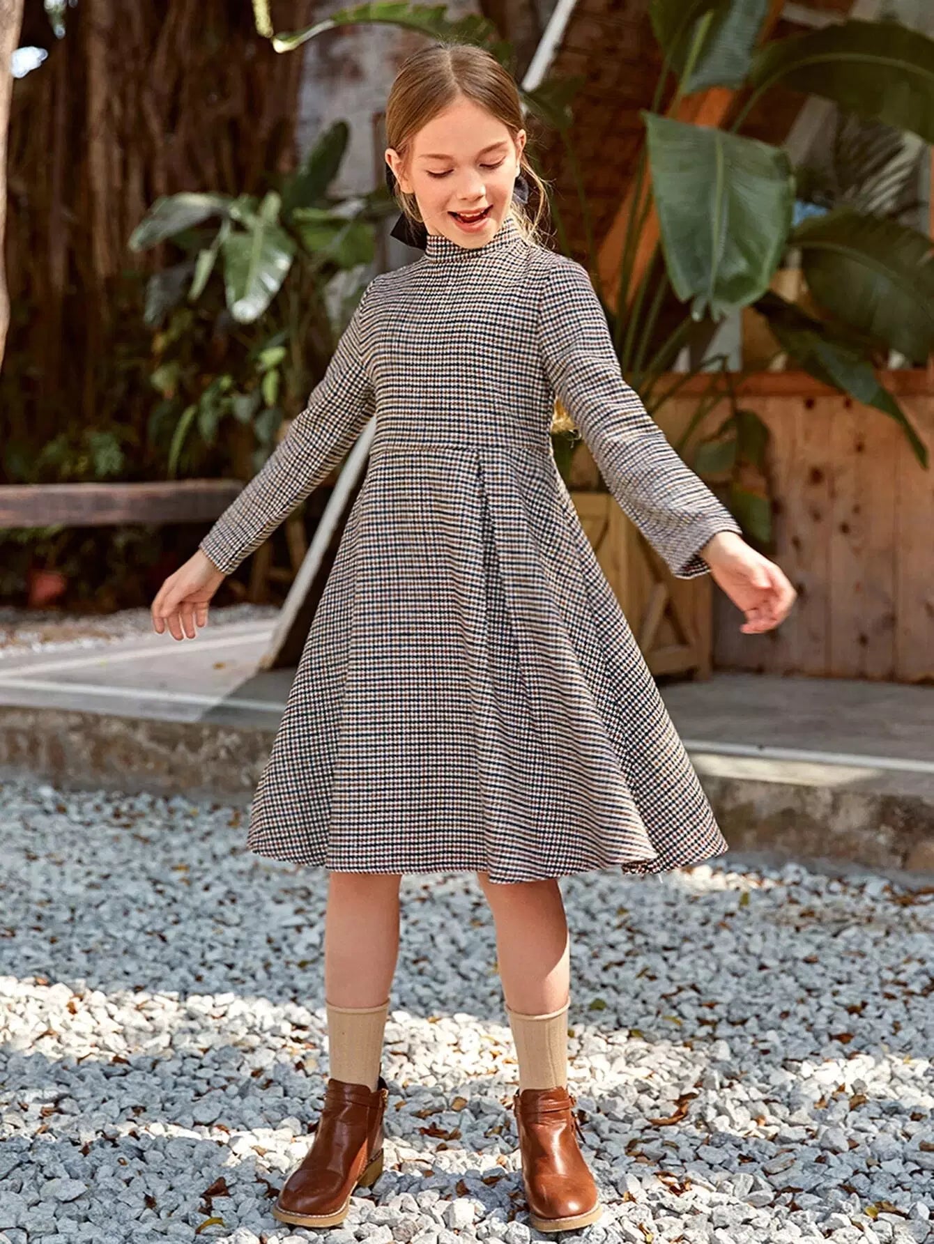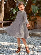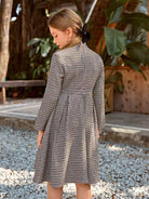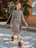 فستان تويد منقوش برقبة منقوشة للبنات بدون حزام