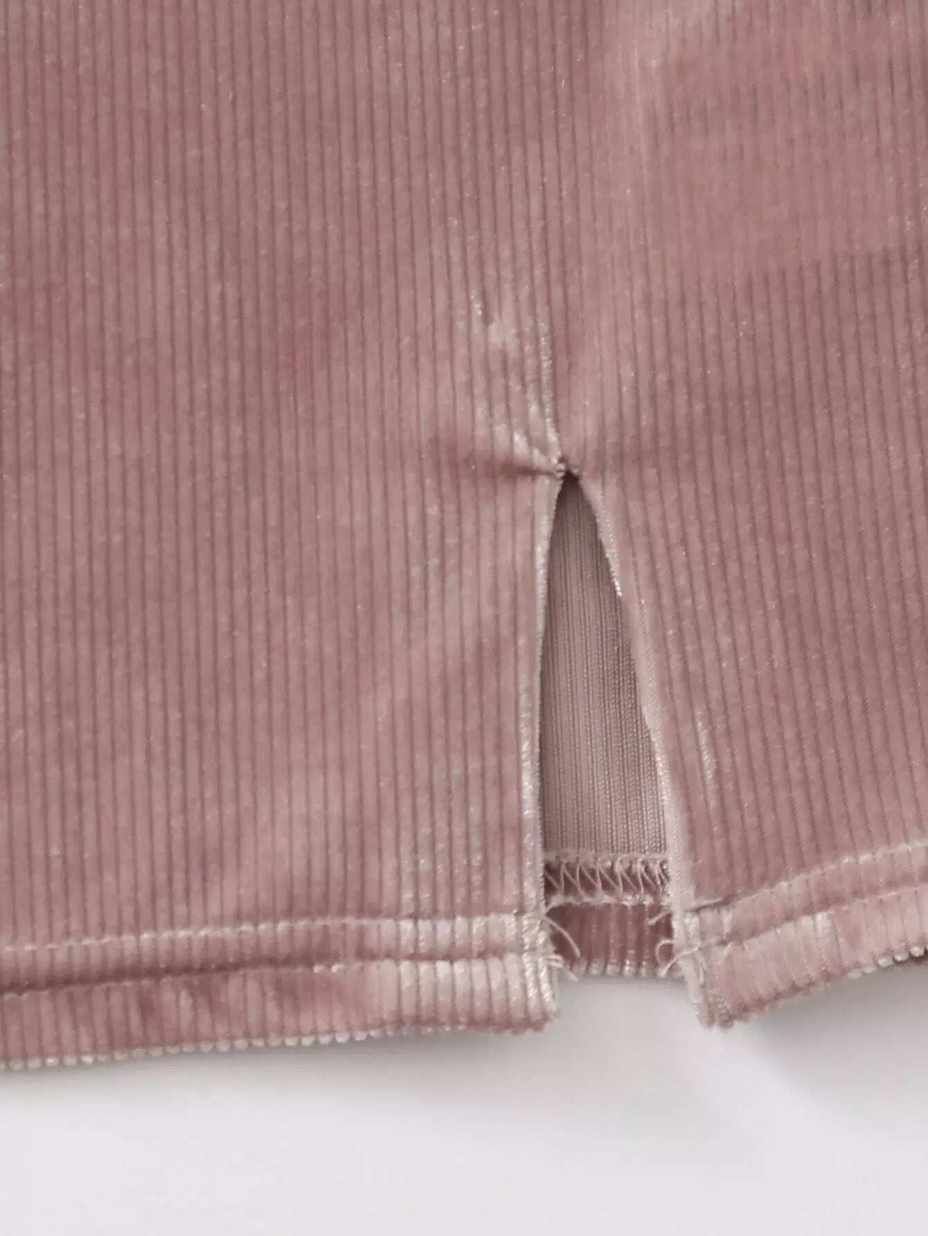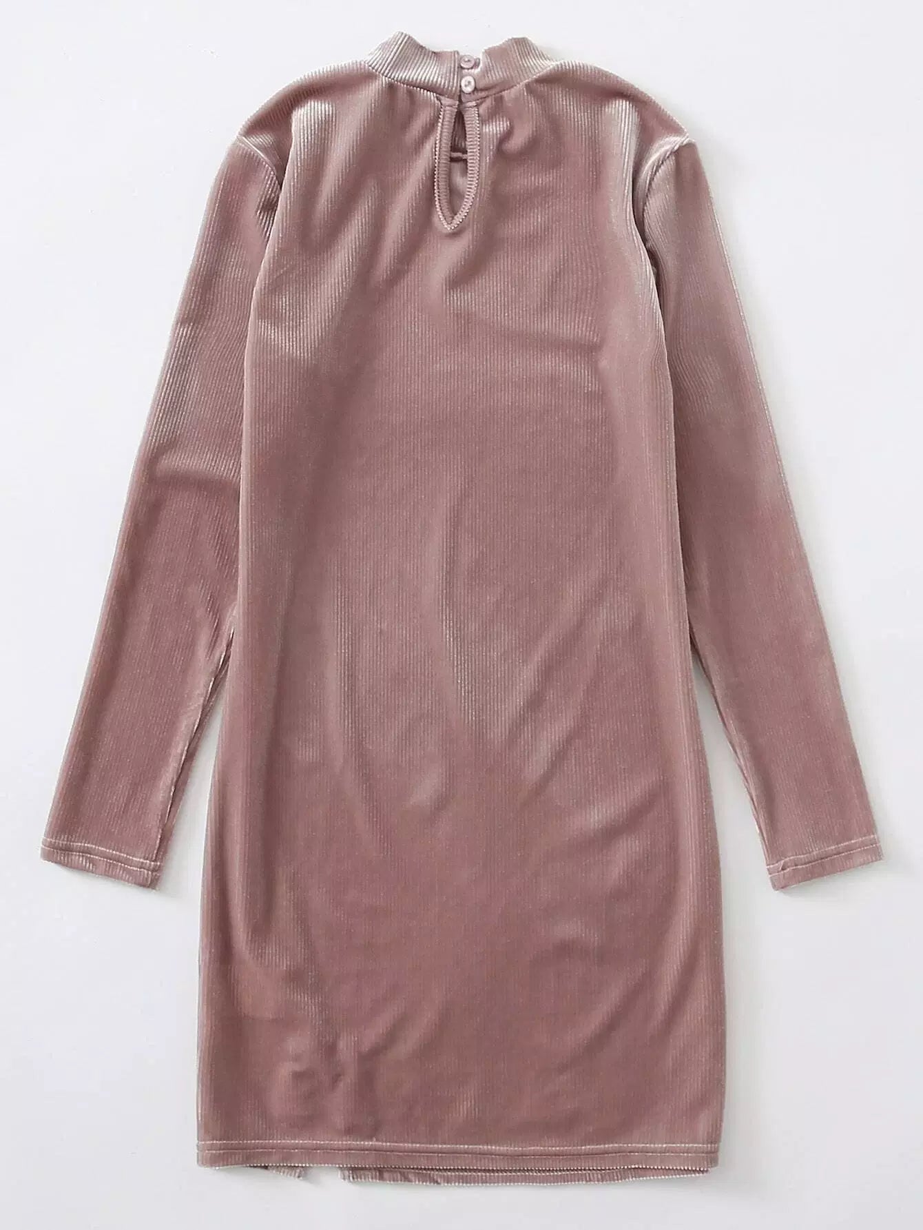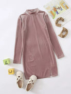 فستان مخملي محبوك بفتحة رقبة عالية للفتيات
