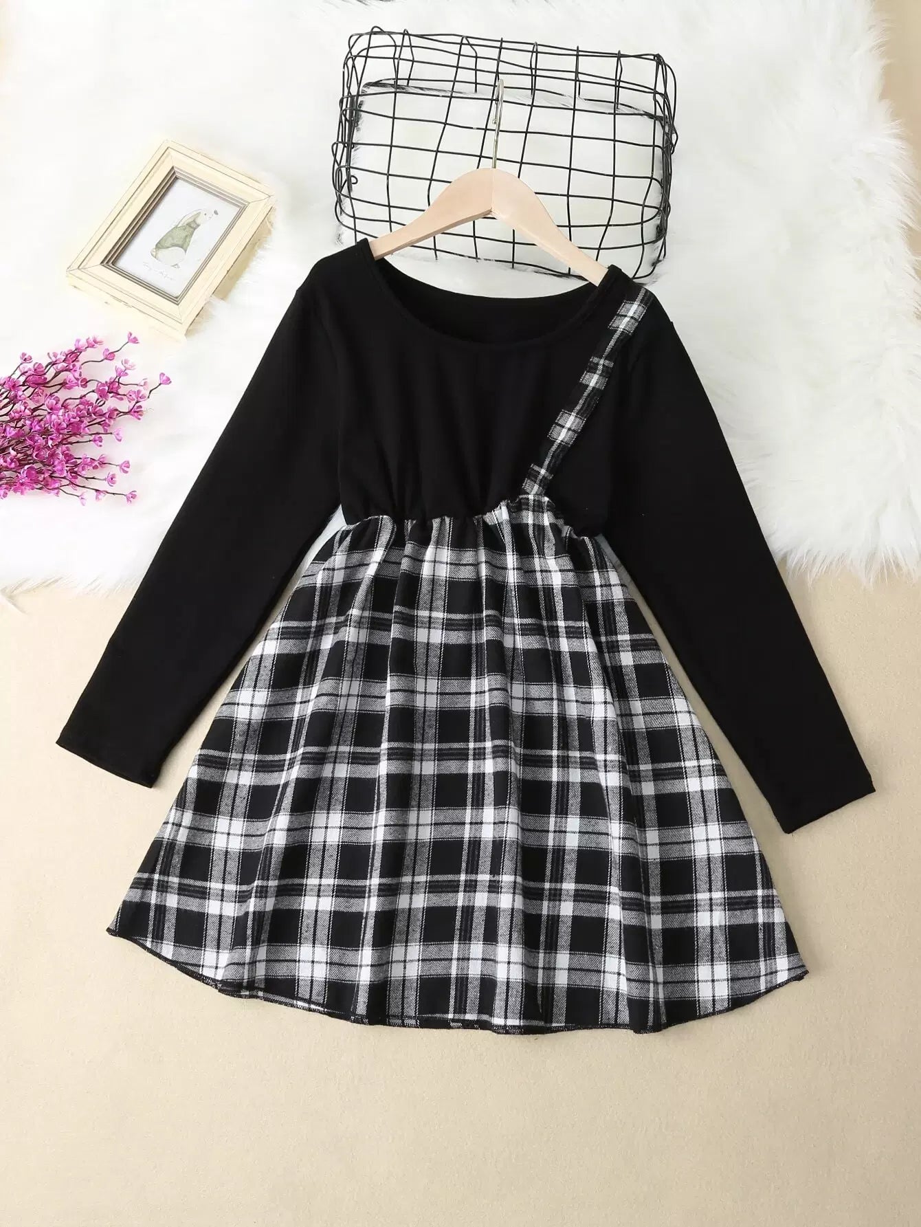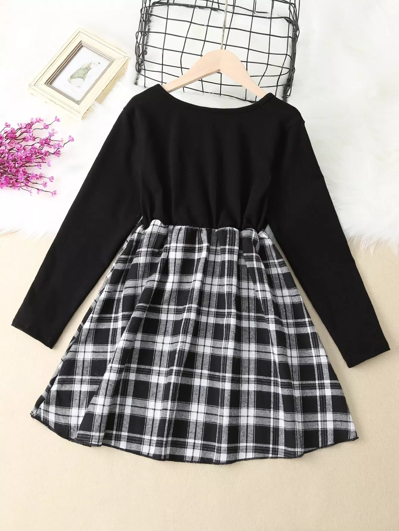فستان بنات منقوش على شكل حرف A منقوش