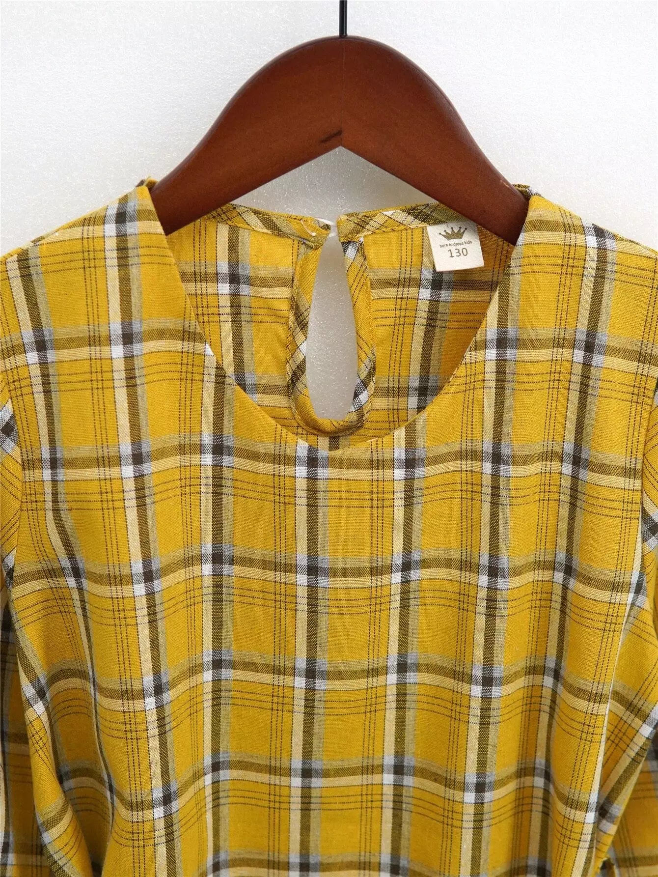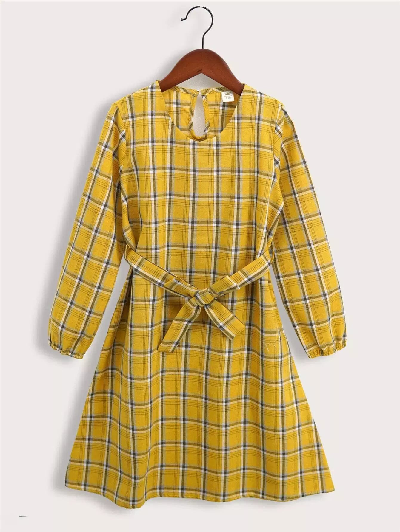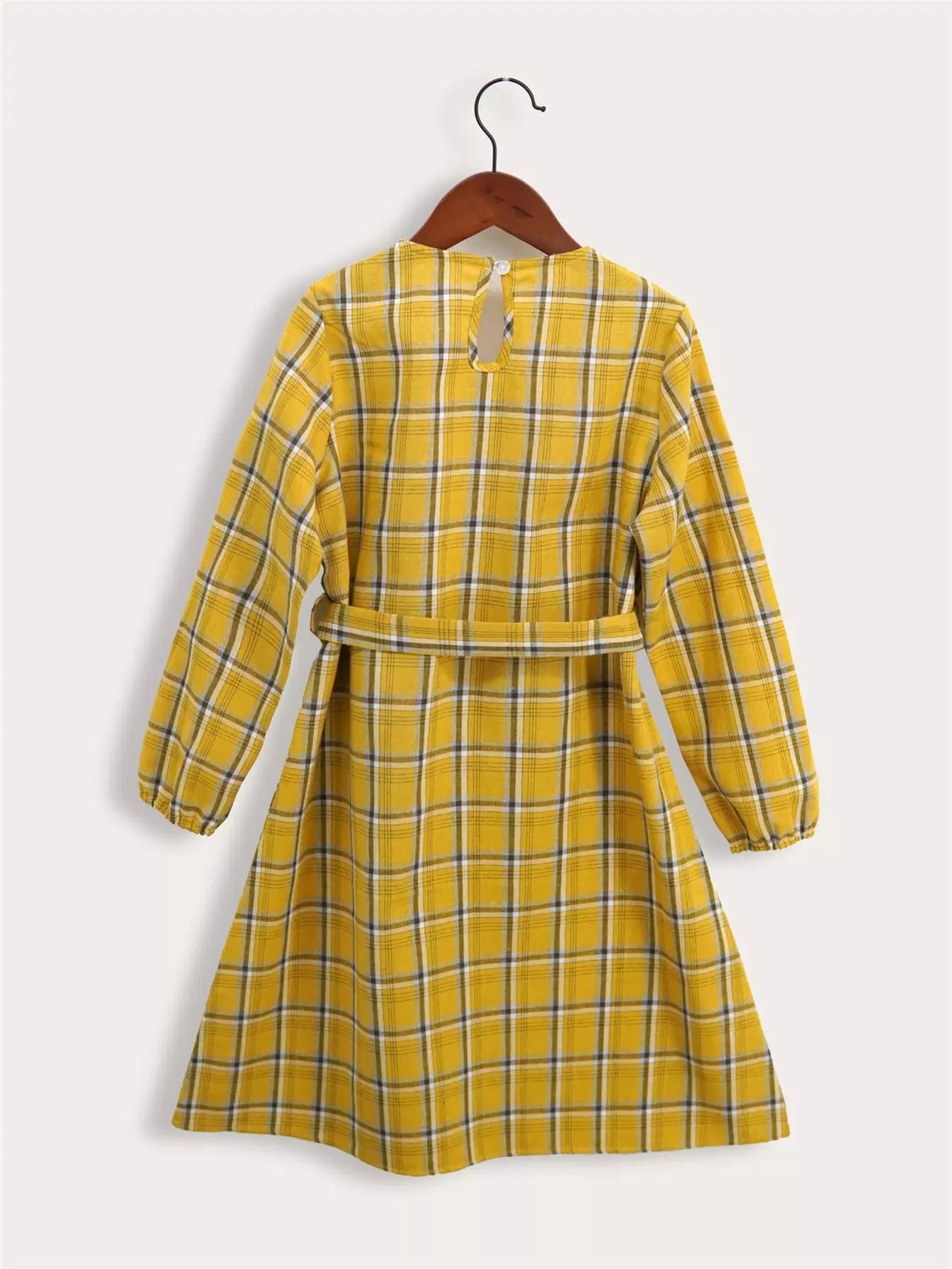 فستان بناتي منقوش بفتحة خلفية وأكمام أسقف بدون حزام