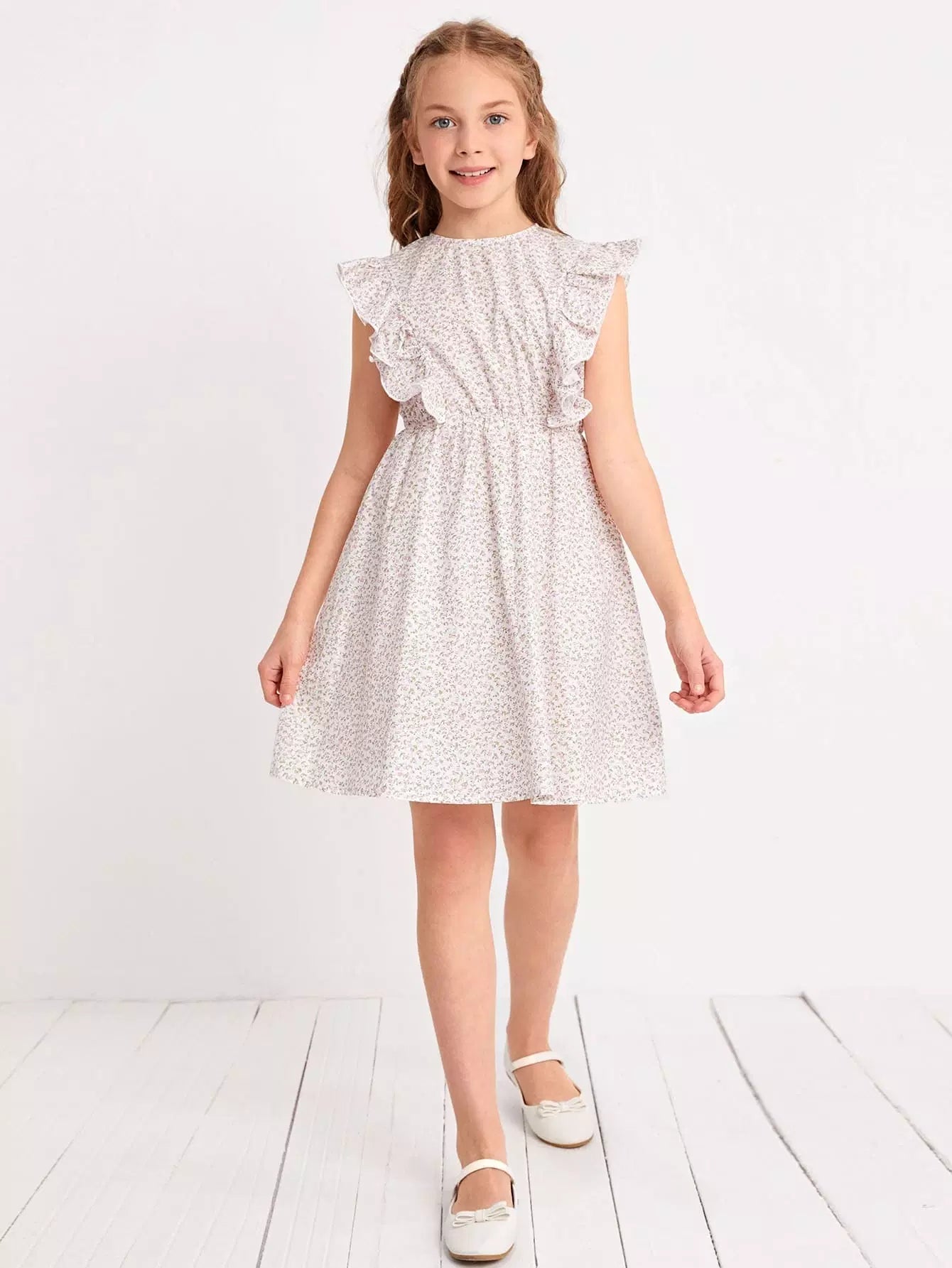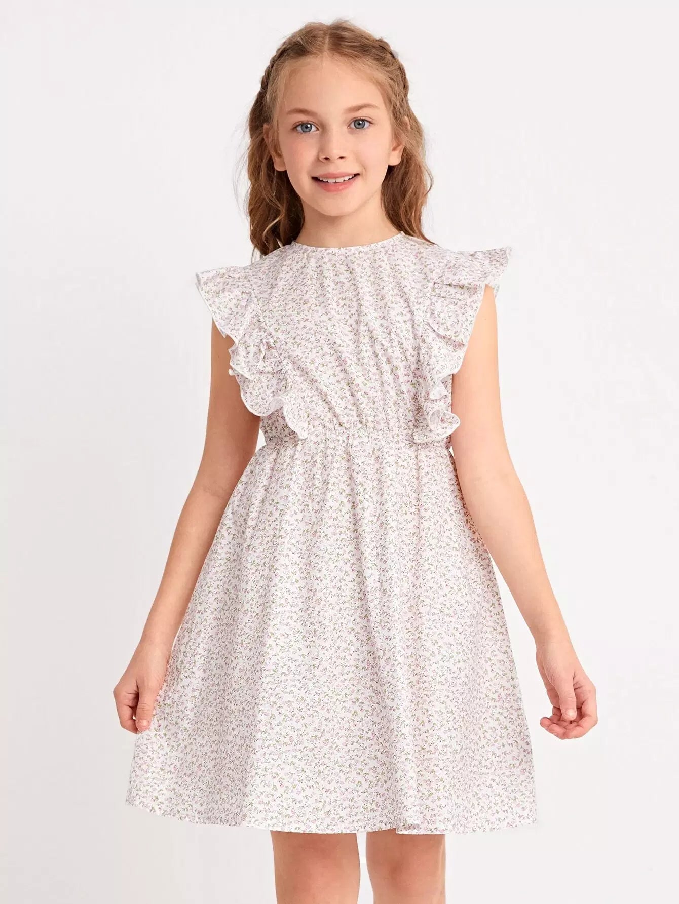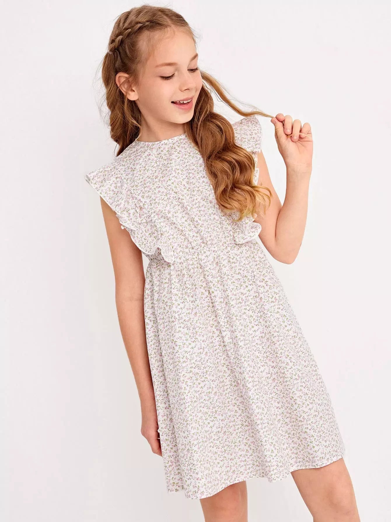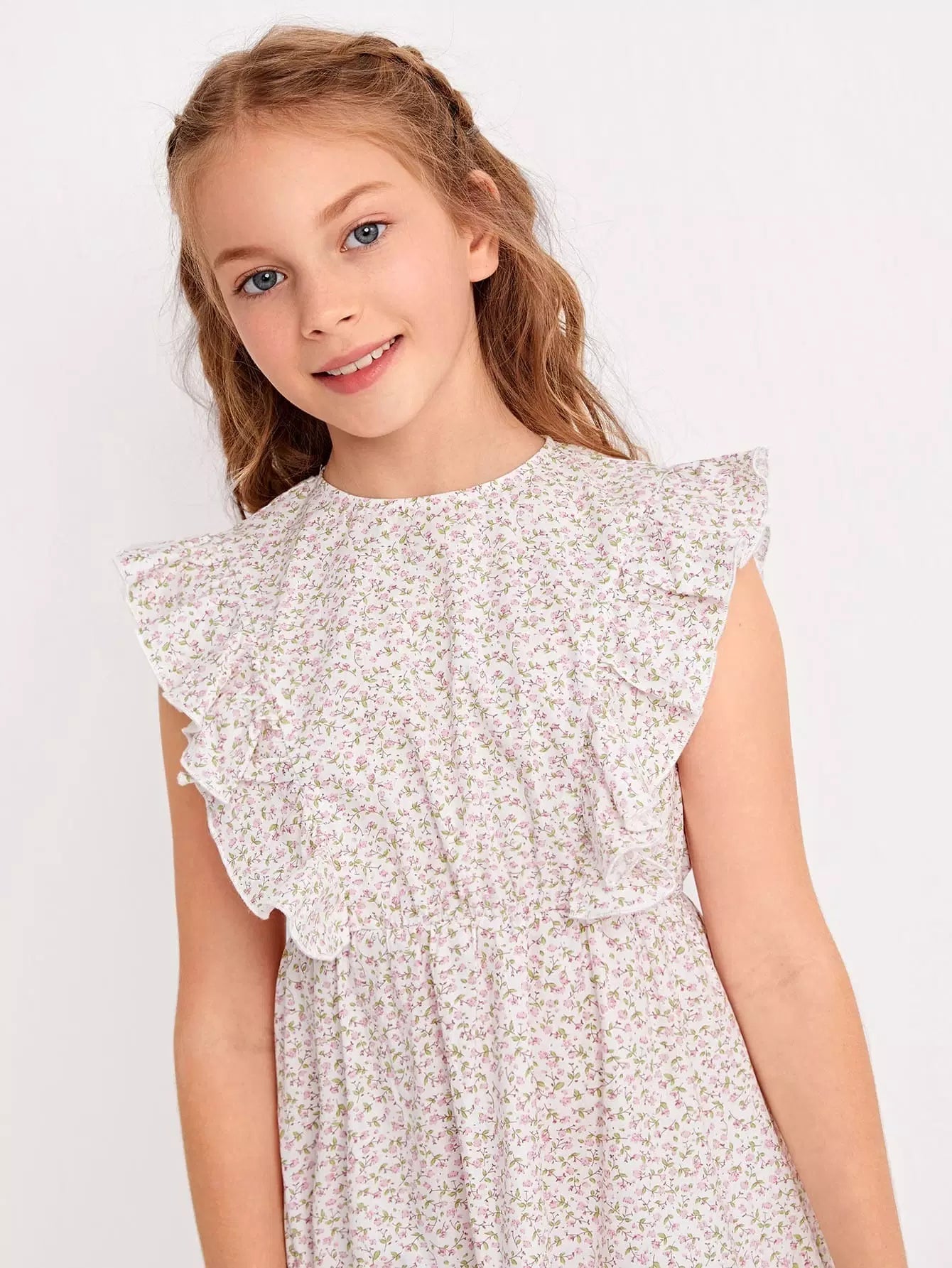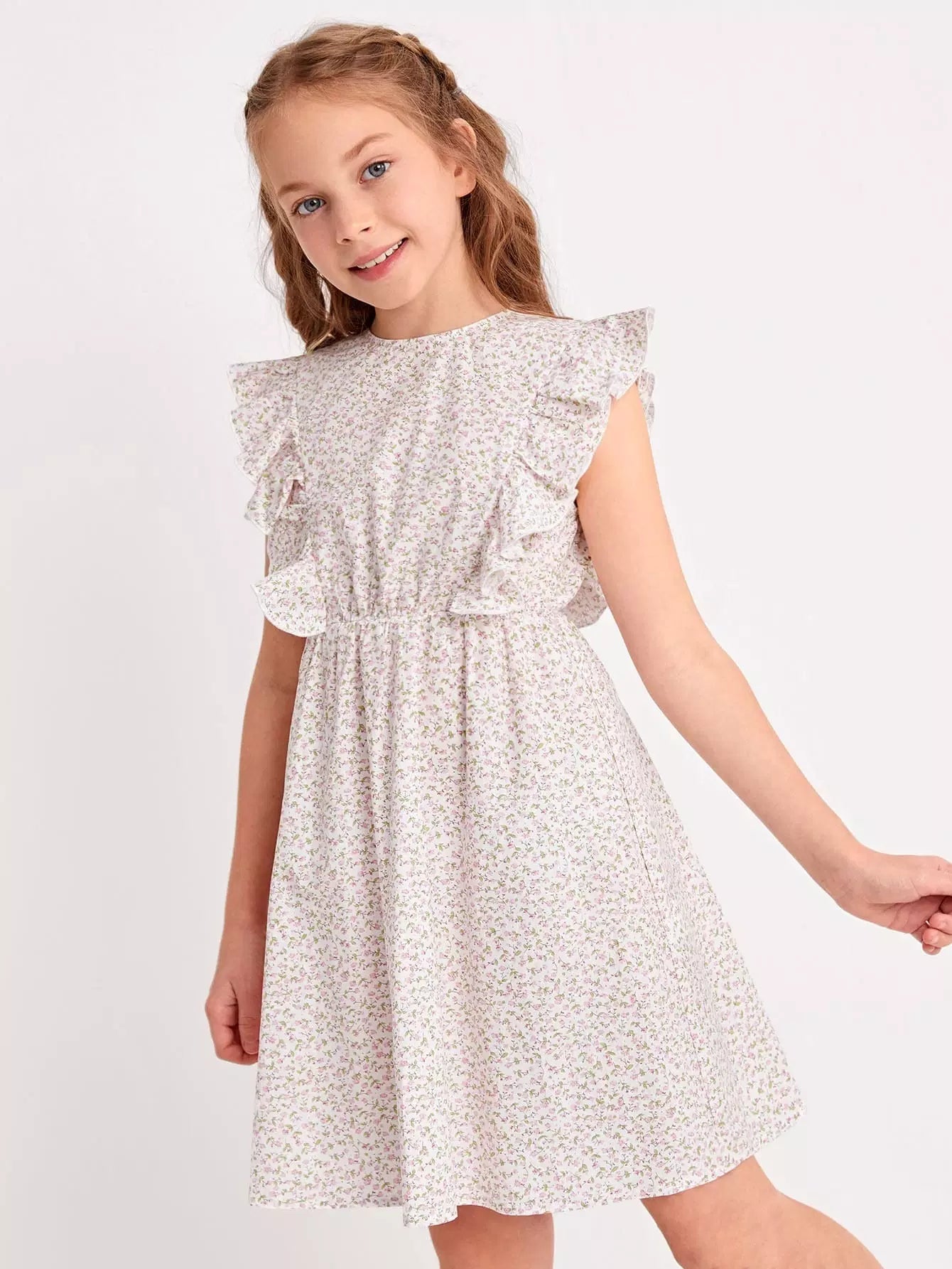 فستان بناتي مزين بنقشة الزهور وفتحة أكمام