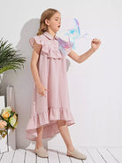 الأطفال - فستان بناتي بحاشية مكشكشة وأزرار أمامية عالية ومنخفضة
