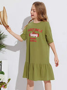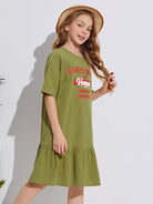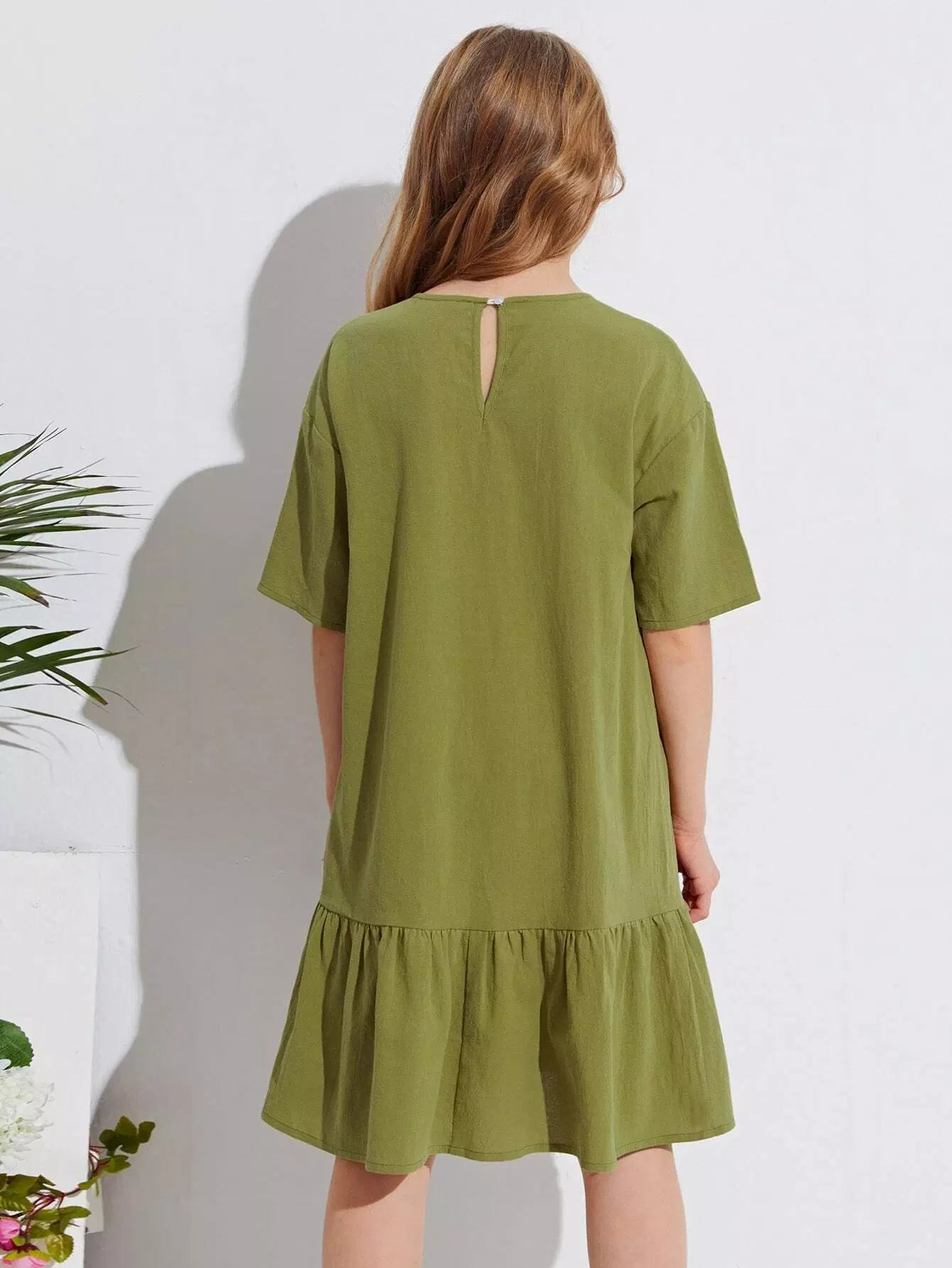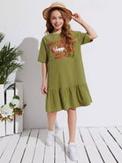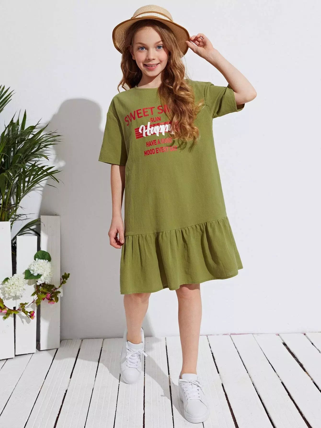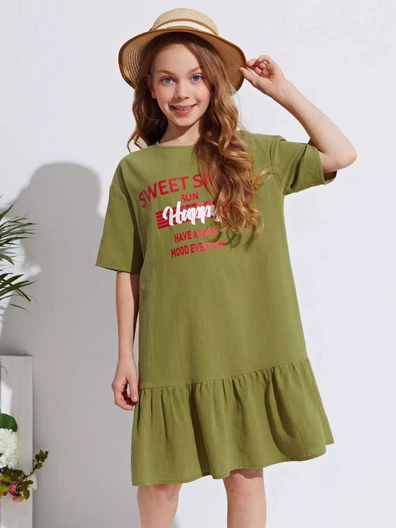 فستان كشكش بحافة كشكش جرافيك للبنات