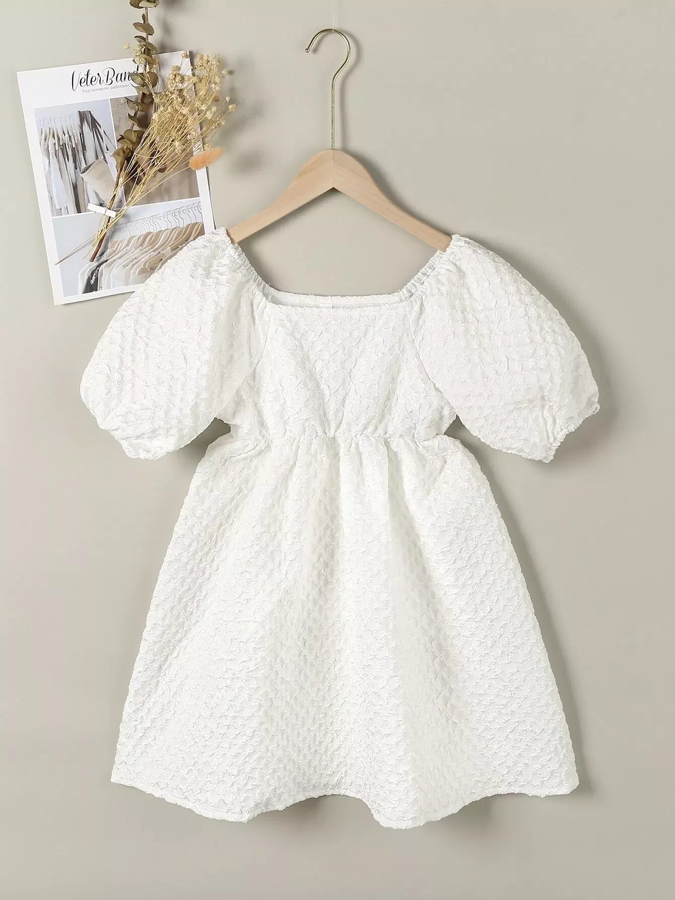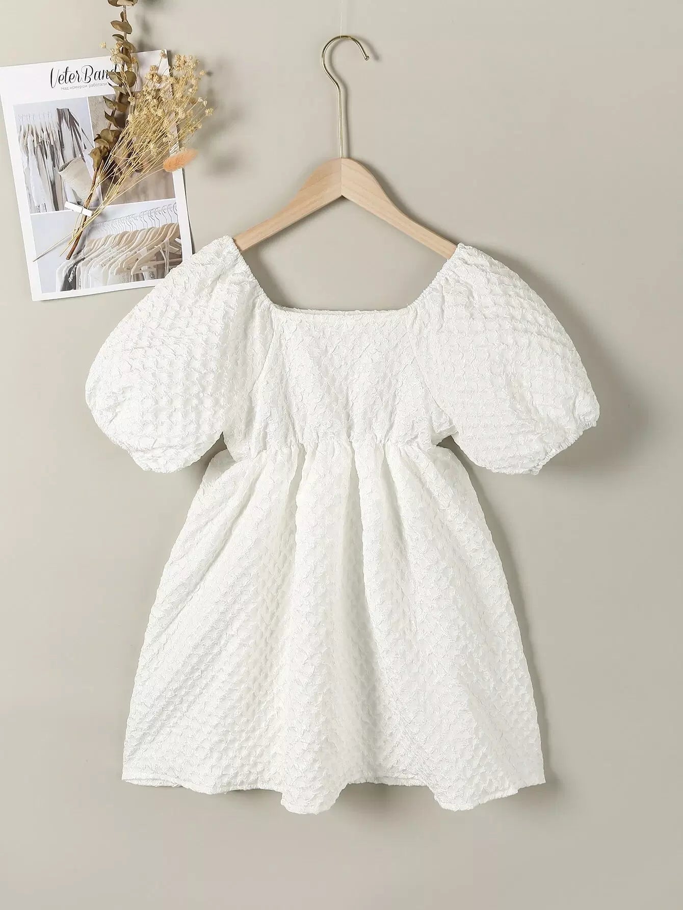 الأطفال - فستان على شكل حرف A بأكمام منتفخة للفتيات