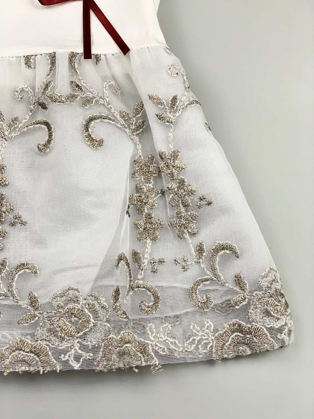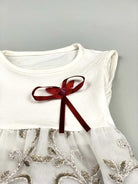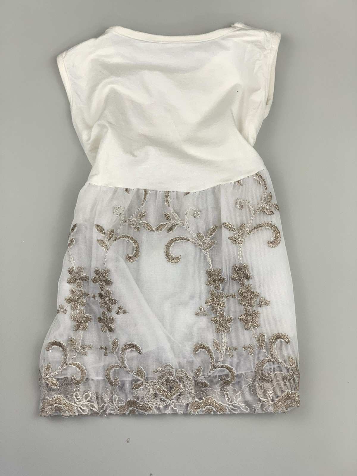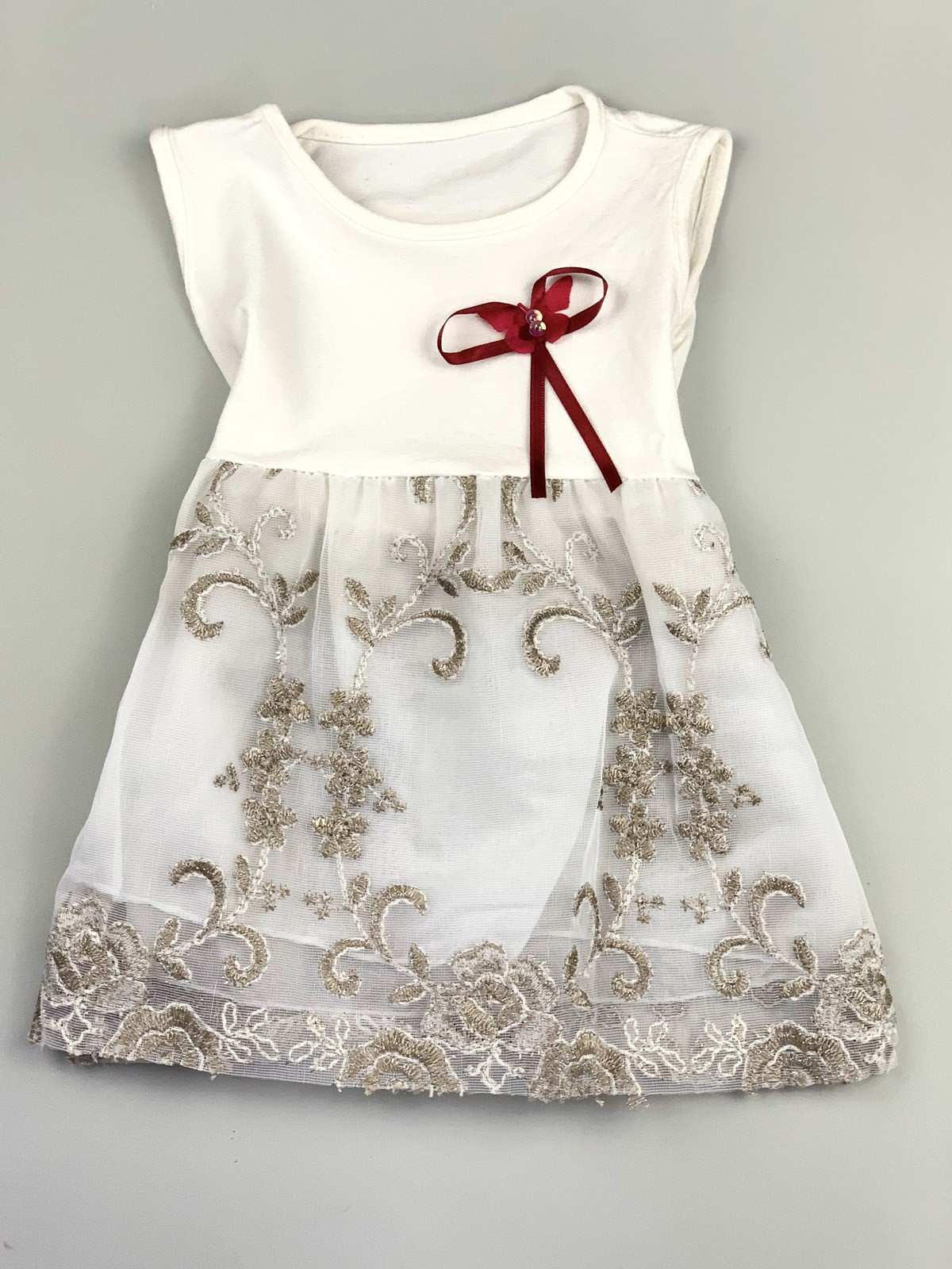 فستان بناتي باللون الأبيض والذهبي