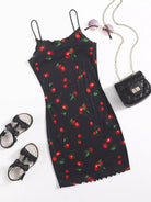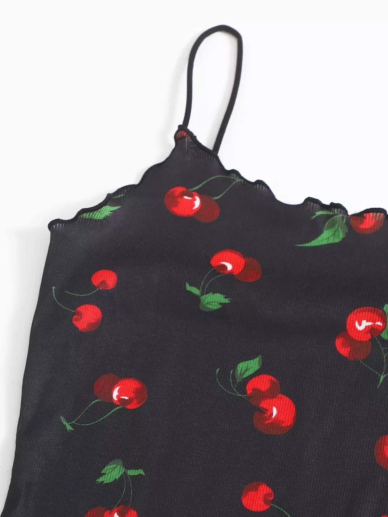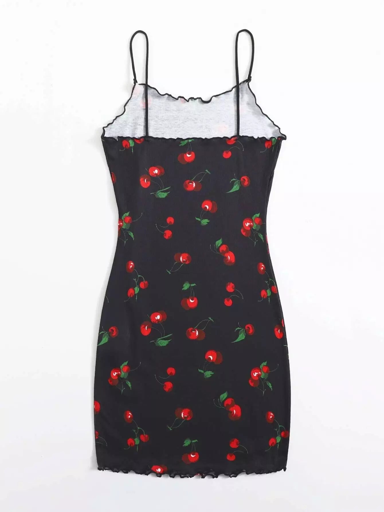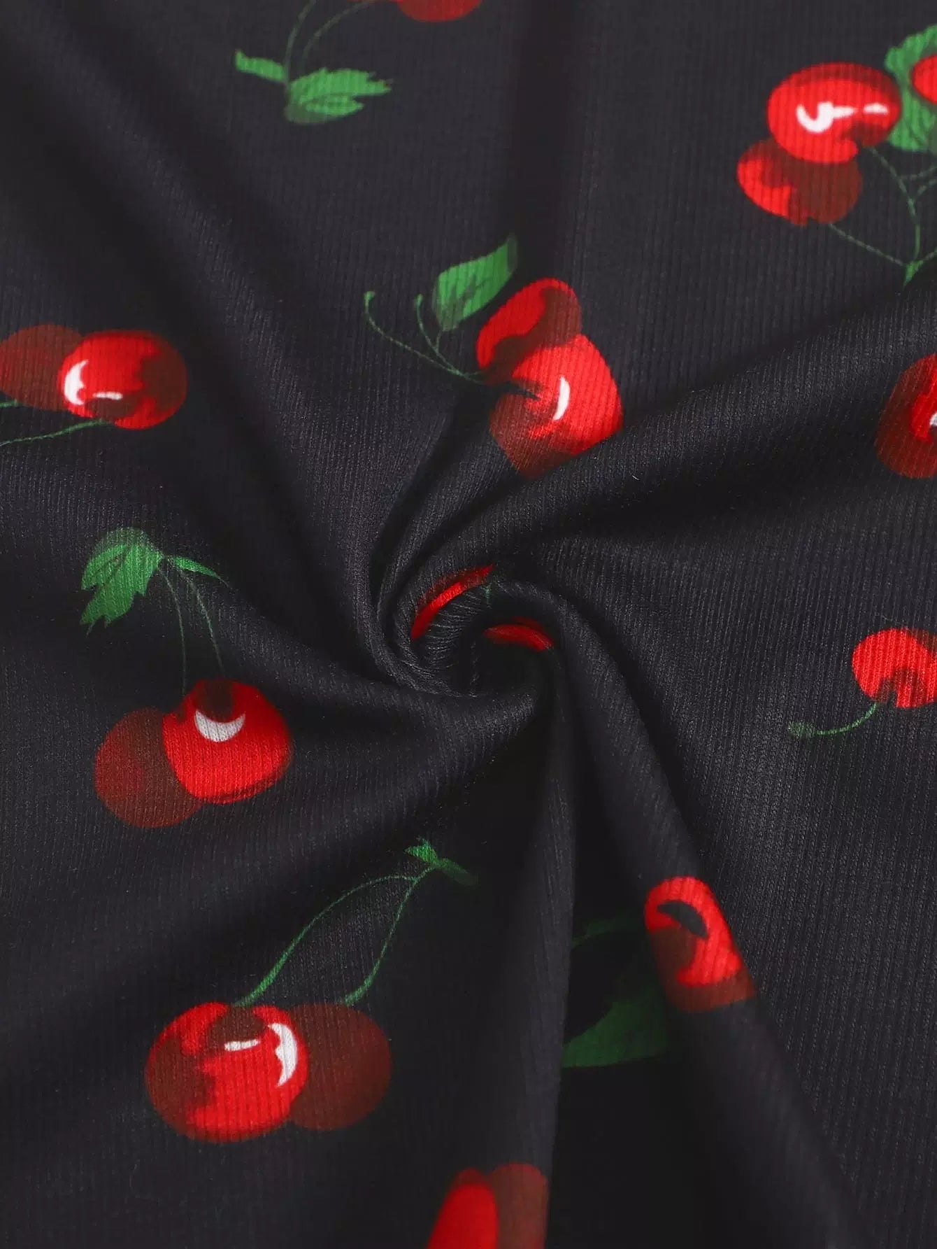 فستان بناتي مراهقات بطبعة الكرز مع حواف الخس