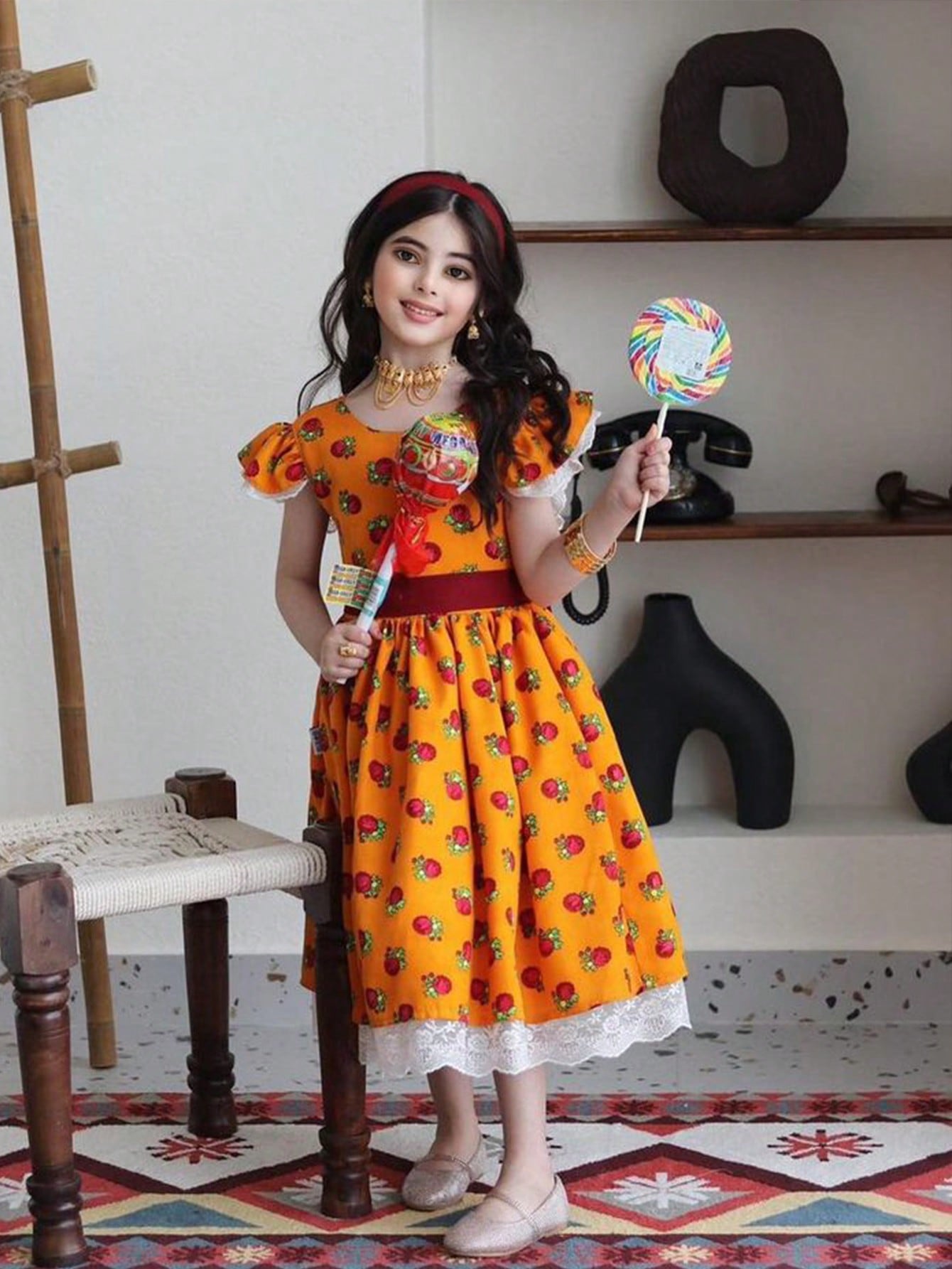 فستان مطبوع عليه زهور وطنية بأكمام قصيرة مناسب للعطلات العائلية ومناسب لشهر رمضان للفتيات المراهقات