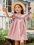 فستان قصير مطرز بالزهور ومزين بكشكشة للفتيات الصغيرات