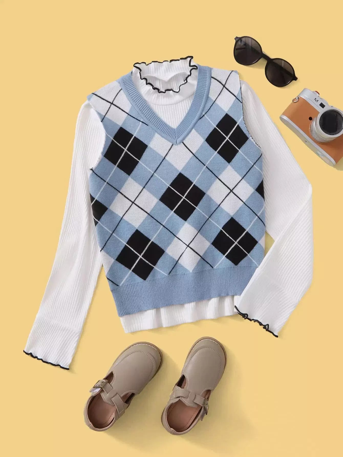 سترة برقبة على شكل حرف V برقبة على شكل أرجيل للبنات بدون سترة