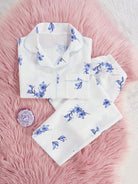 Girl Pajamas Set - Soft & Comfortable Chiffon Long Sleeve Top & Pants, Blue Floral Print & Pockets, Suitable