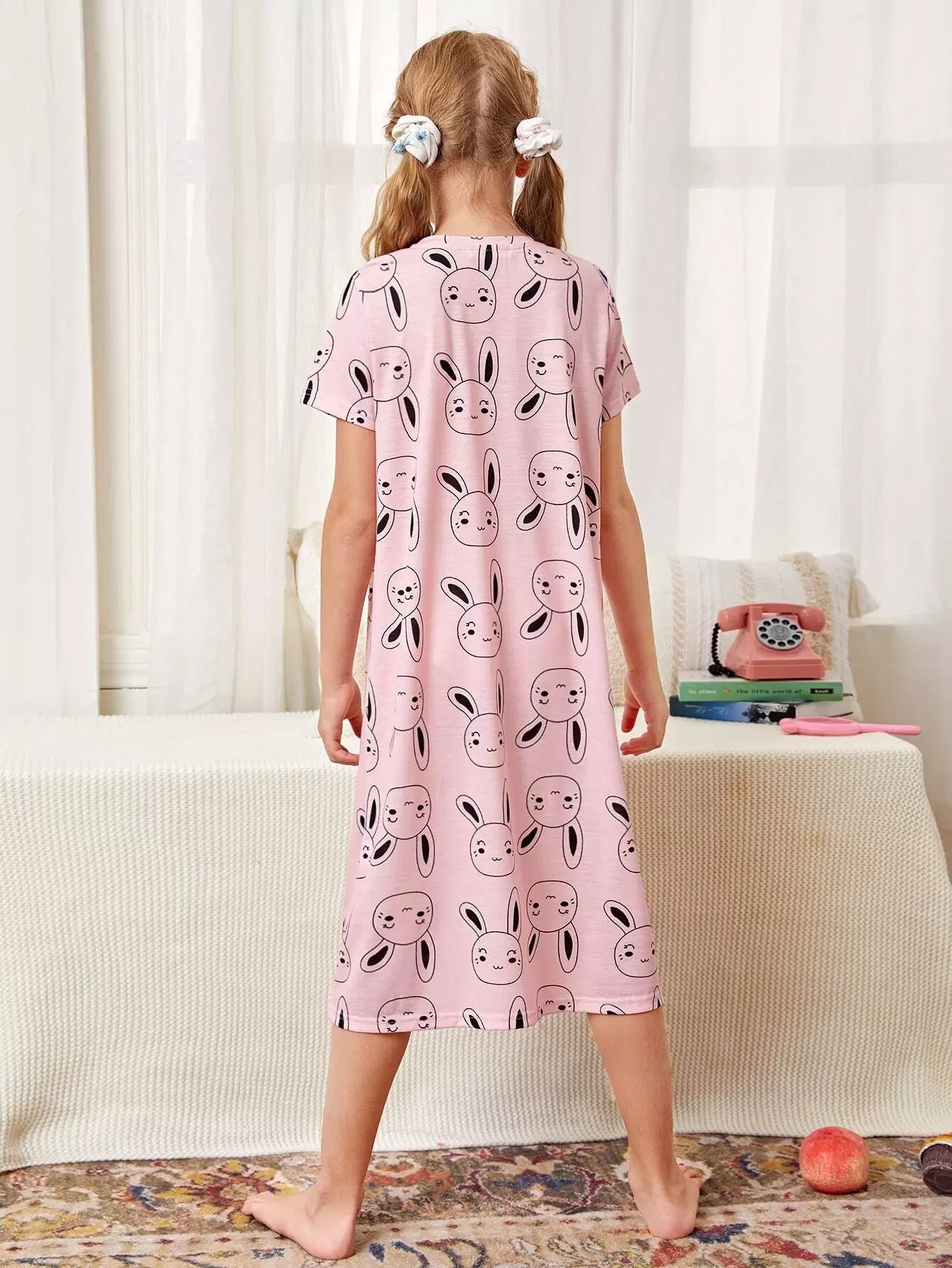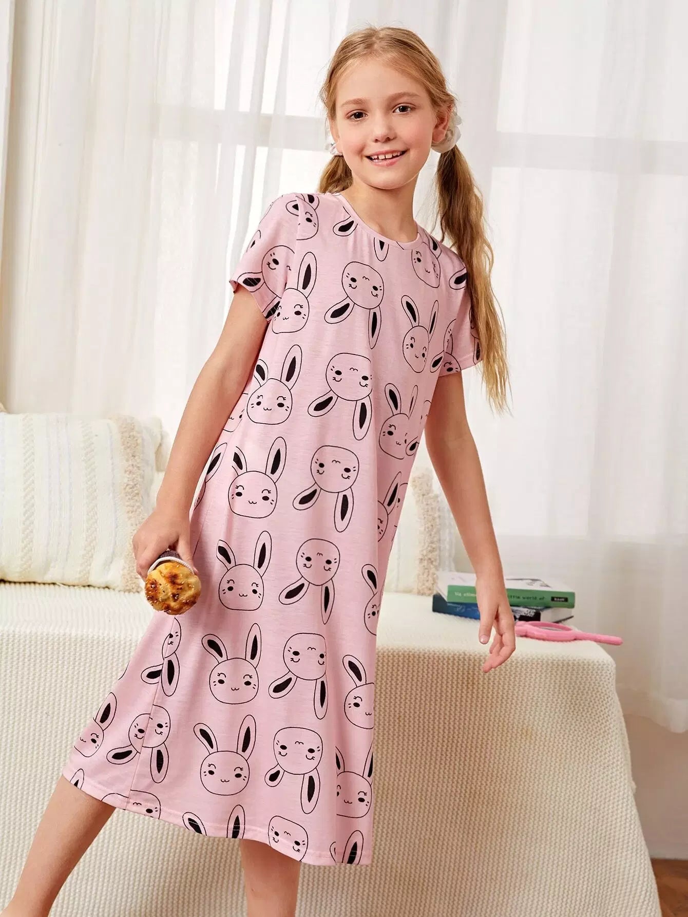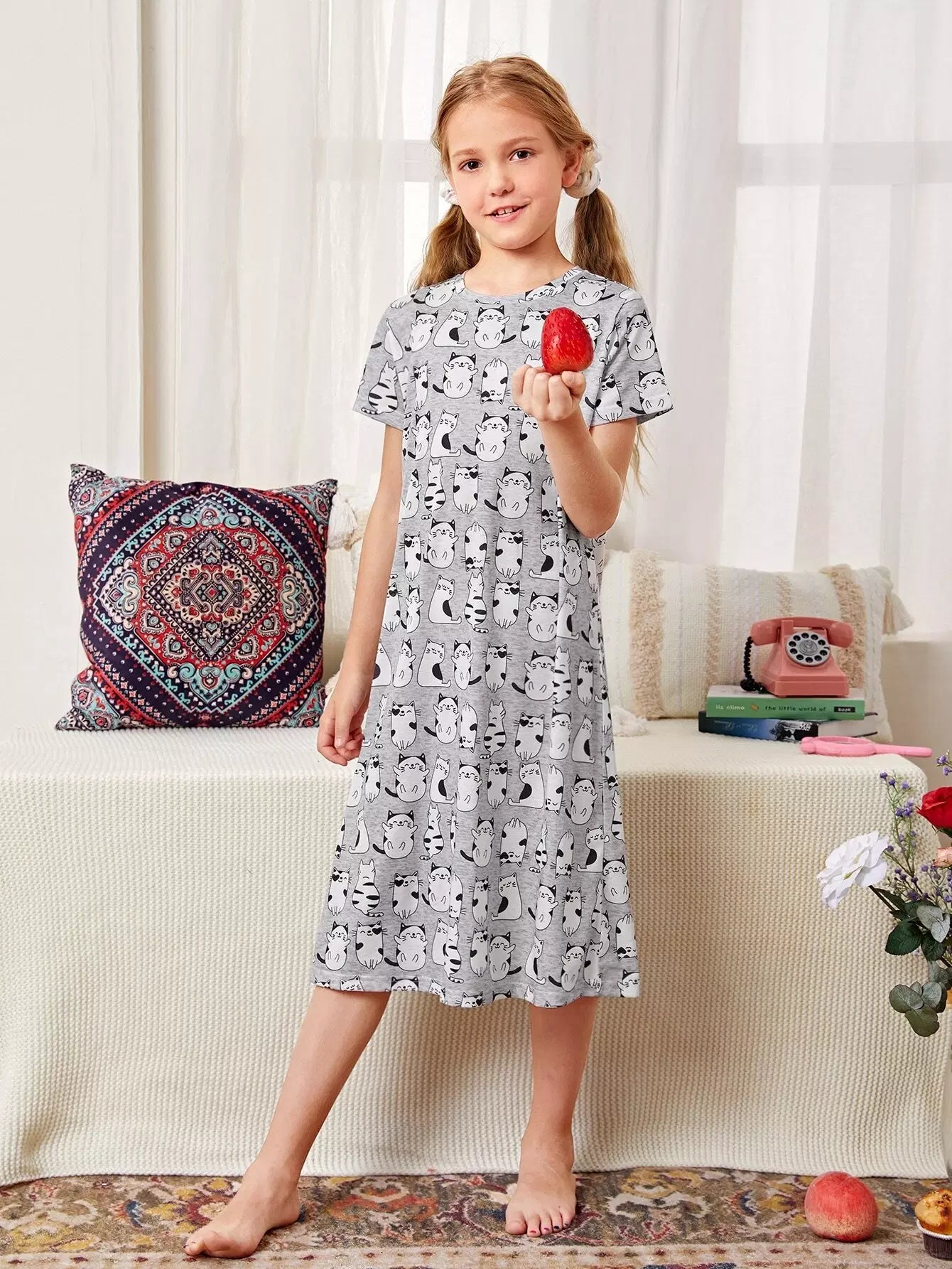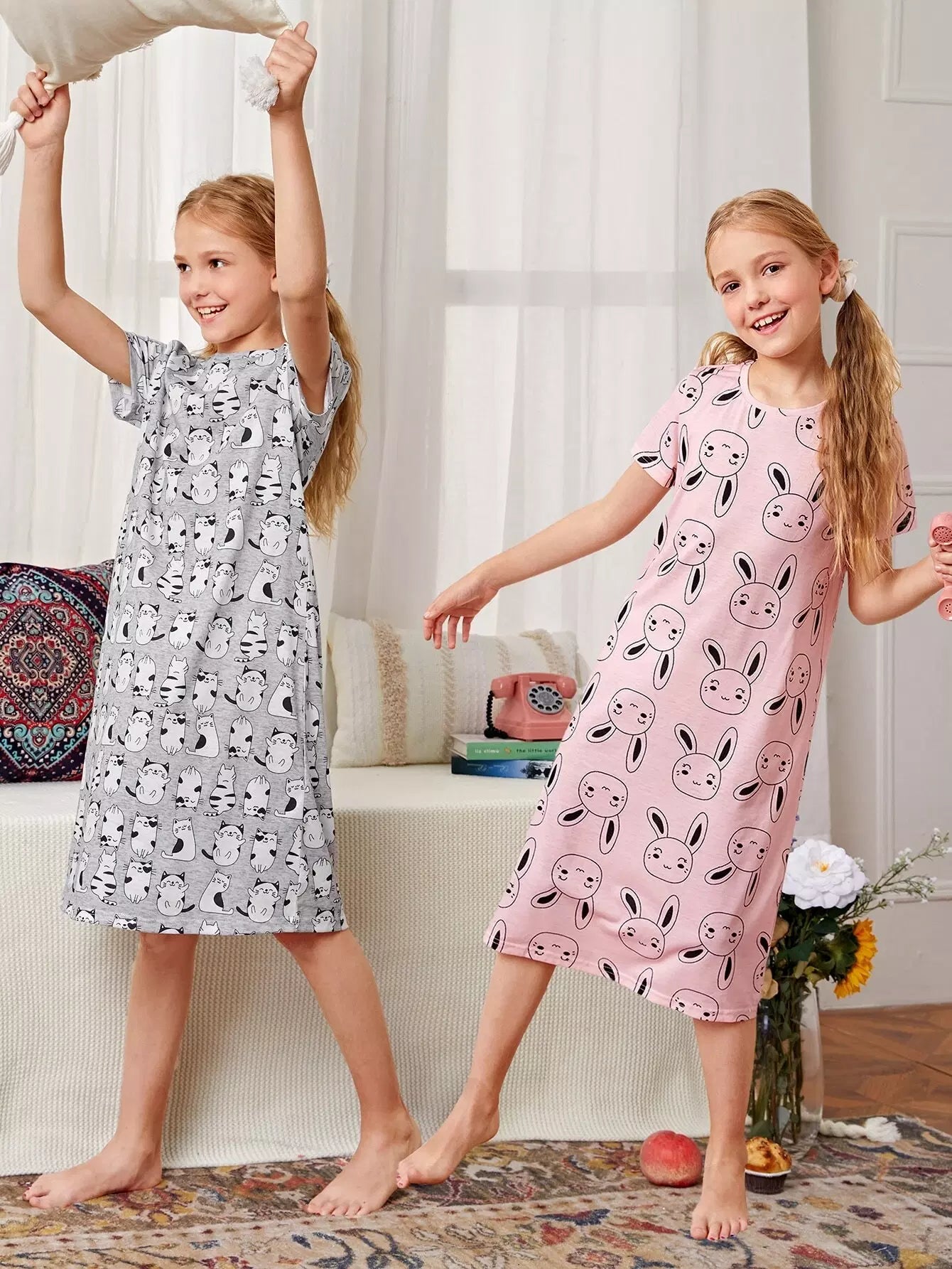 طقم مكون من قطعتين من قميص النوم المطبوع عليه رسوم كرتونية للفتيات
