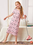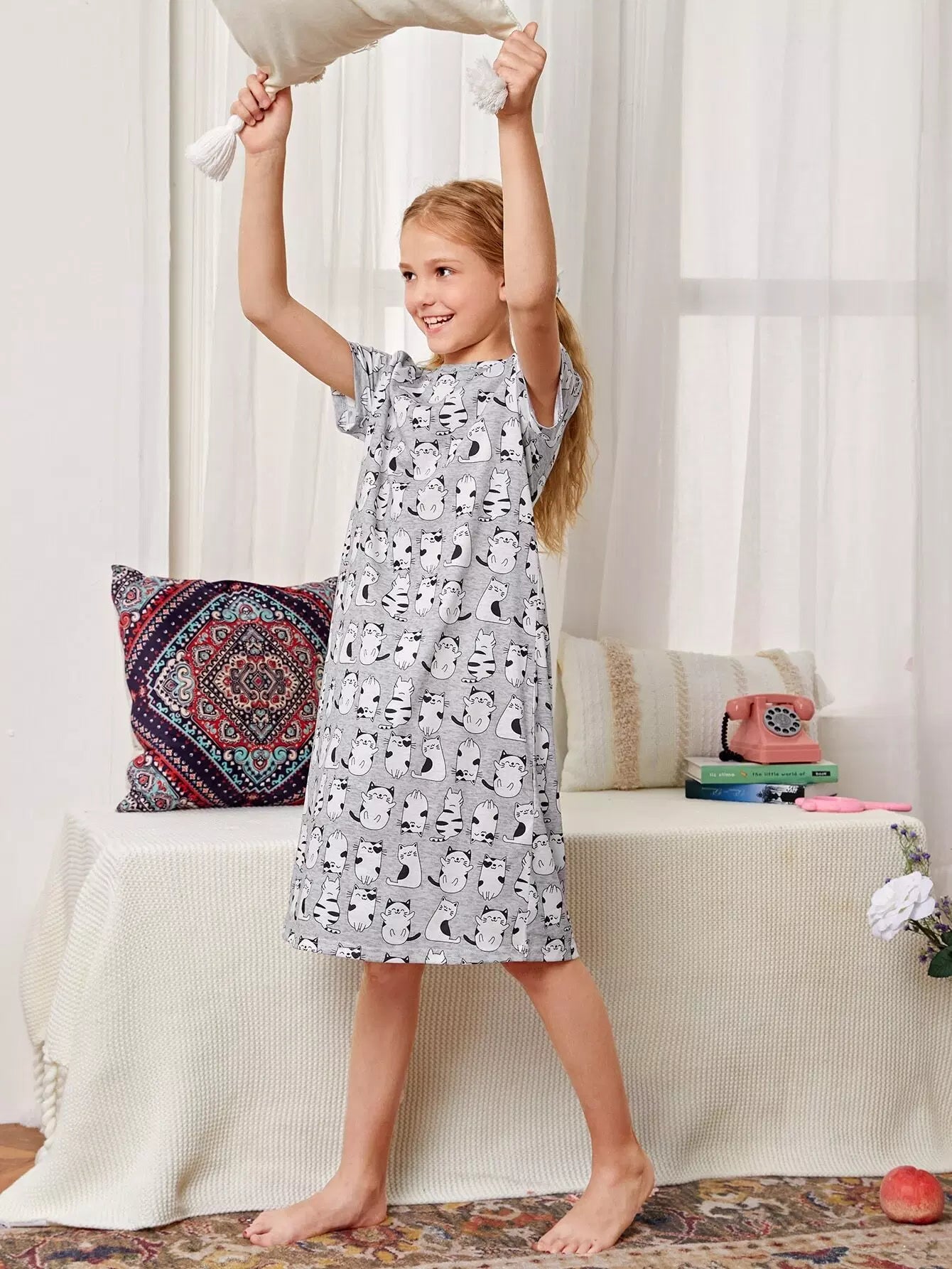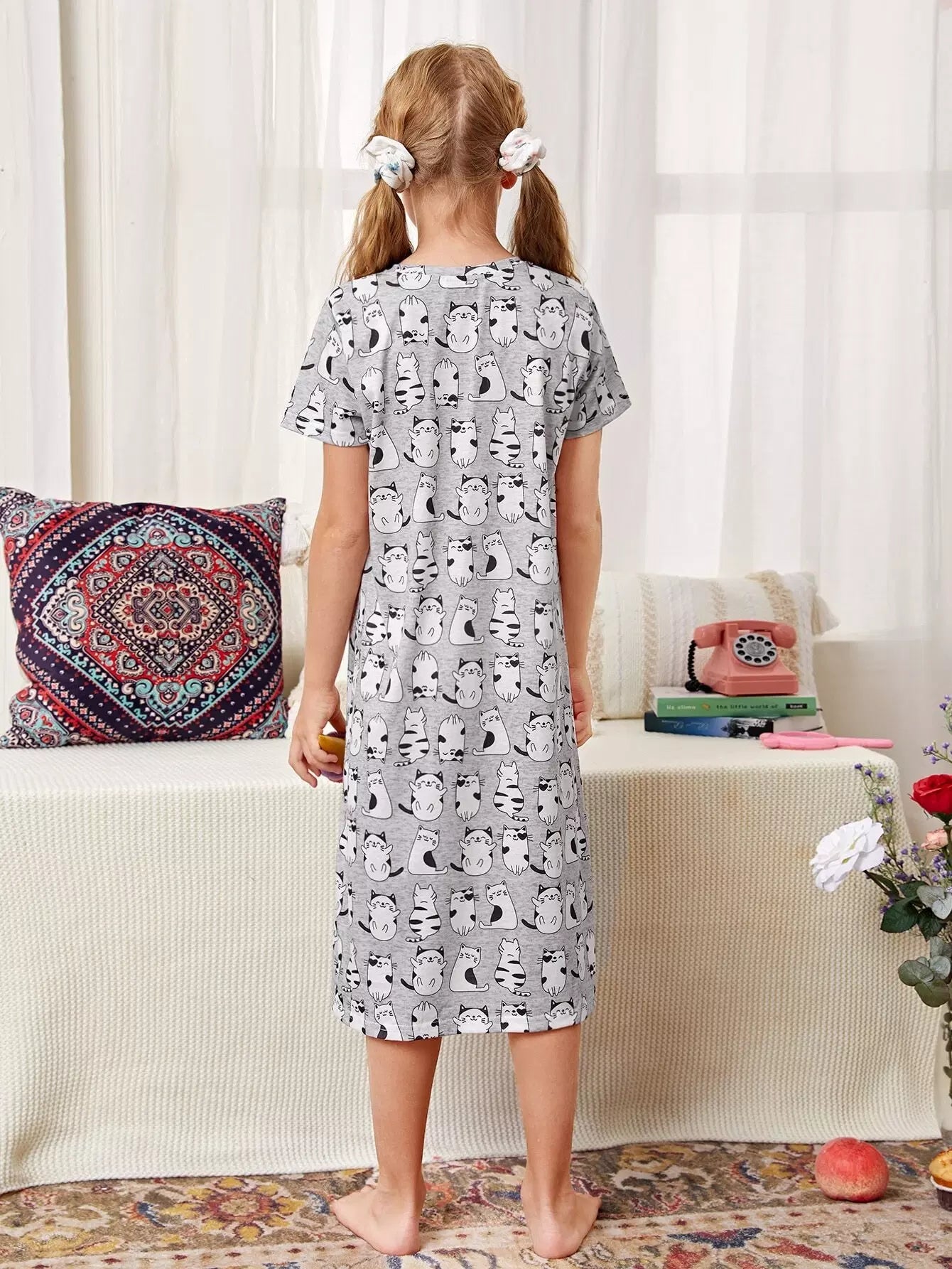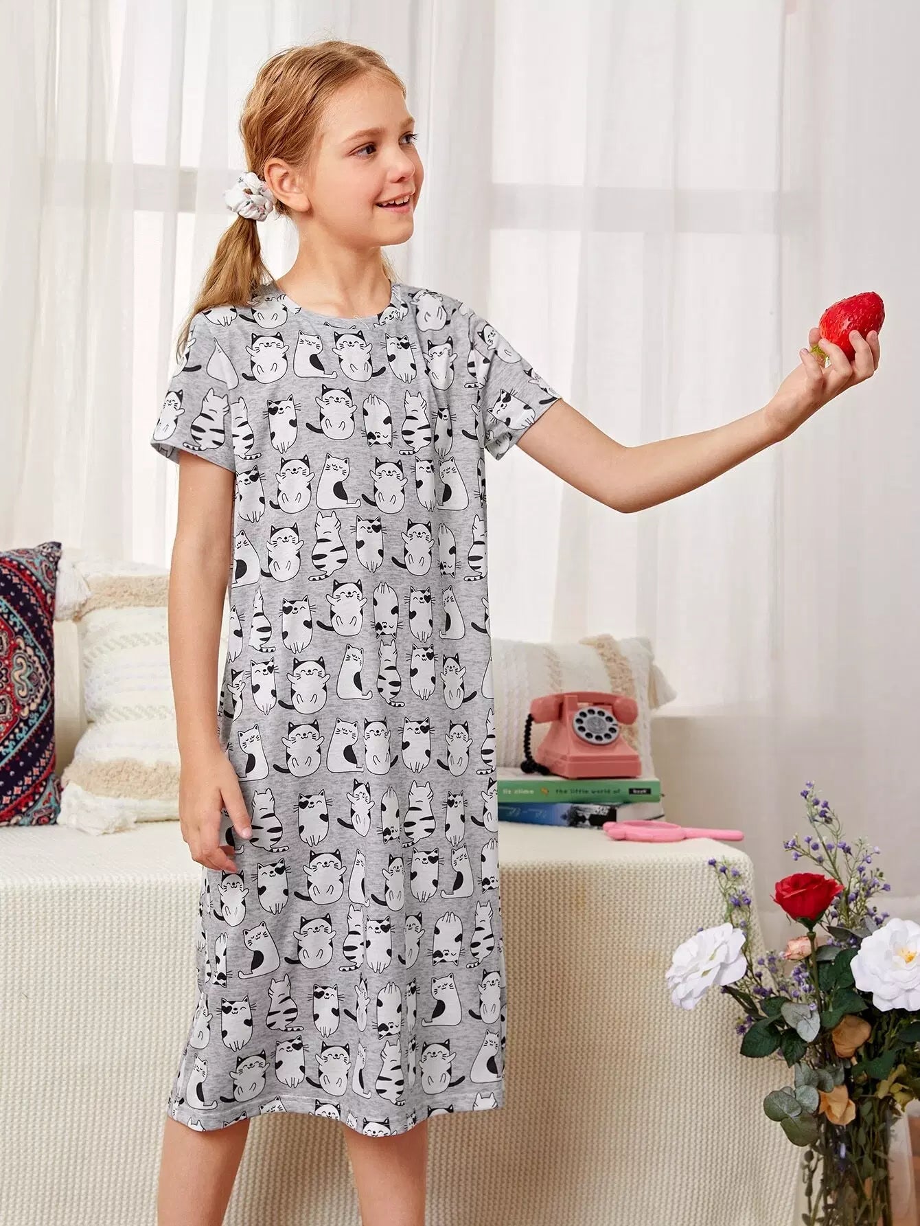 طقم مكون من قطعتين من قميص النوم المطبوع عليه رسوم كرتونية للفتيات