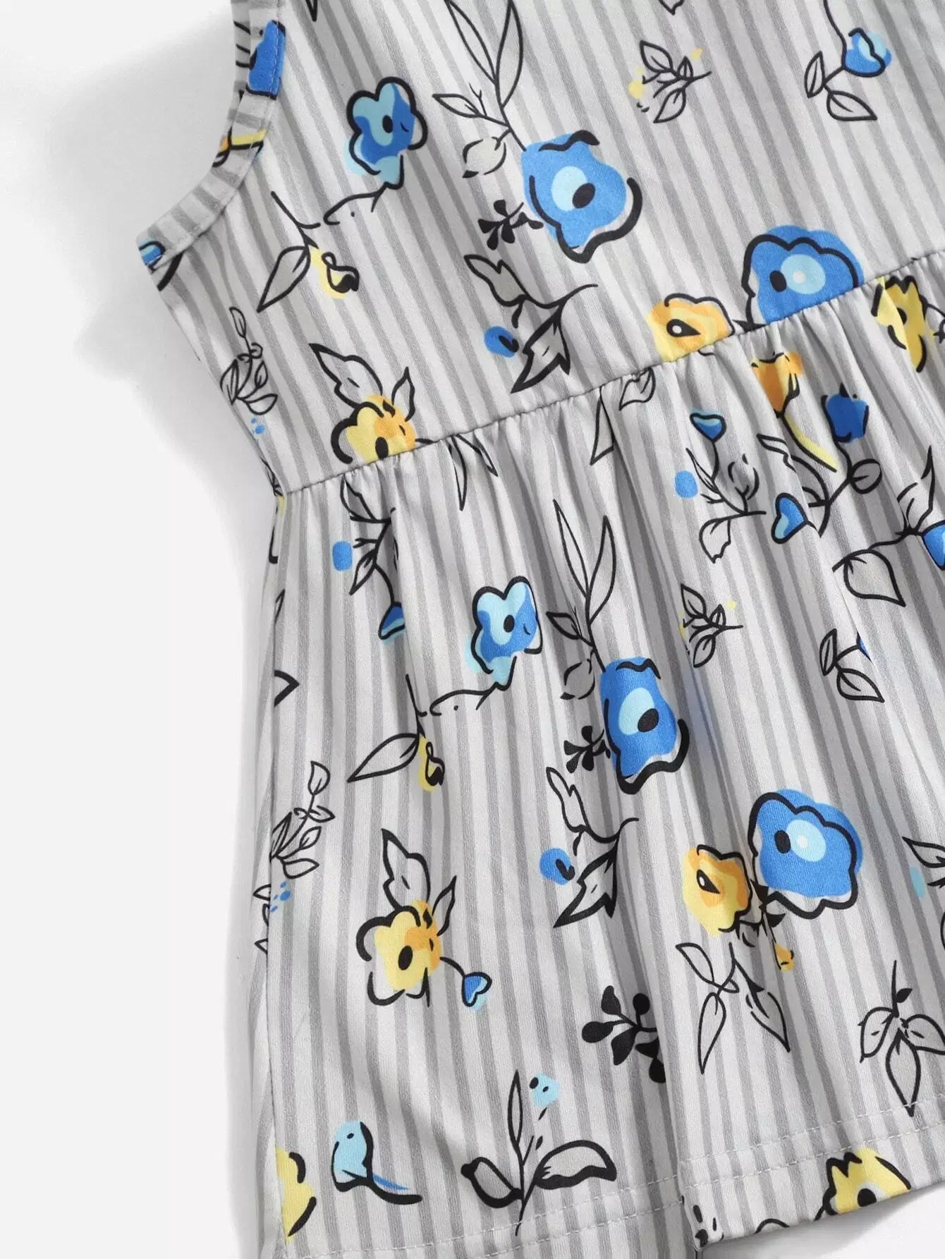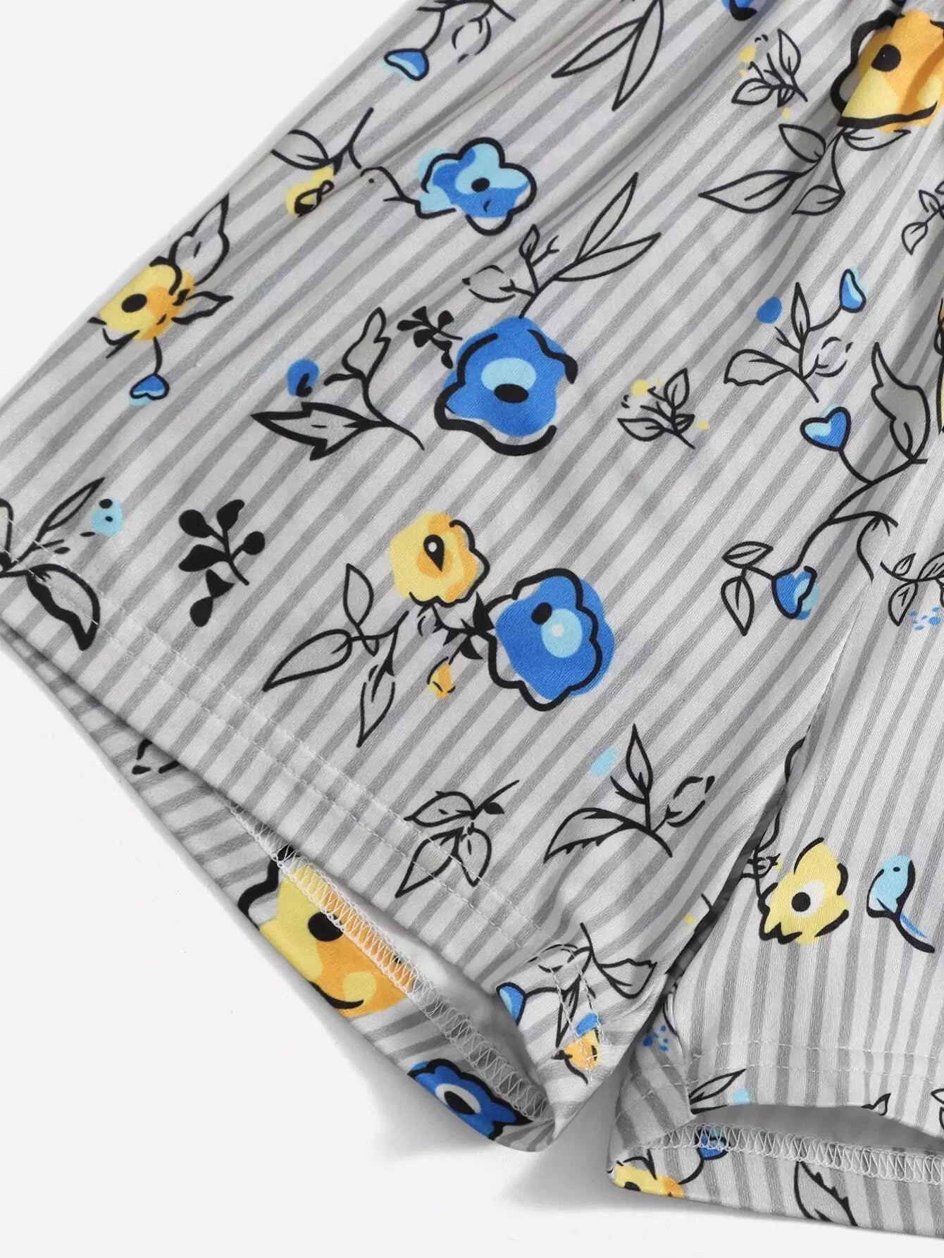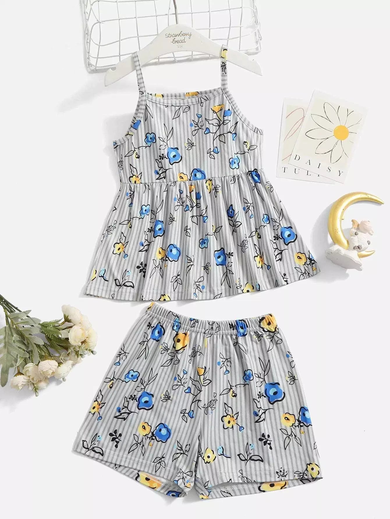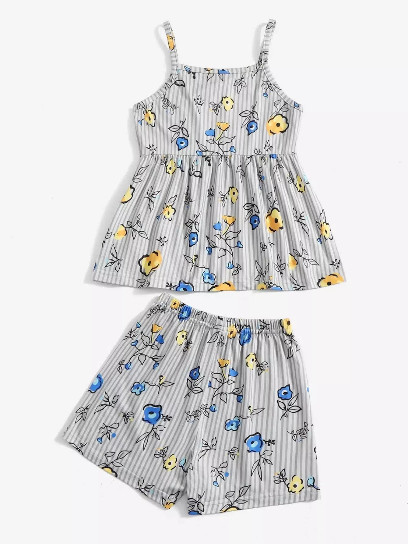 طقم استراحة بناتي بطبعة أزهار ومخطط بالكامل