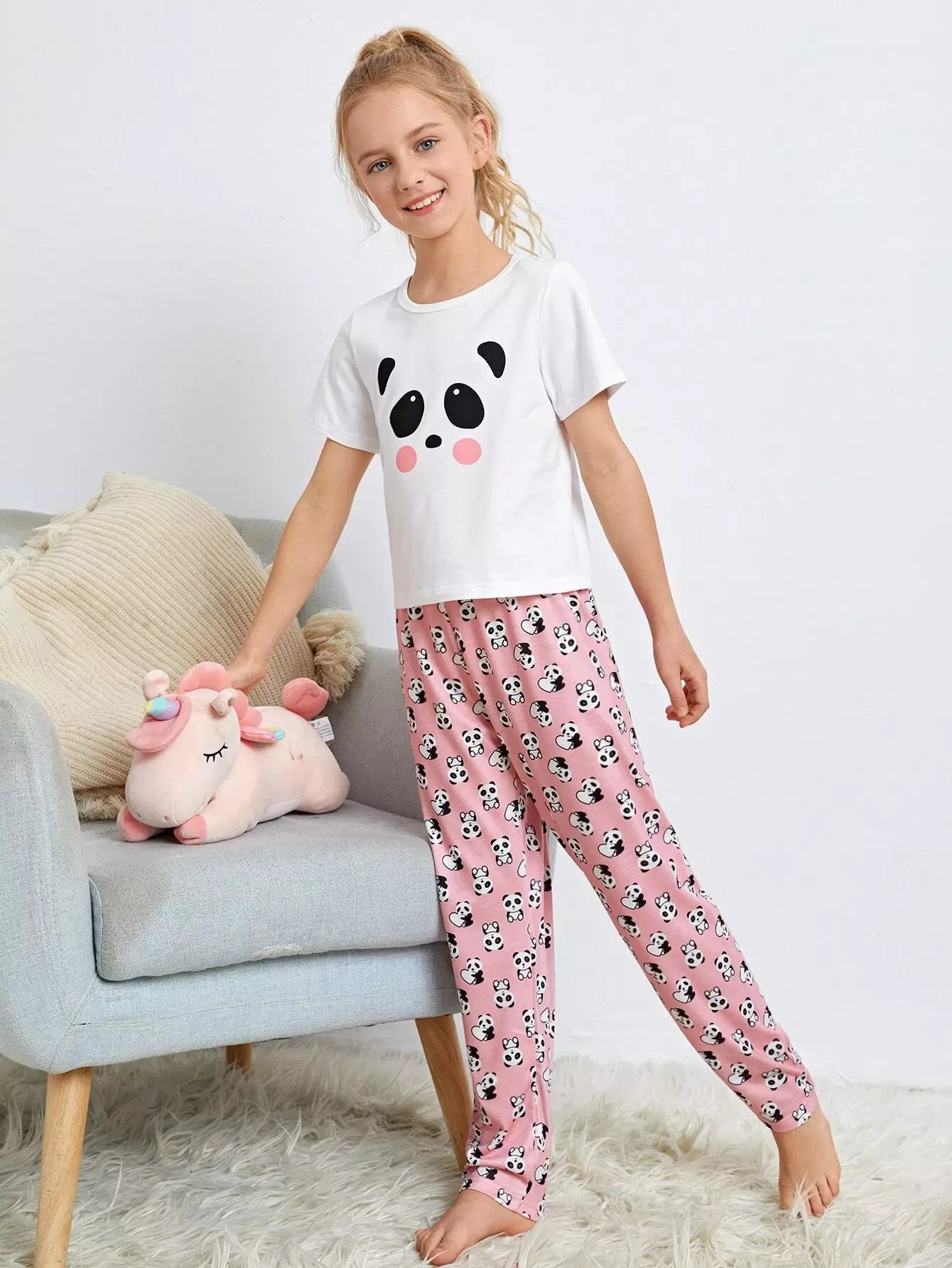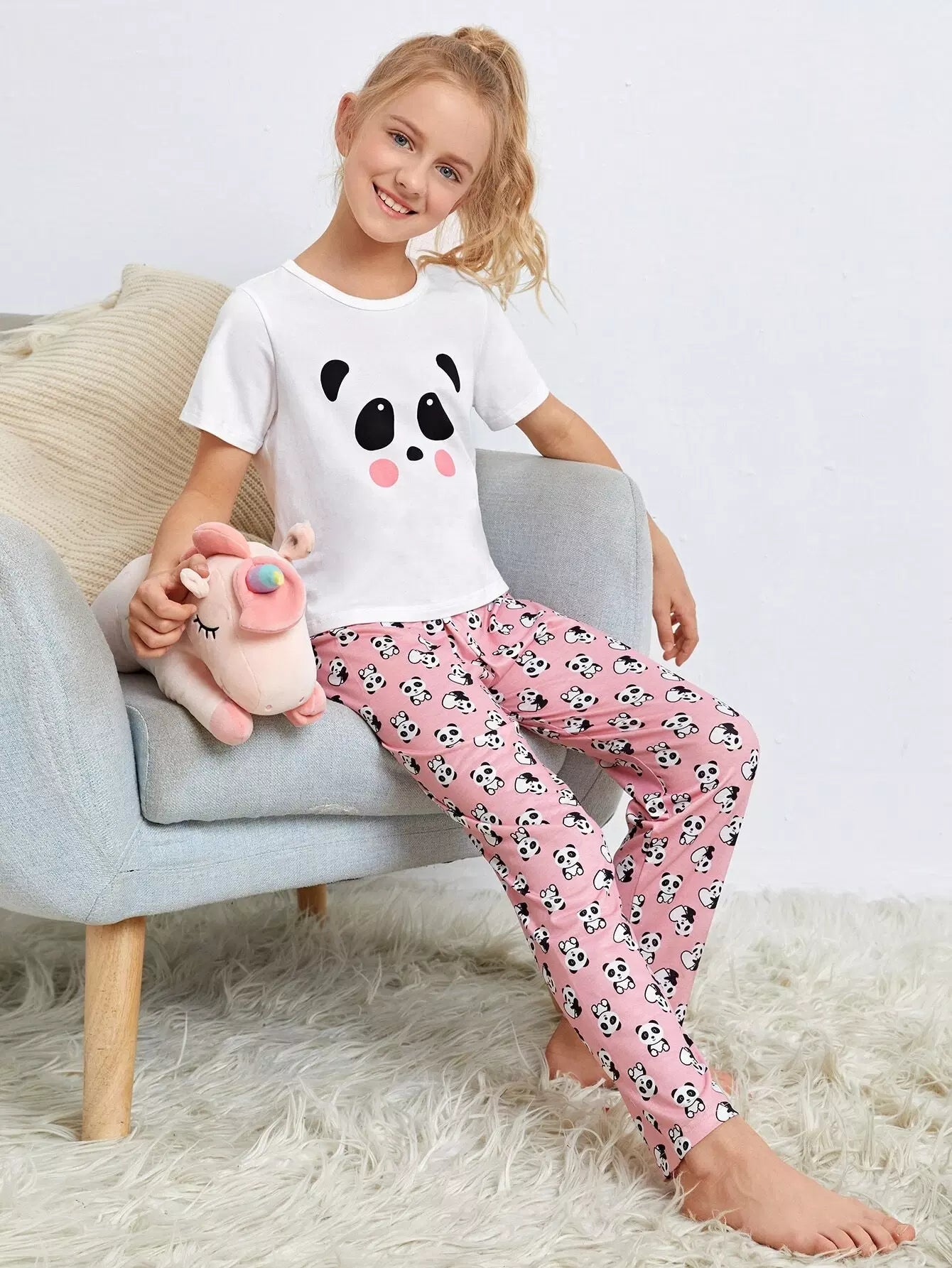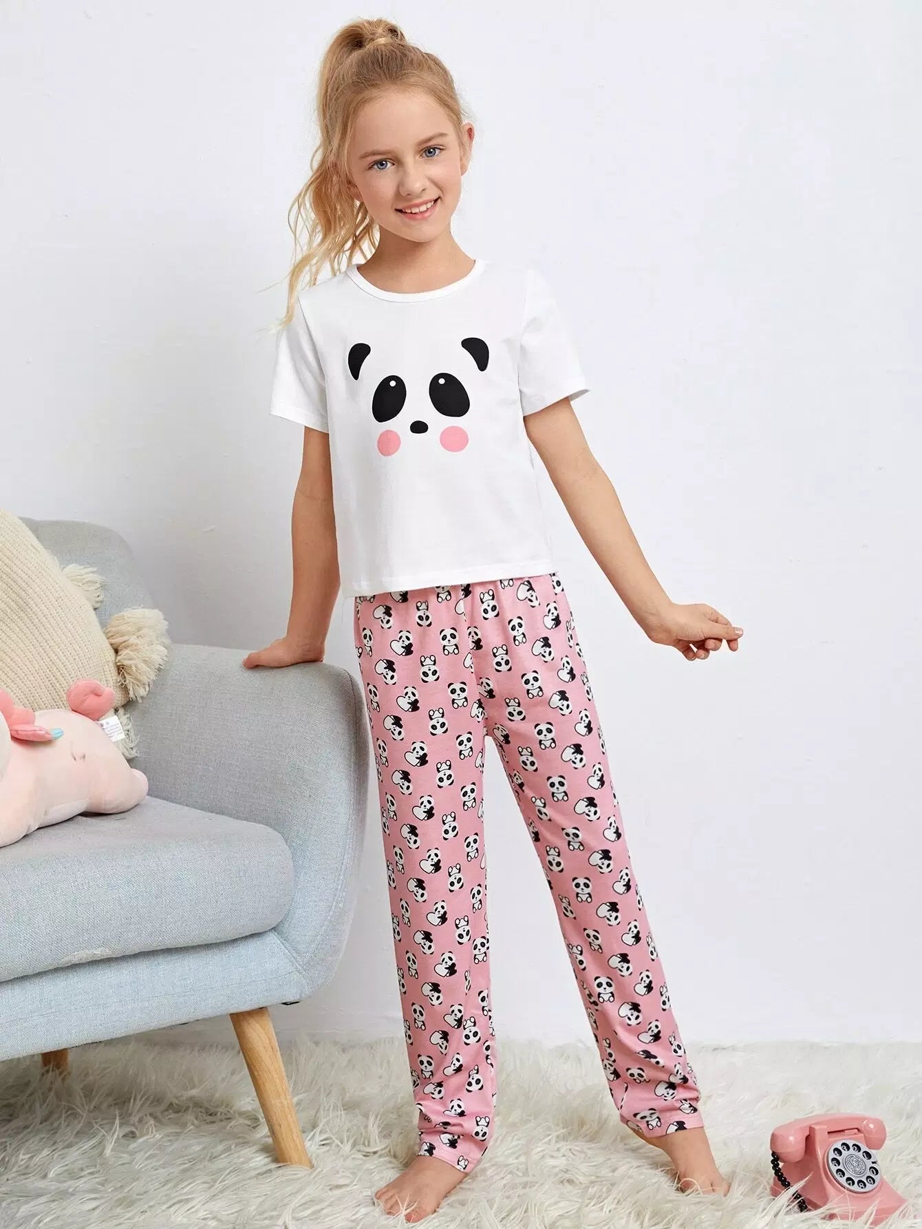 الأطفال - طقم بيجامة برسوم كارتونية للبنات