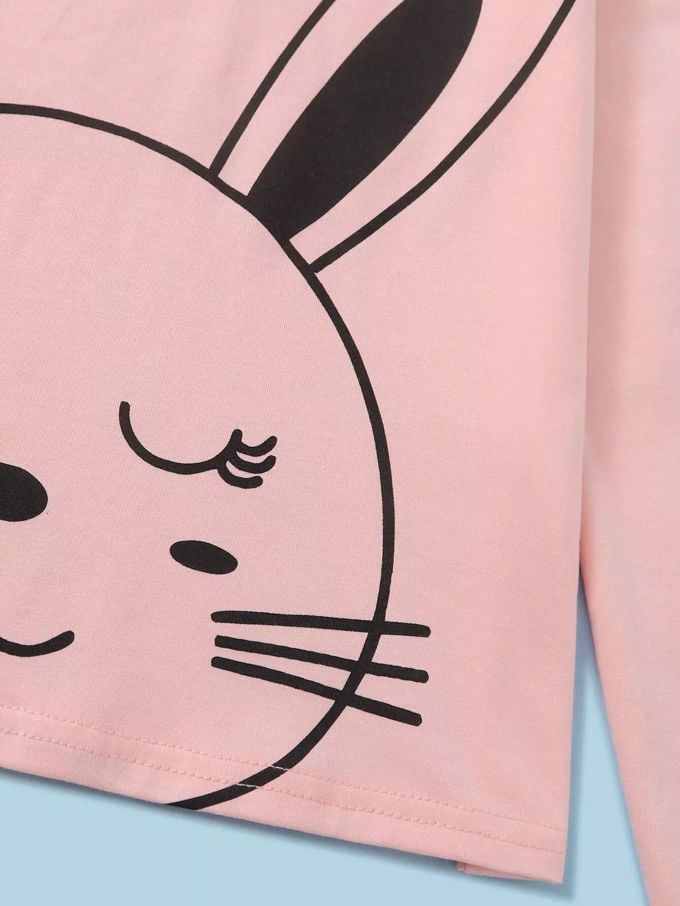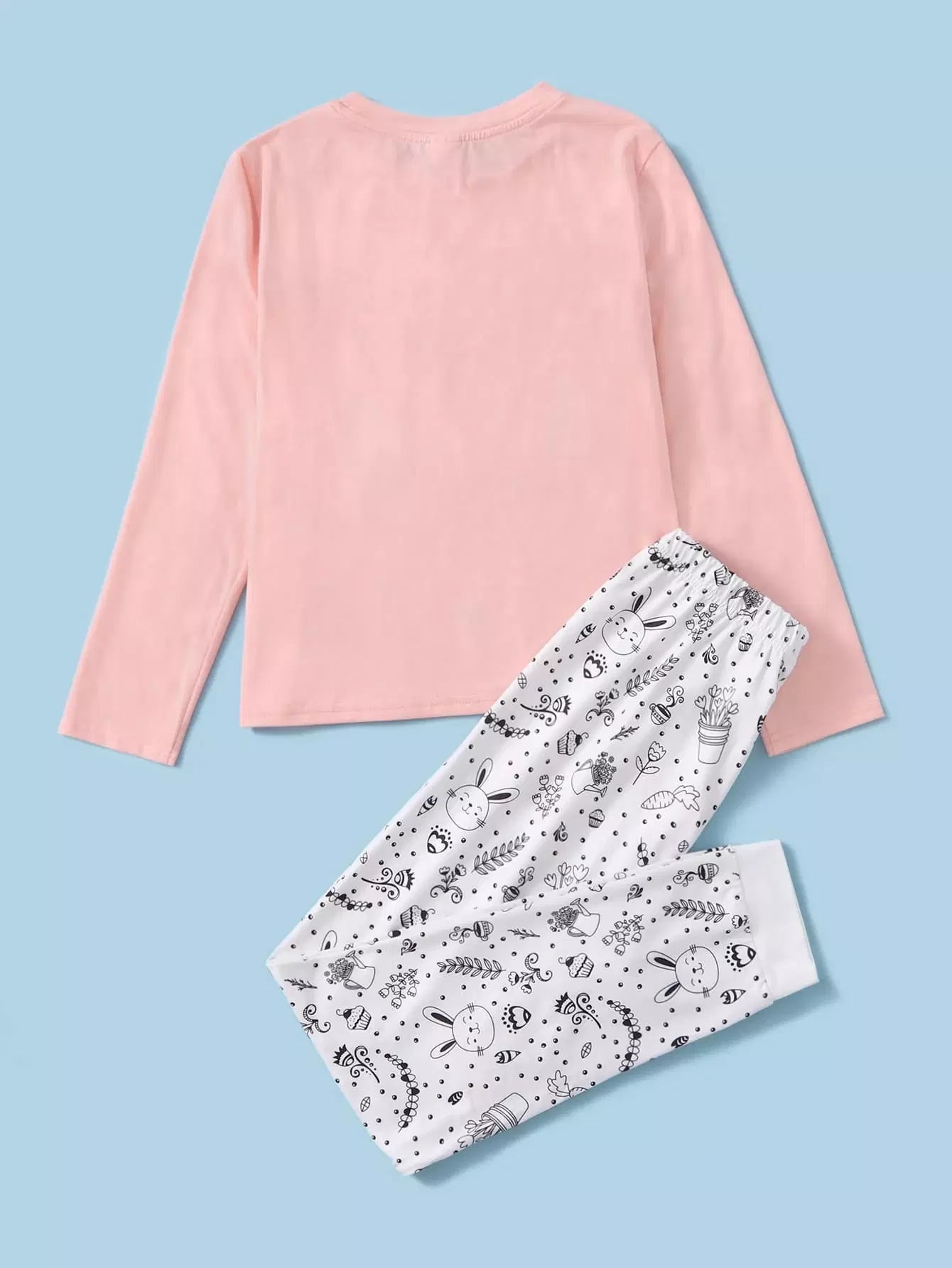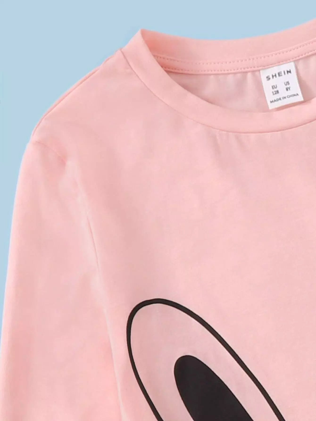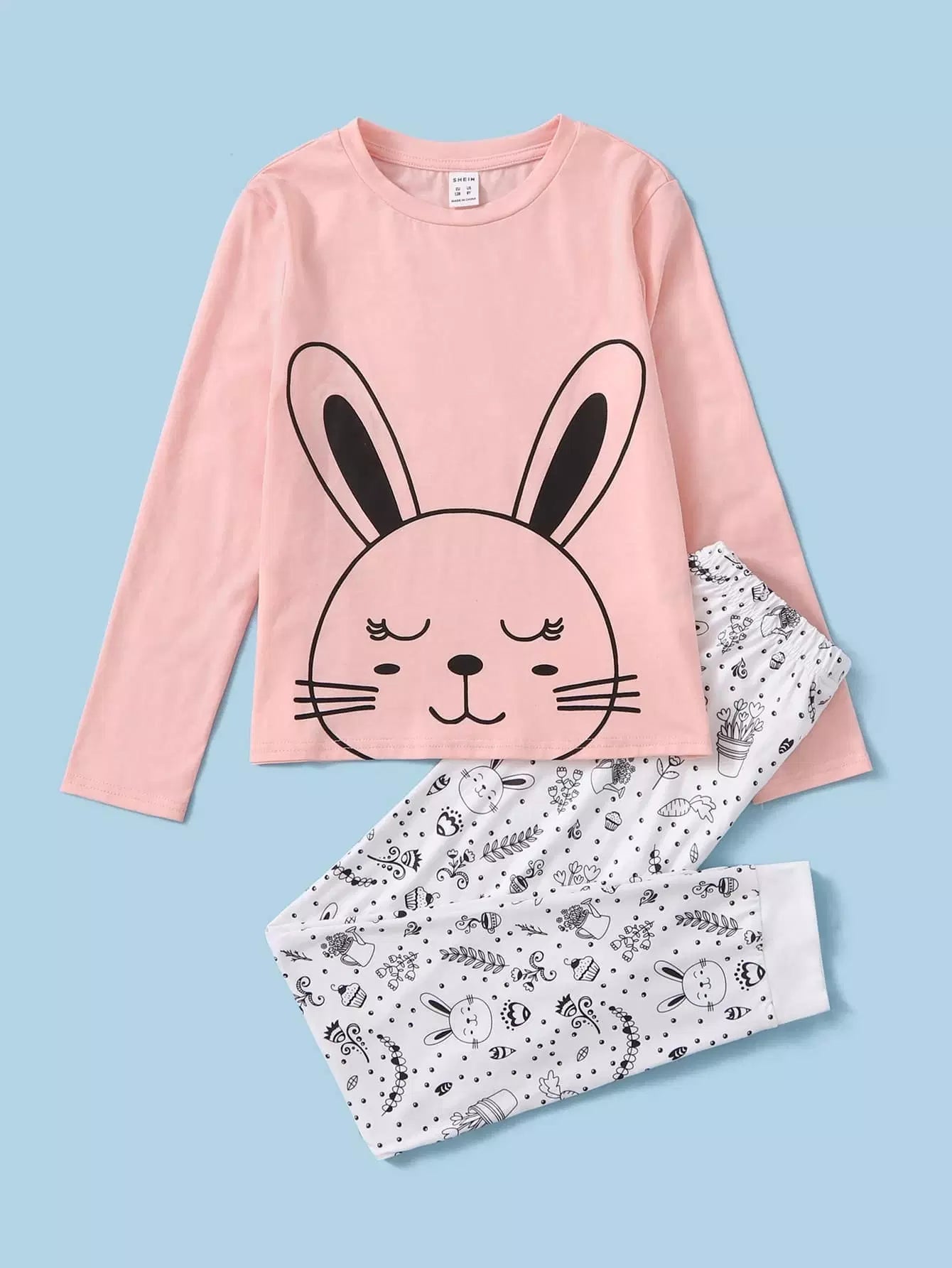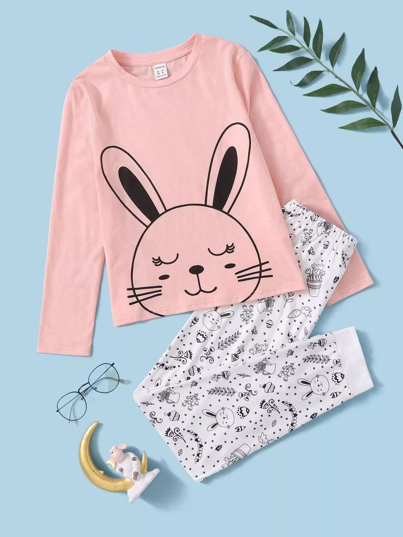 طقم ملابس نوم للبنات مكون من تي شيرت وبنطلون رياضي برسومات كرتونية