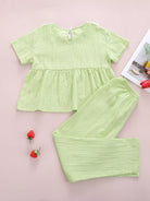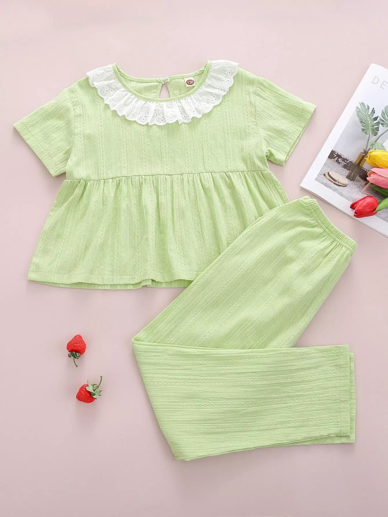 طقم بيجامة بناتي بلوزة بلون مغاير مع بنطال بيجاما