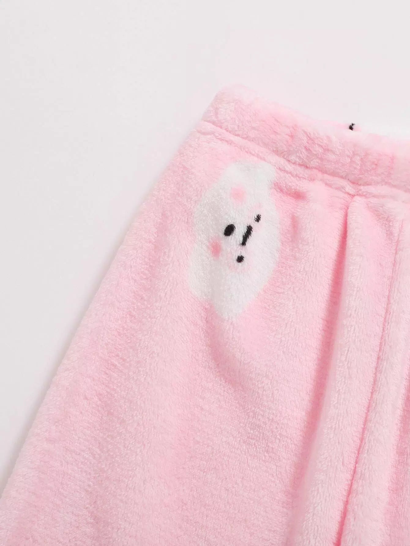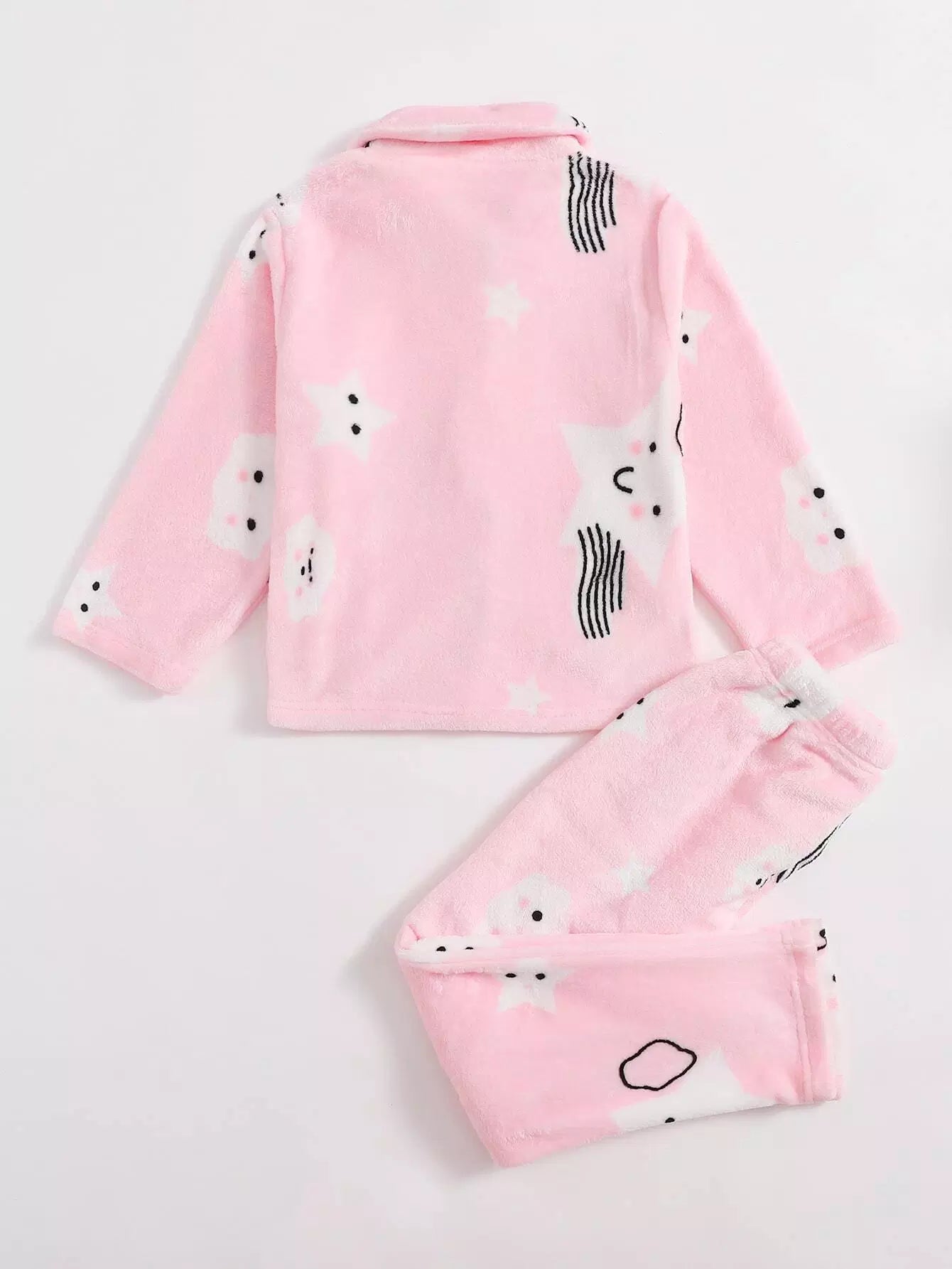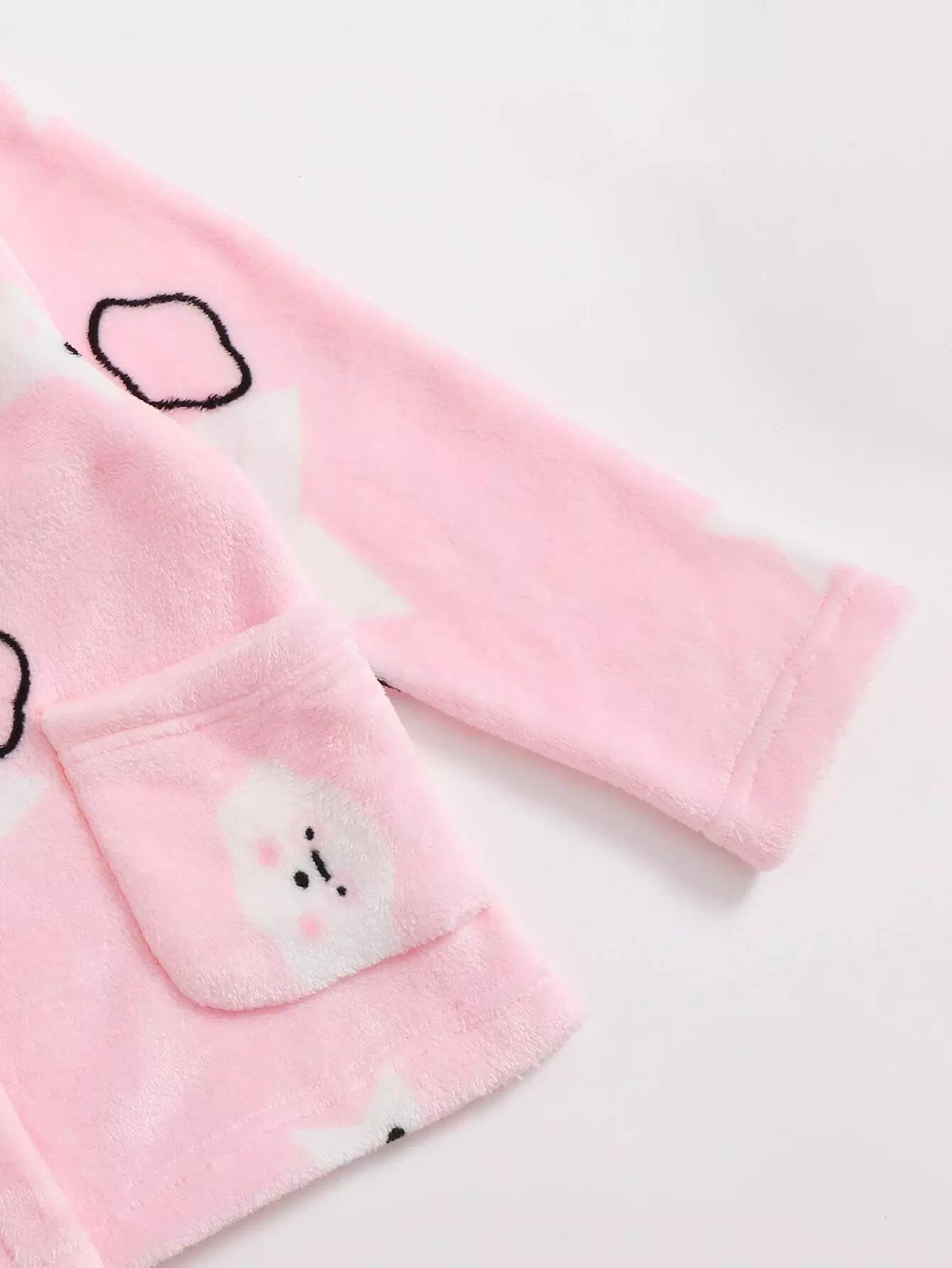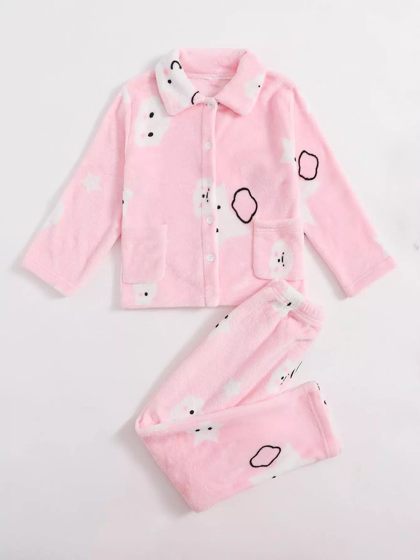 الأطفال - طقم بيجاما بناتي من الفلانيل مطبوع عليه رسوم كارتونية بأزرار أمامية