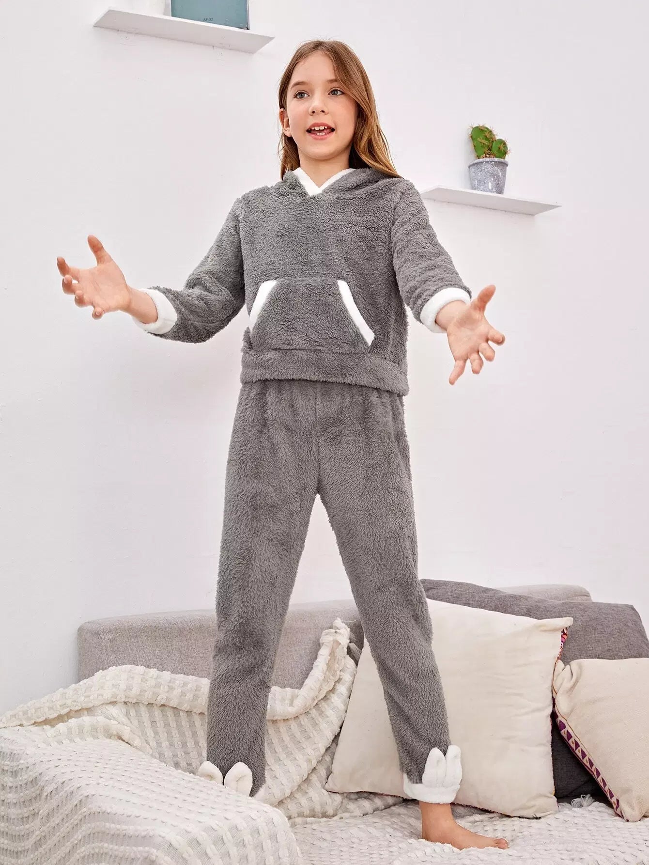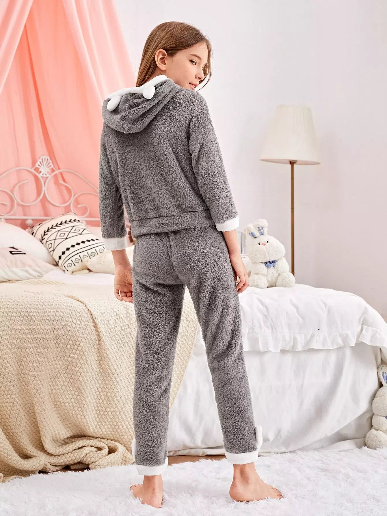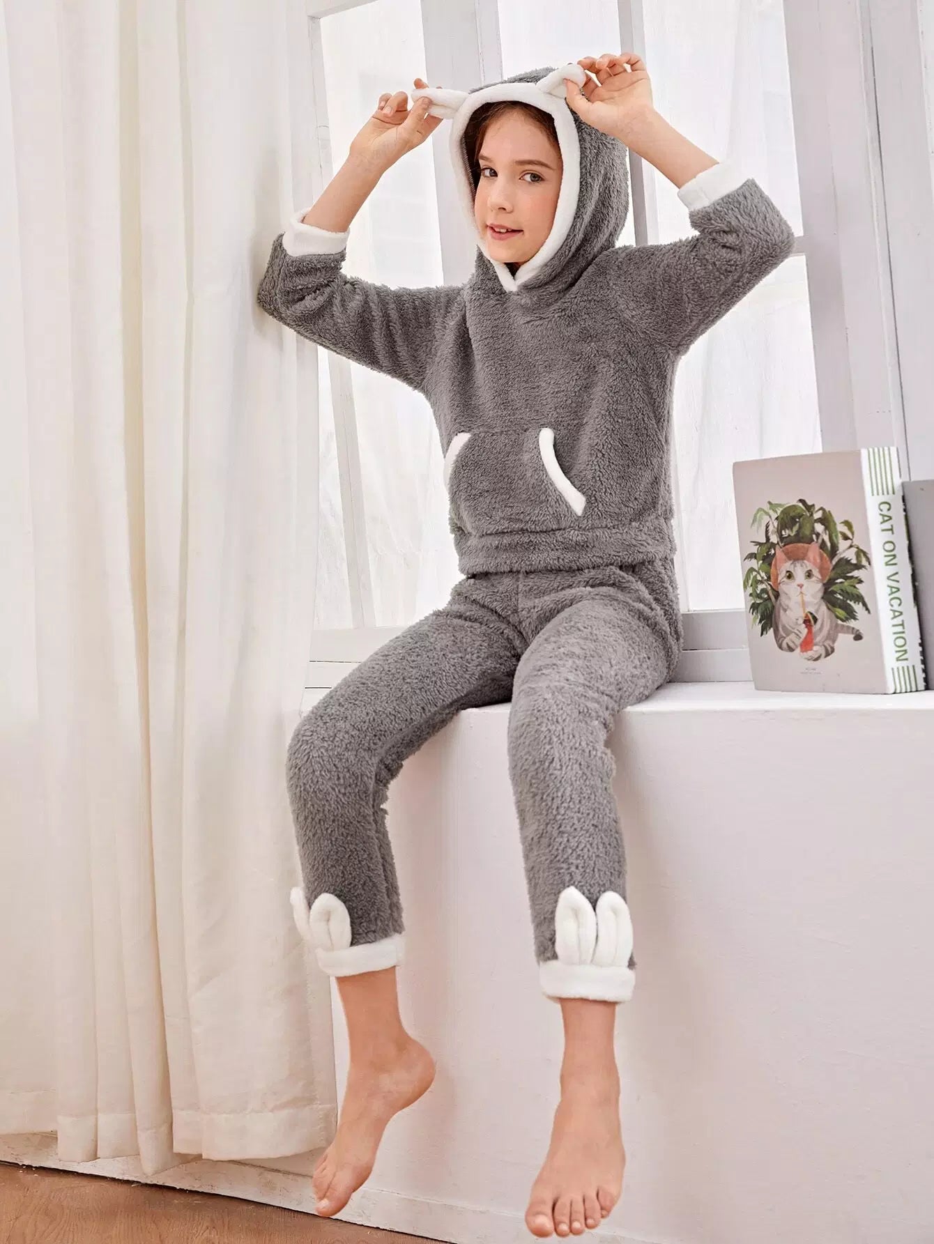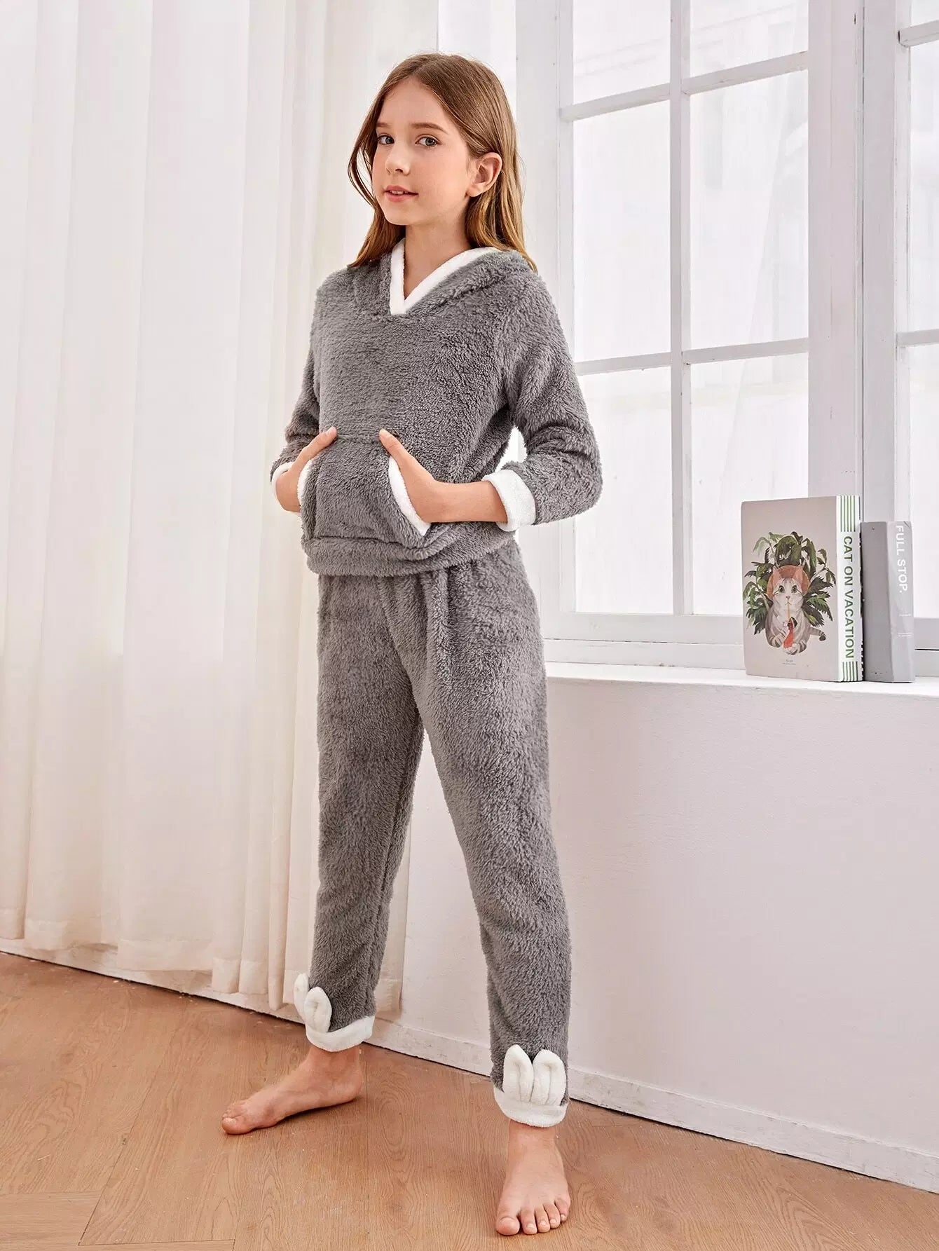 طقم بنطلون بقبعة بغطاء رأس وبنطال بغطاء رأس بغطاء رأس من الفانيلا للبنات