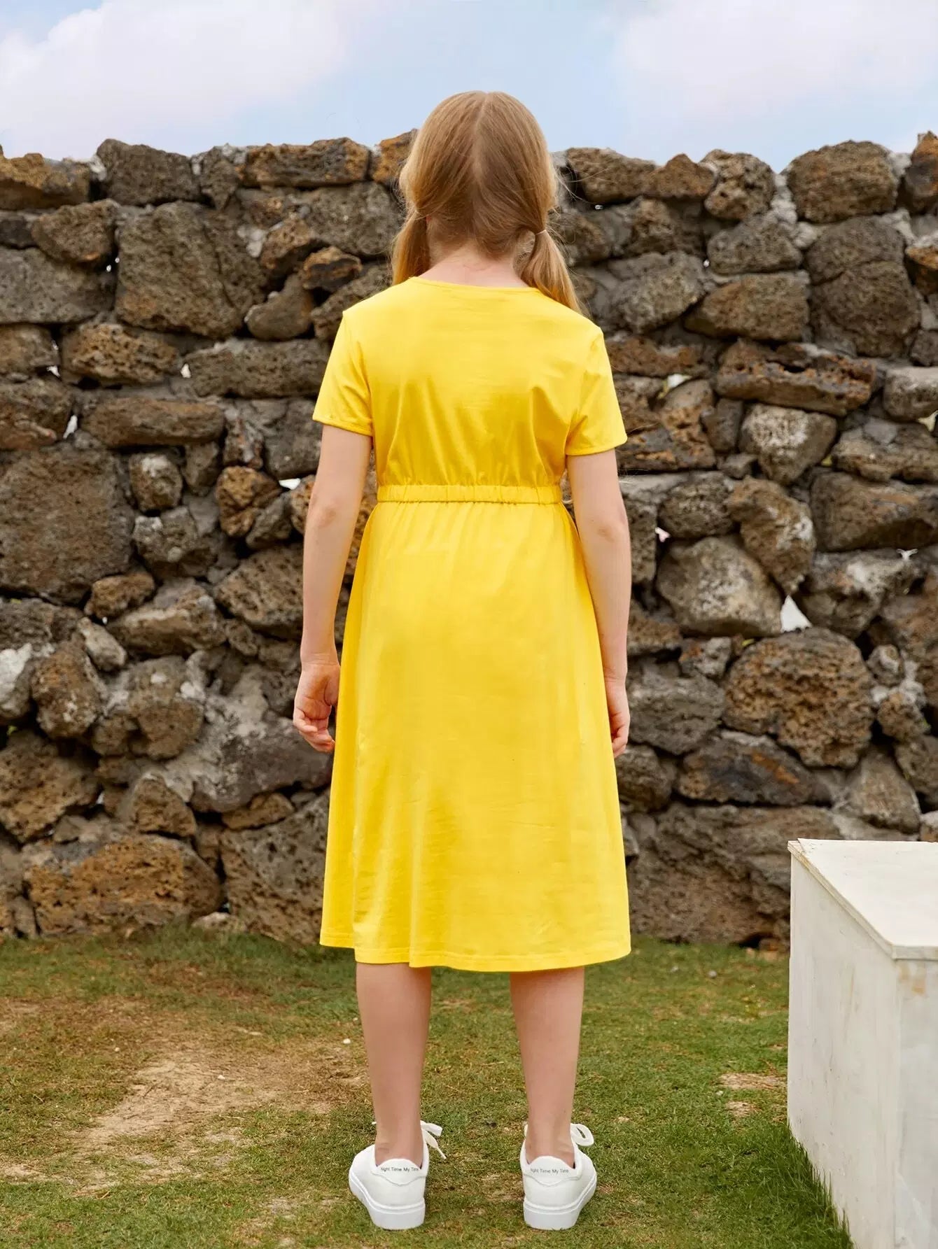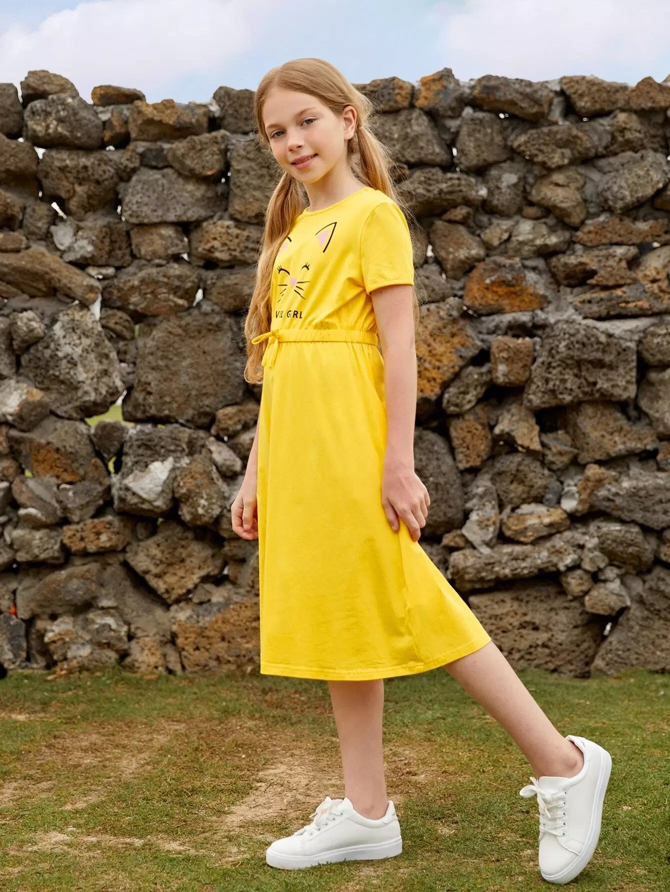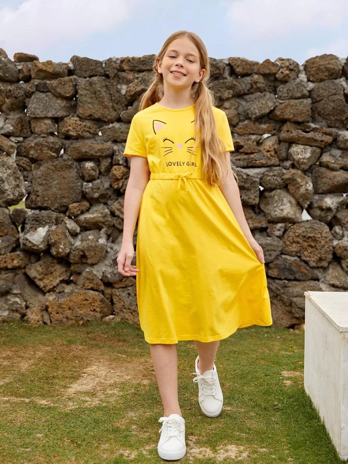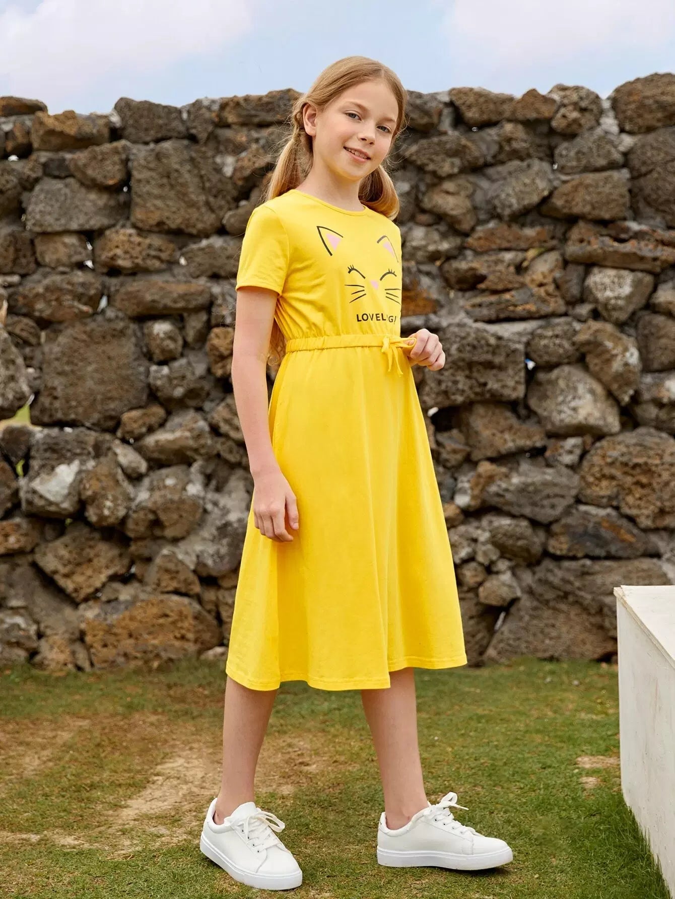 فستان نوم بناتي مزين بعقدة على الخصر كارتون جرافيك